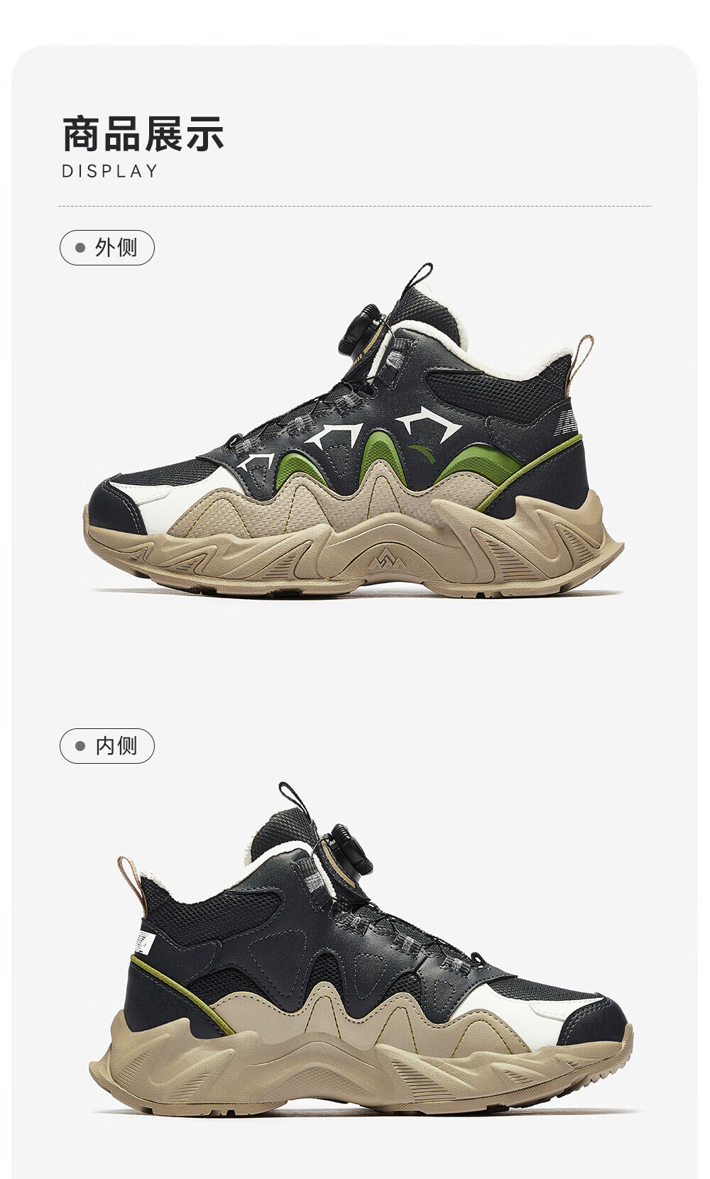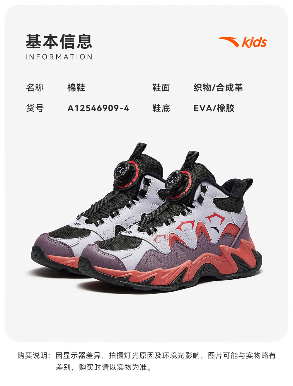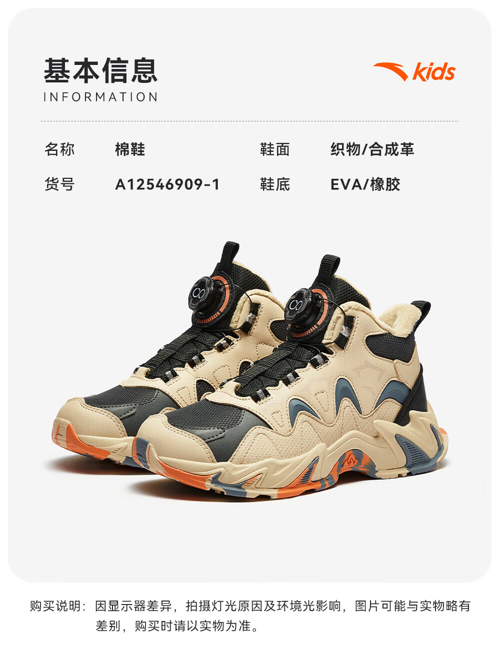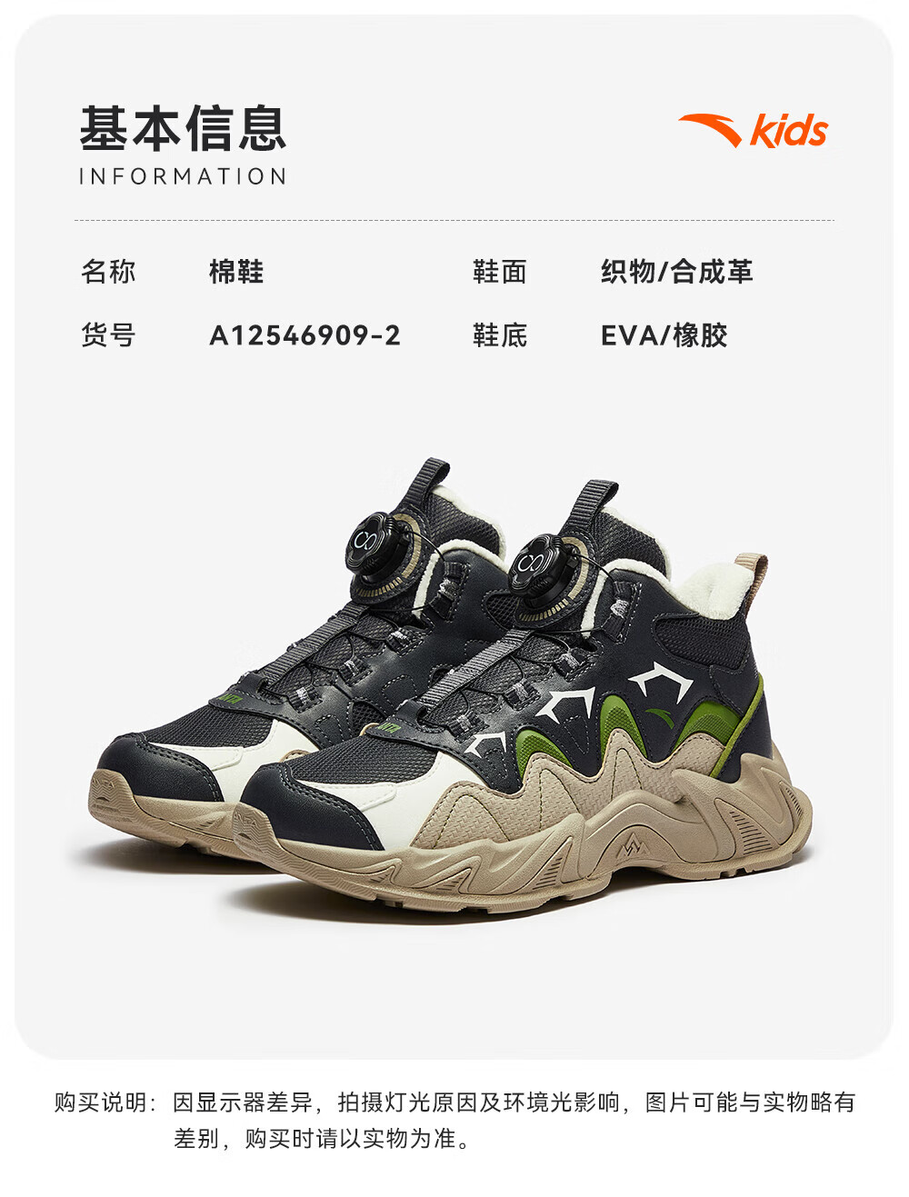 ANTA Children's Cotton Shoes for Men and Women 2025 Autumn and Winter New Fashion Knob Buckle Wear-Resistant Anti-Slip Outdoor Snow Boots Store Manager Recommends Black-3 33 Shoe Inner Length 20.5cm