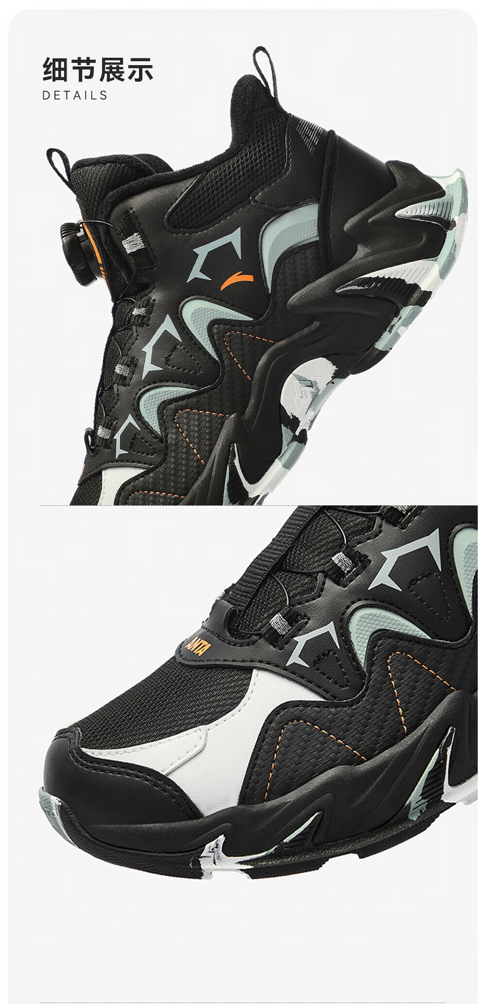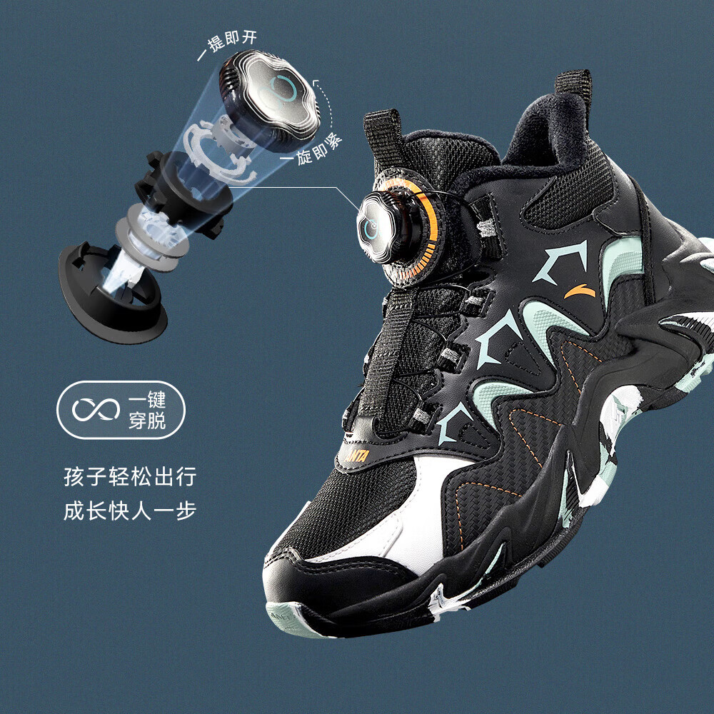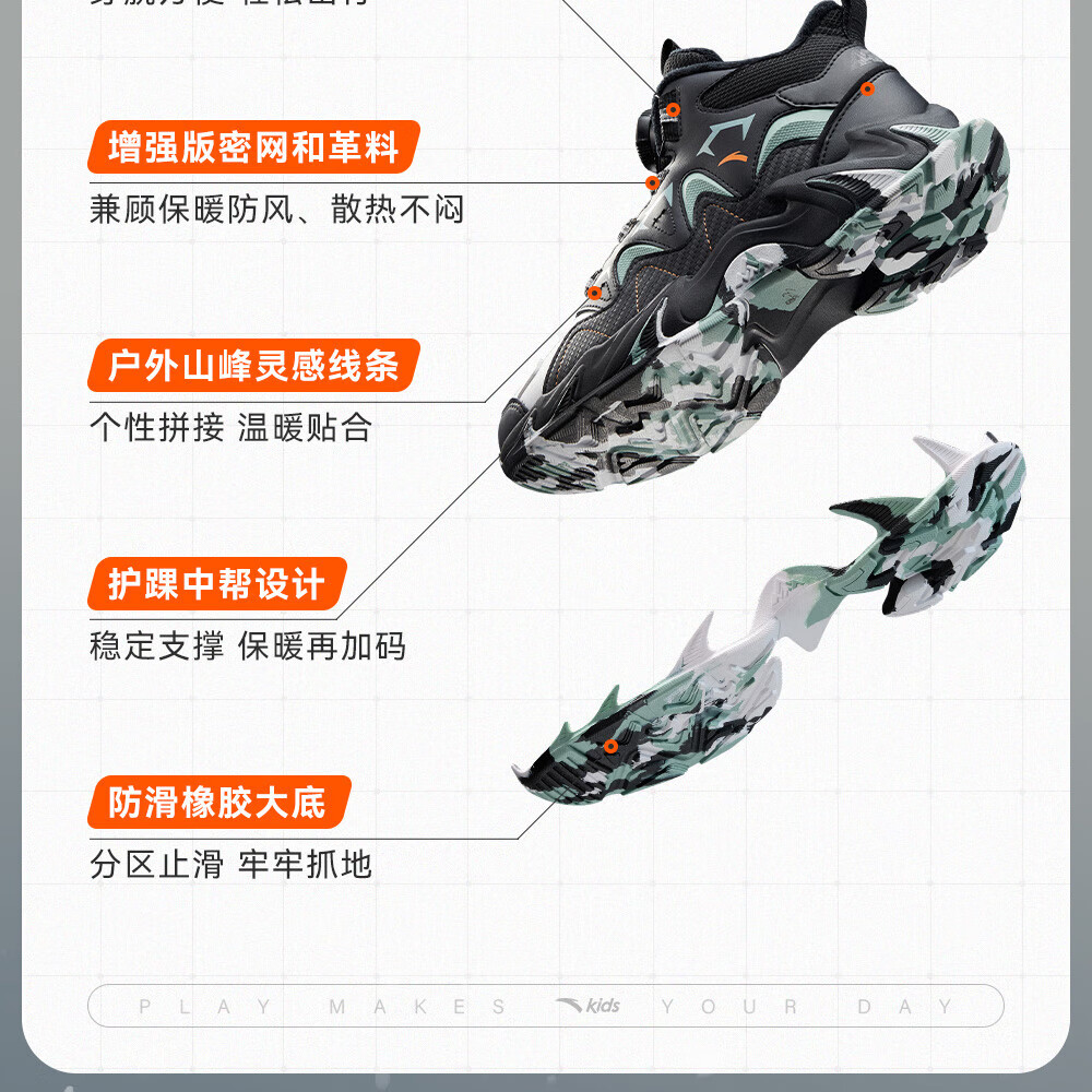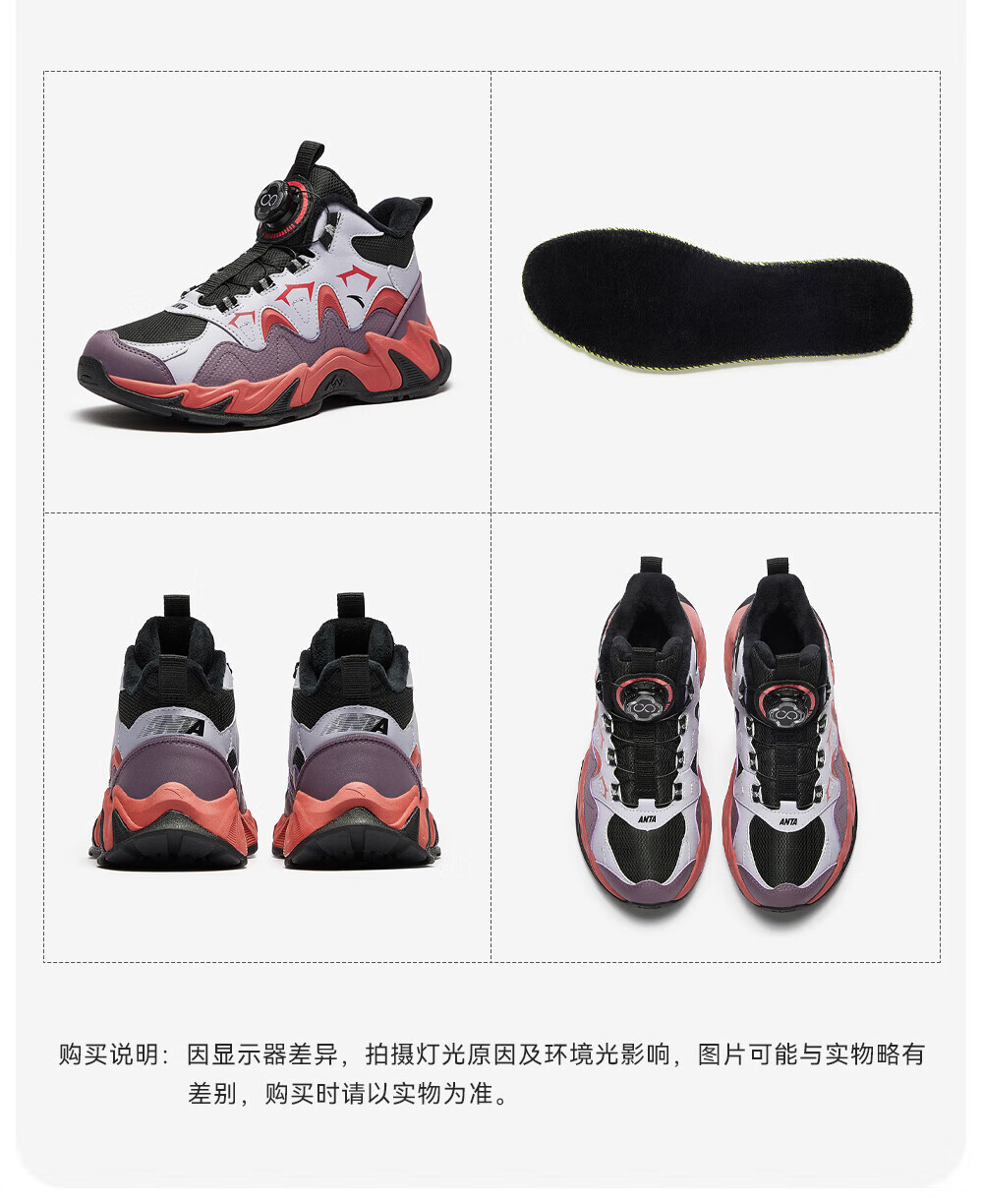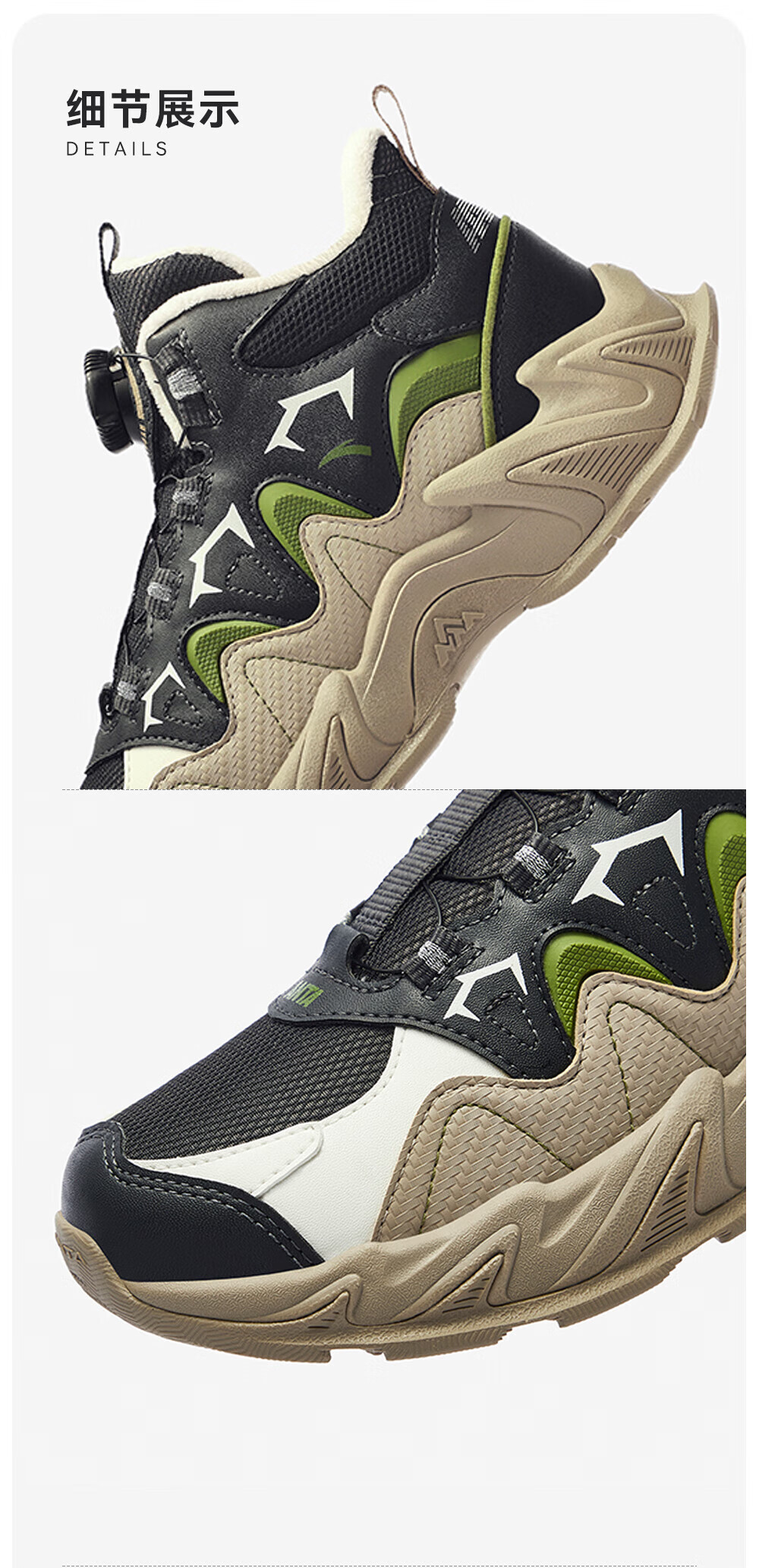 ANTA Children's Cotton Shoes for Men and Women 2025 Autumn and Winter New Fashion Knob Buckle Wear-Resistant Anti-Slip Outdoor Snow Boots Store Manager Recommends Black-3 33 Shoe Inner Length 20.5cm