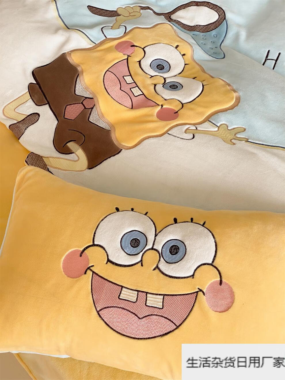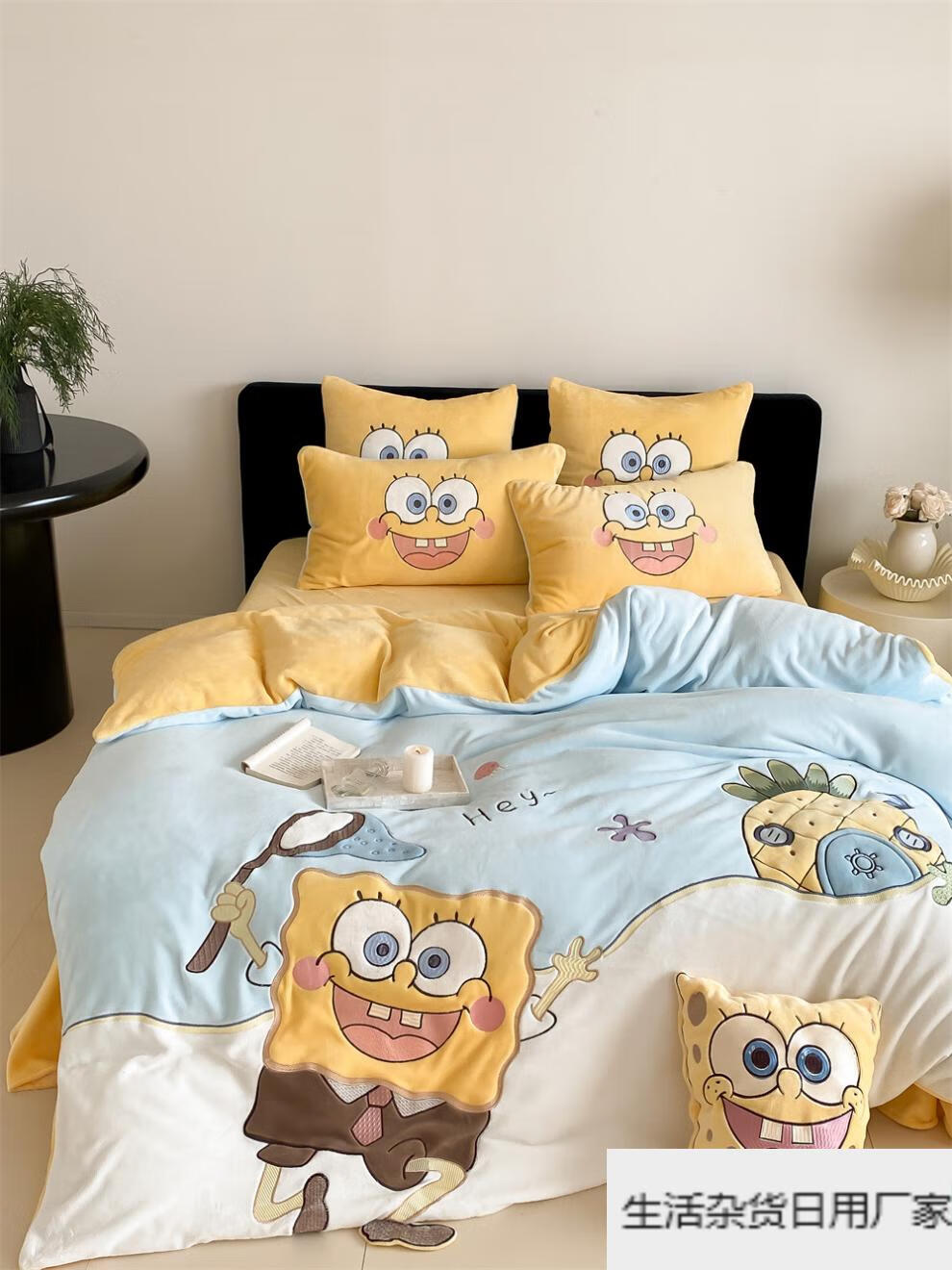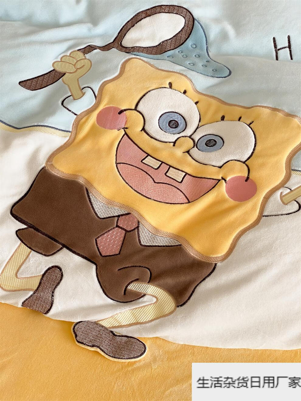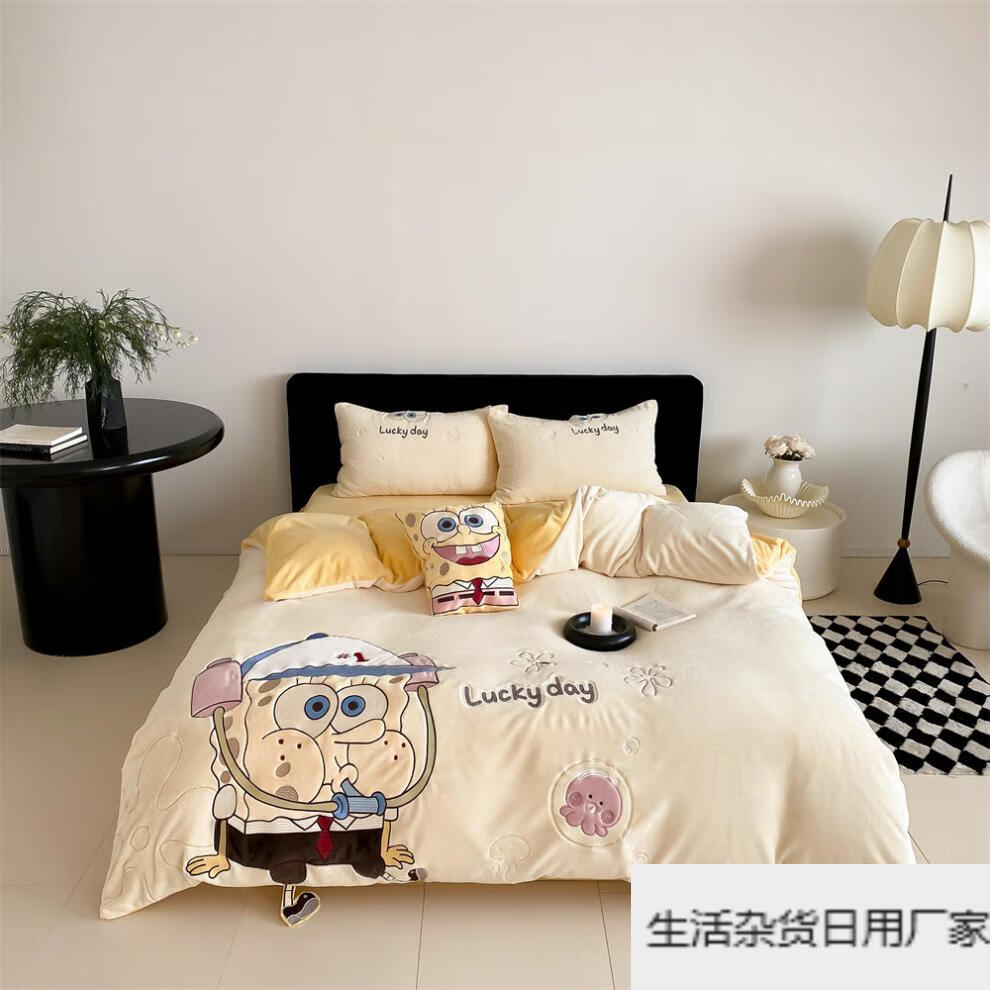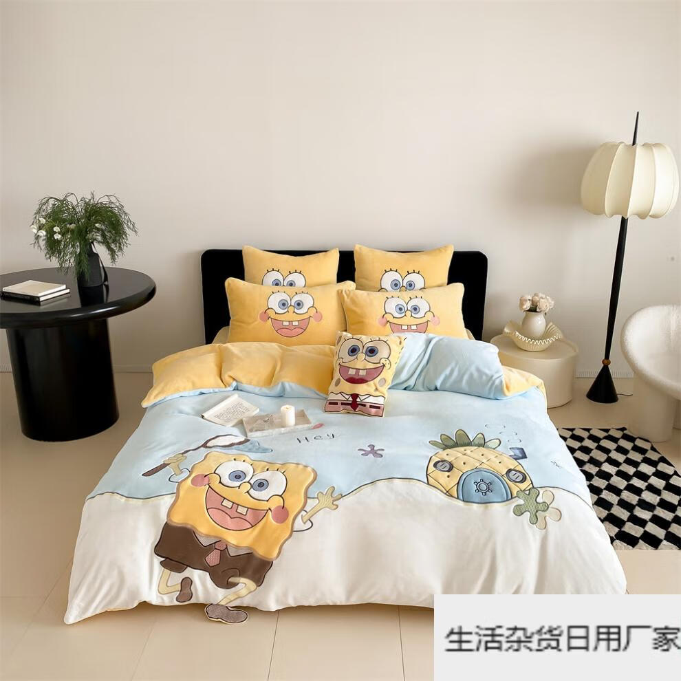 Spongebob cartoon style cute soft lamb velvet + milk velvet four-piece winter thickened warm bedding milk velvet-SpongeBob SquarePants bed sheet 1.5m (quilt cover 200*230cm)