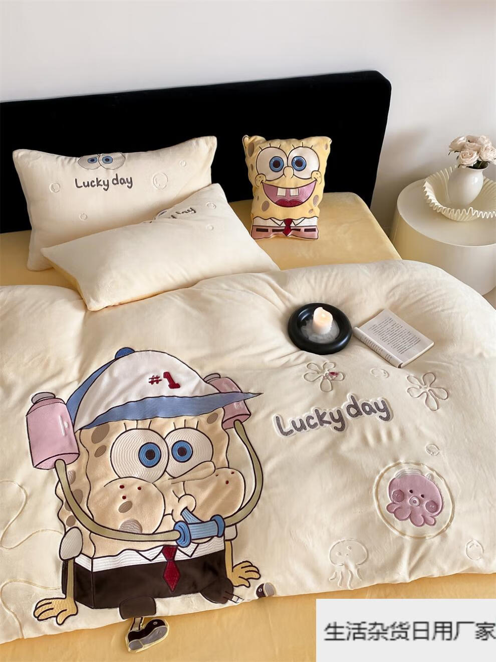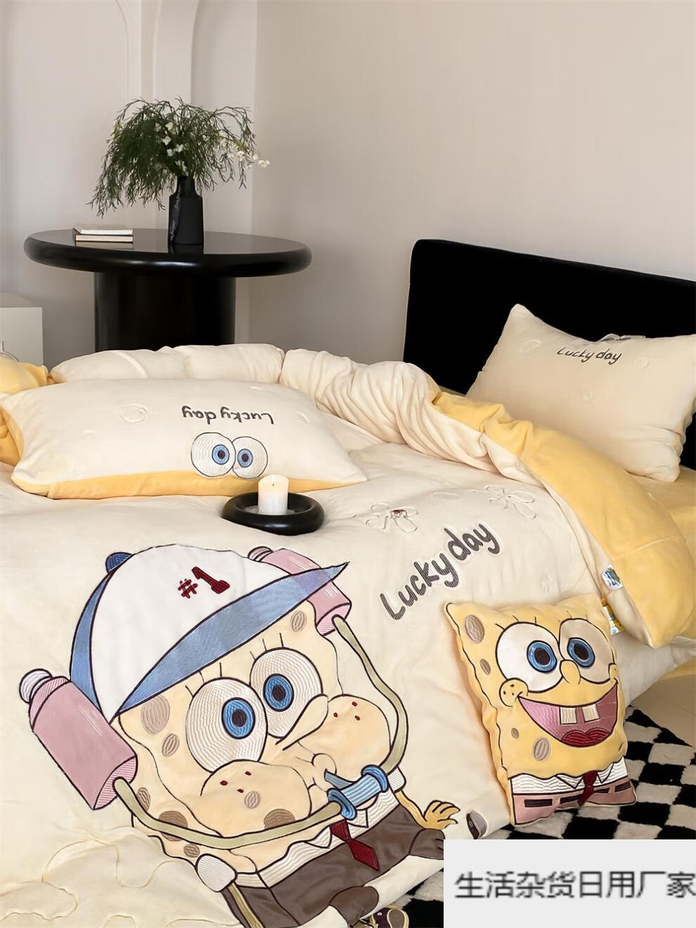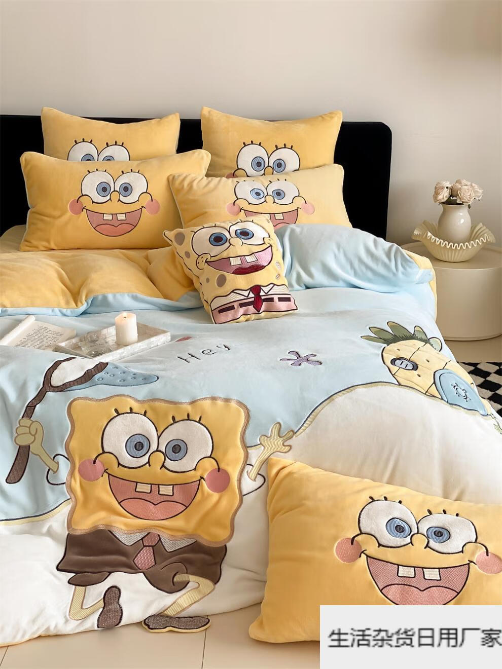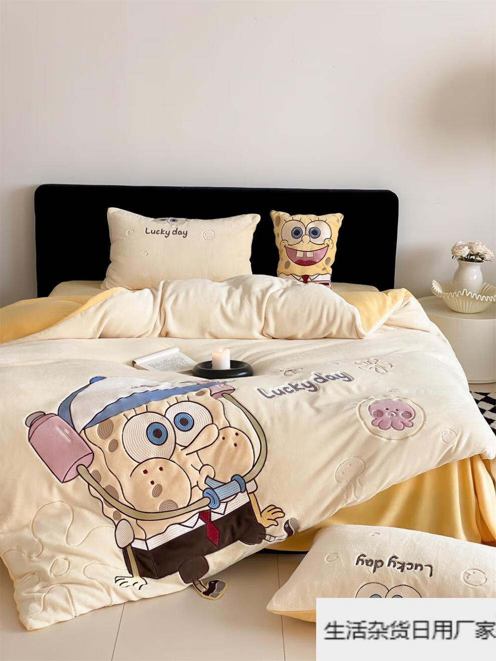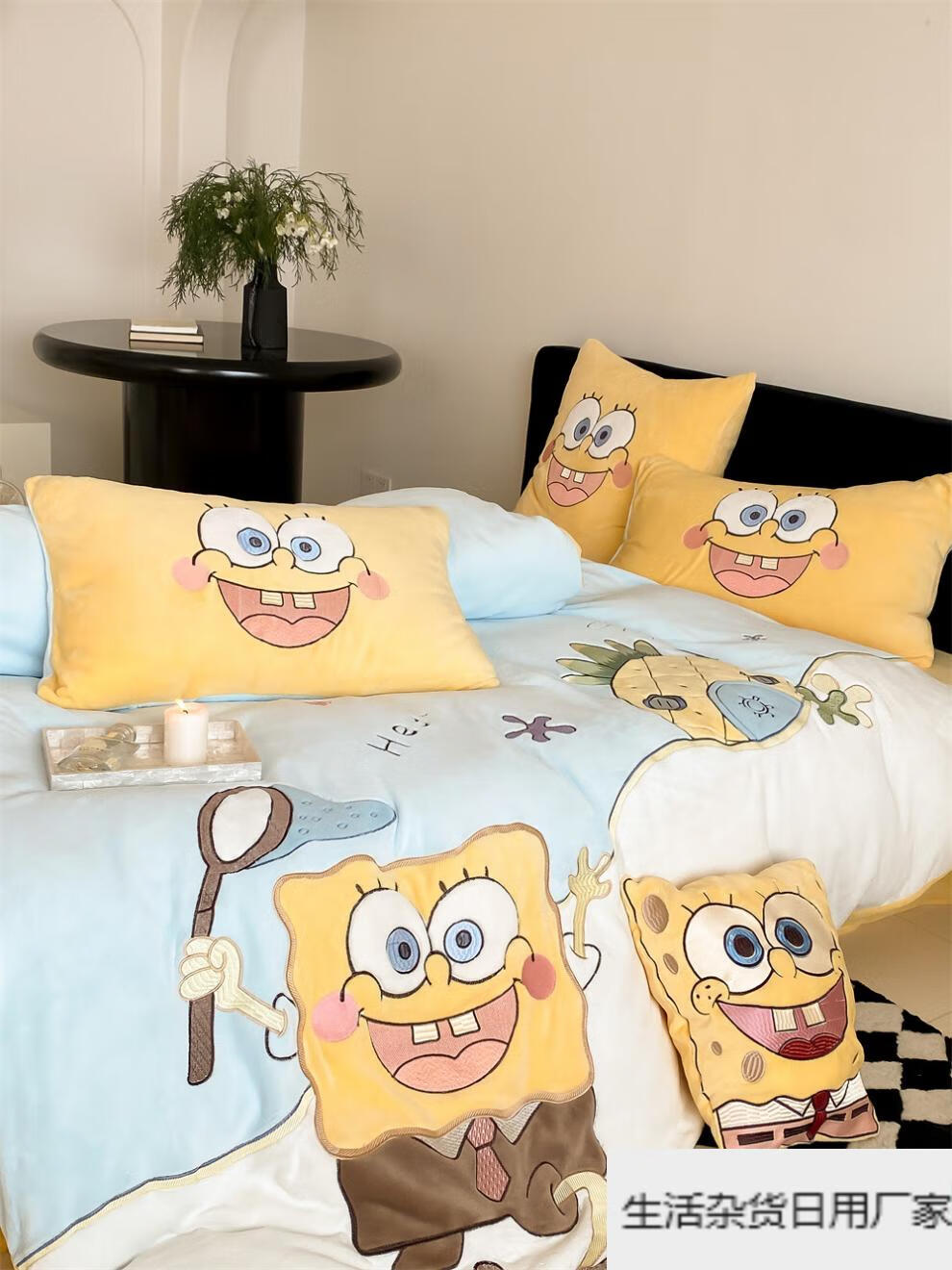 Spongebob cartoon style cute soft lamb velvet + milk velvet four-piece winter thickened warm bedding milk velvet-SpongeBob SquarePants bed sheet 1.5m (quilt cover 200*230cm)