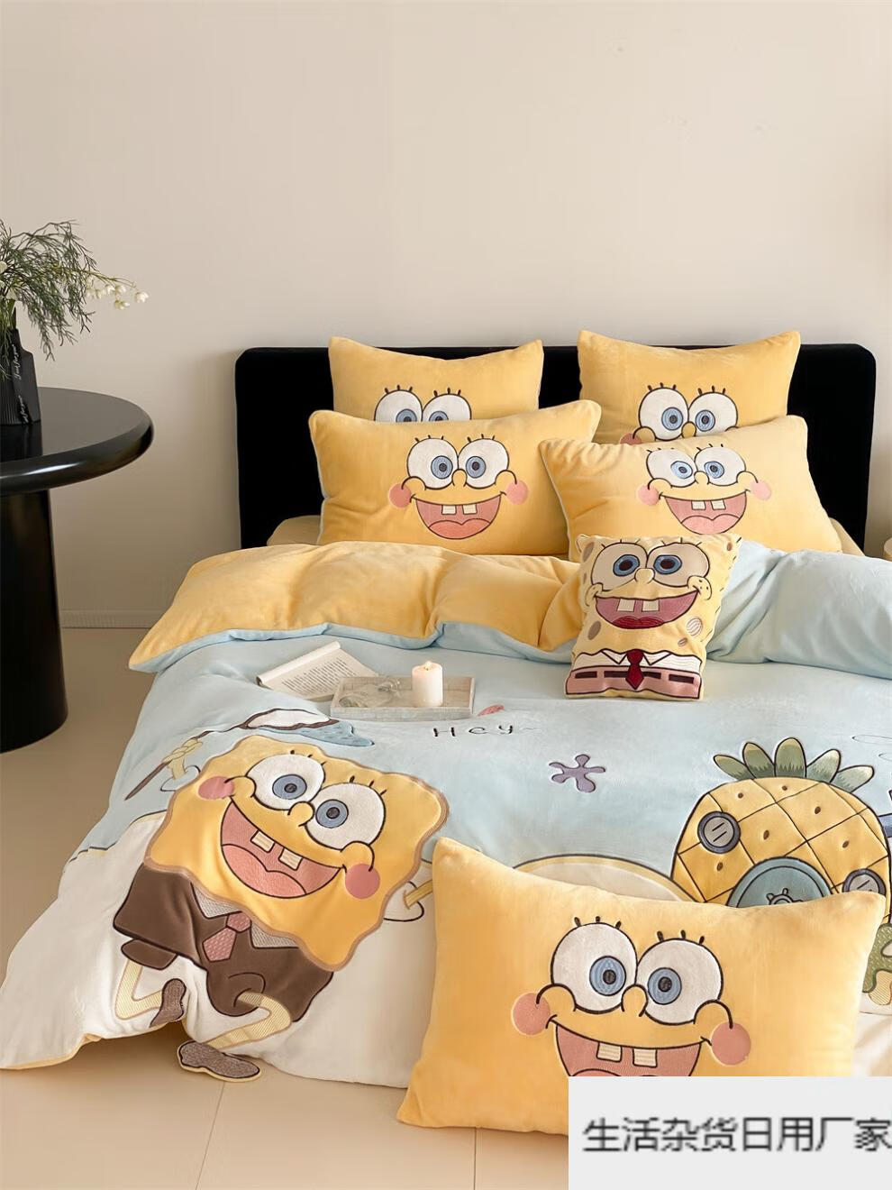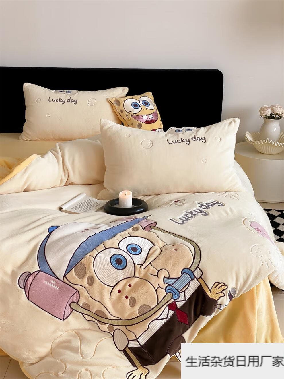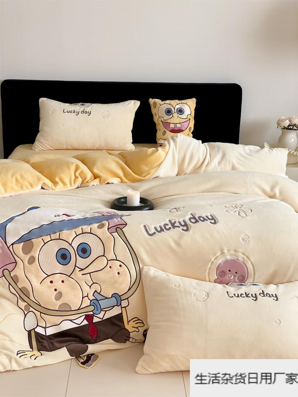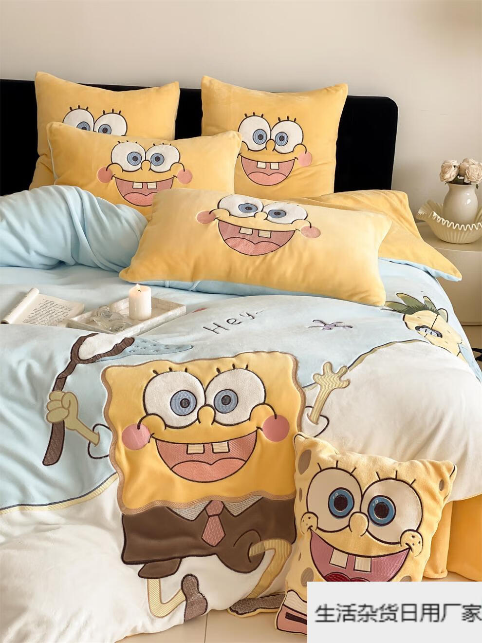 Spongebob cartoon style cute soft lamb velvet + milk velvet four-piece winter thickened warm bedding milk velvet-SpongeBob SquarePants bed sheet 1.5m (quilt cover 200*230cm)