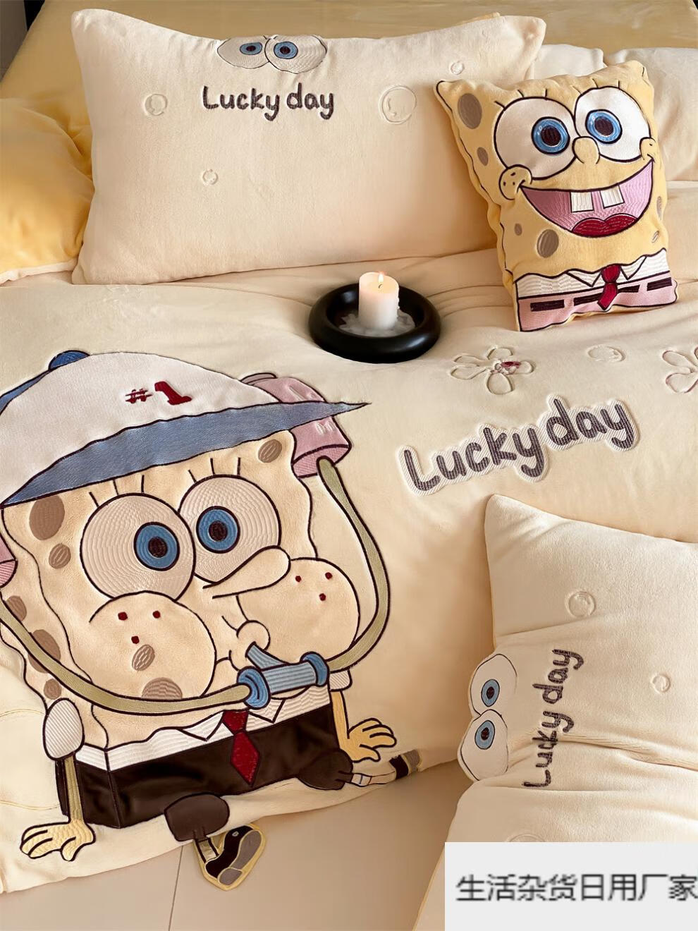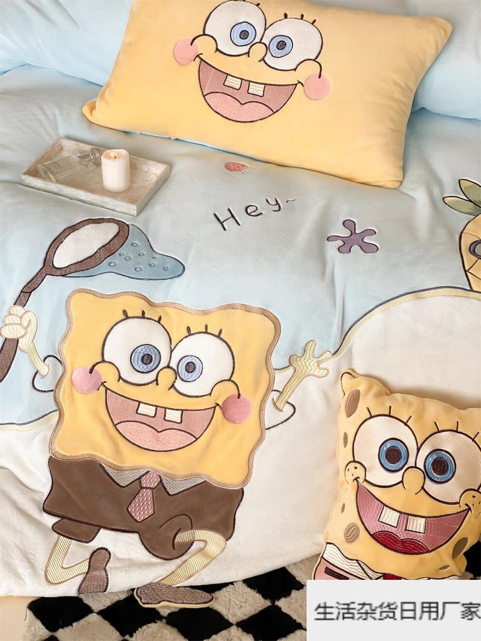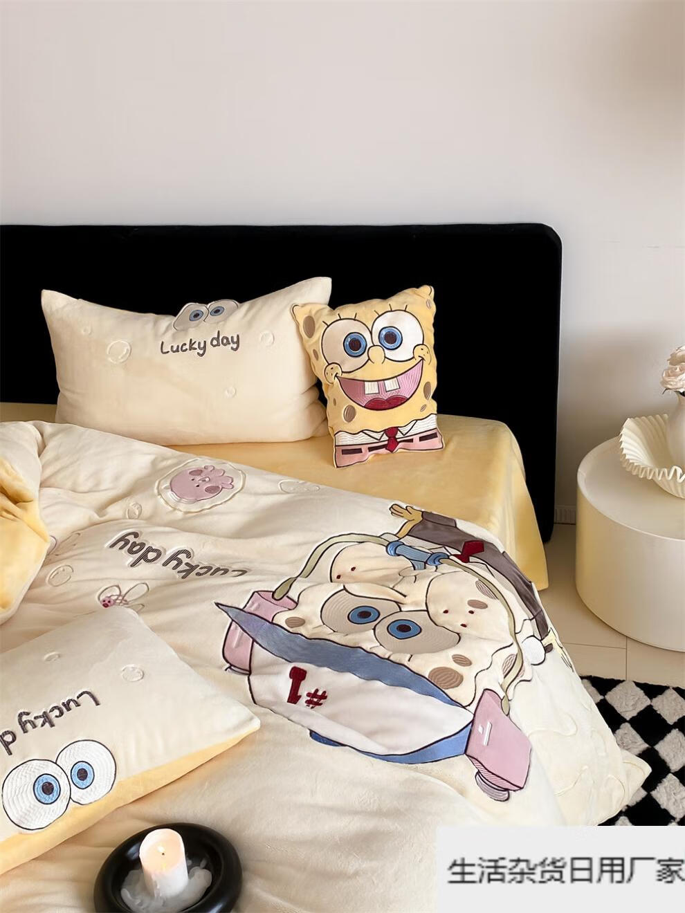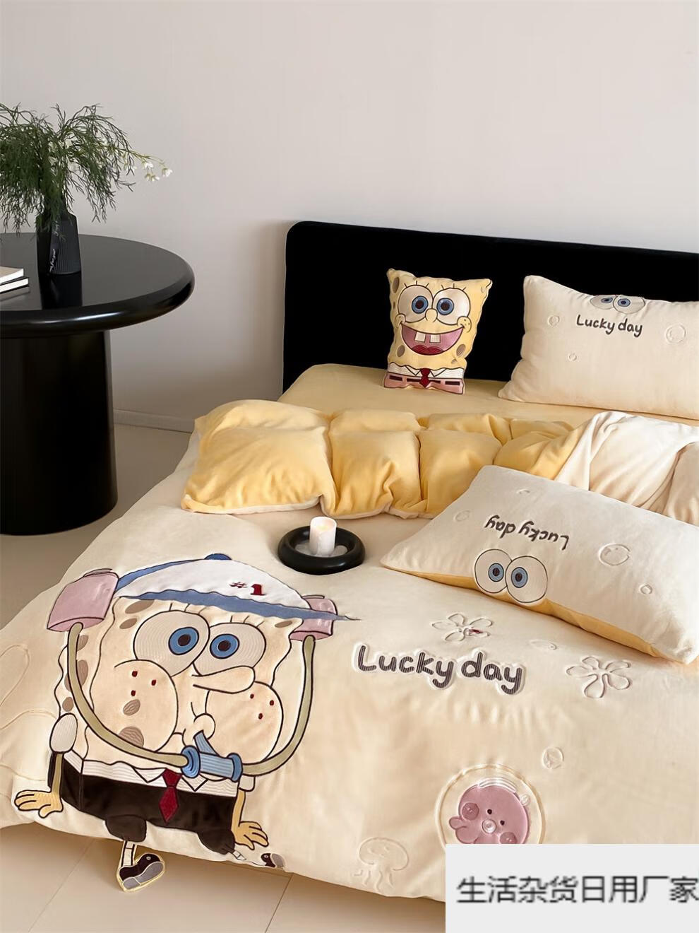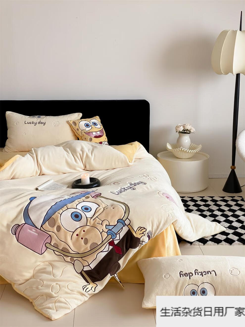 Spongebob cartoon style cute soft lamb velvet + milk velvet four-piece winter thickened warm bedding milk velvet-SpongeBob SquarePants bed sheet 1.5m (quilt cover 200*230cm)