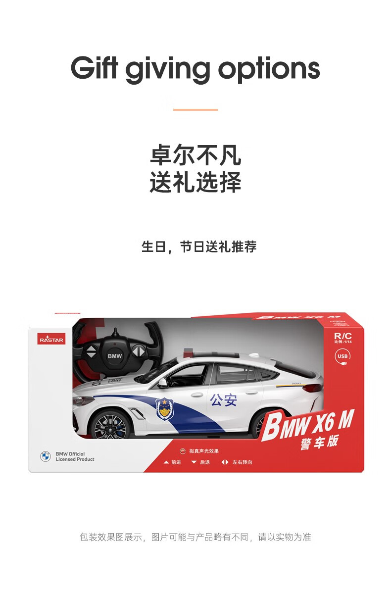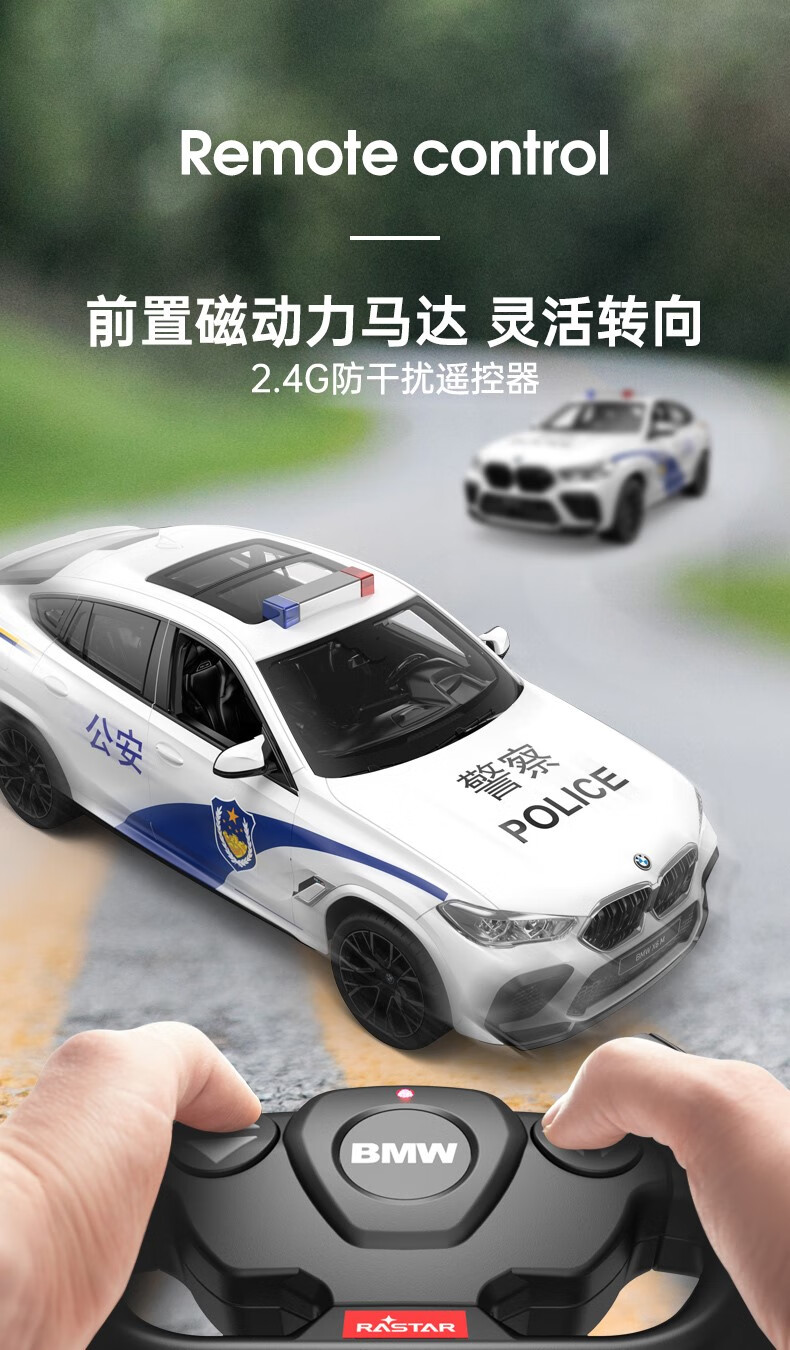 RASTAR Xinghui BMW X6M SWAT 110 Public Security RC Remote Control Car Boys and Children Electric Toys Off-Road 114 BMW X6M Black USB Charging Model