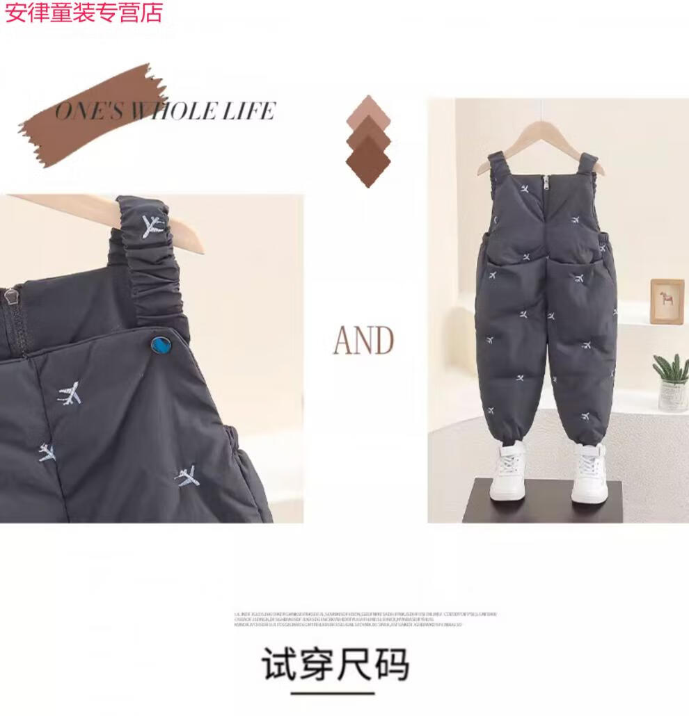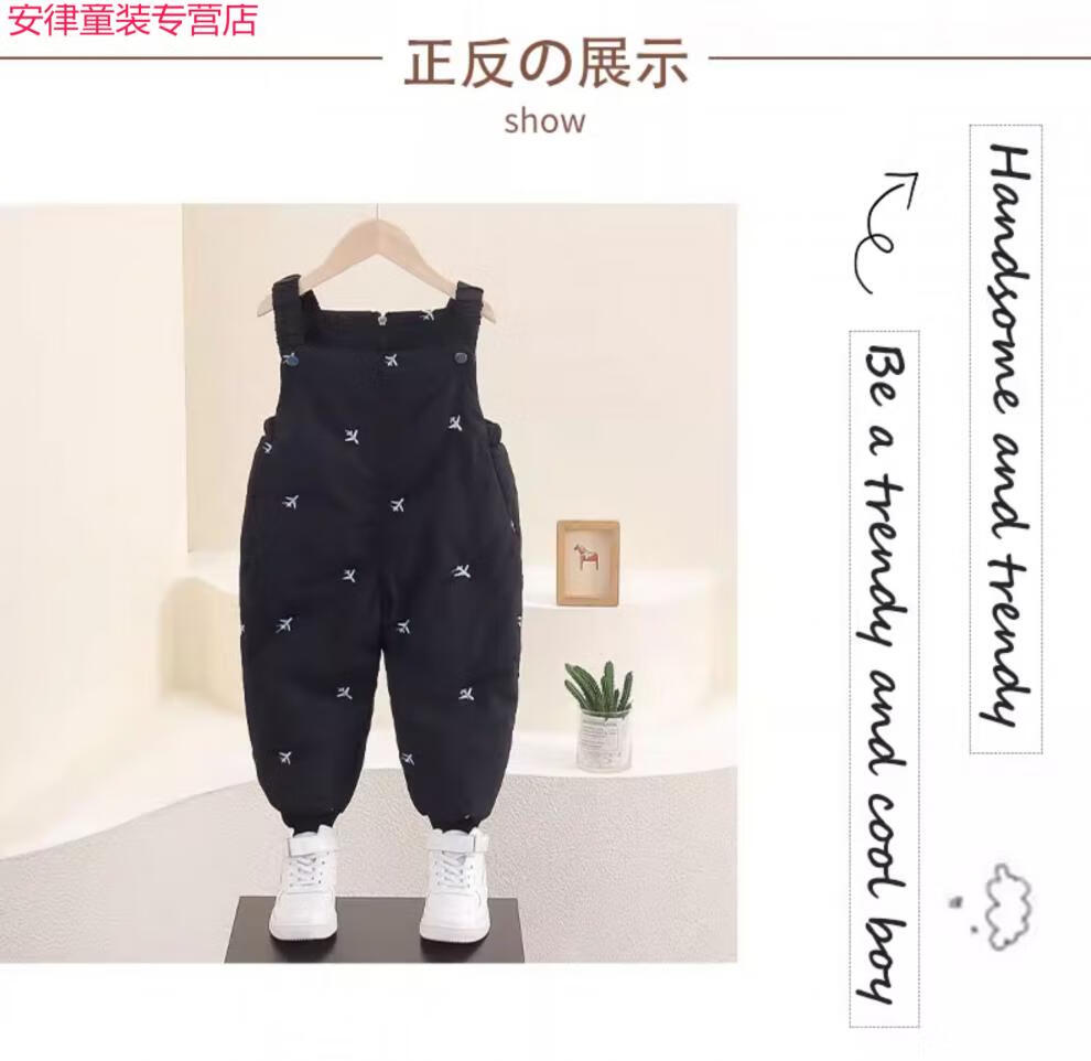 Disney Children's Winter Down Pants 2025 New Baby Style Down Overalls for Boys and Girls Winter Comfortable Warm Pants Black 90 cm