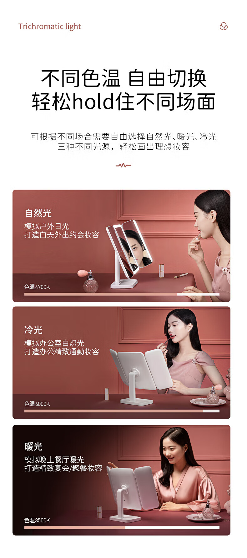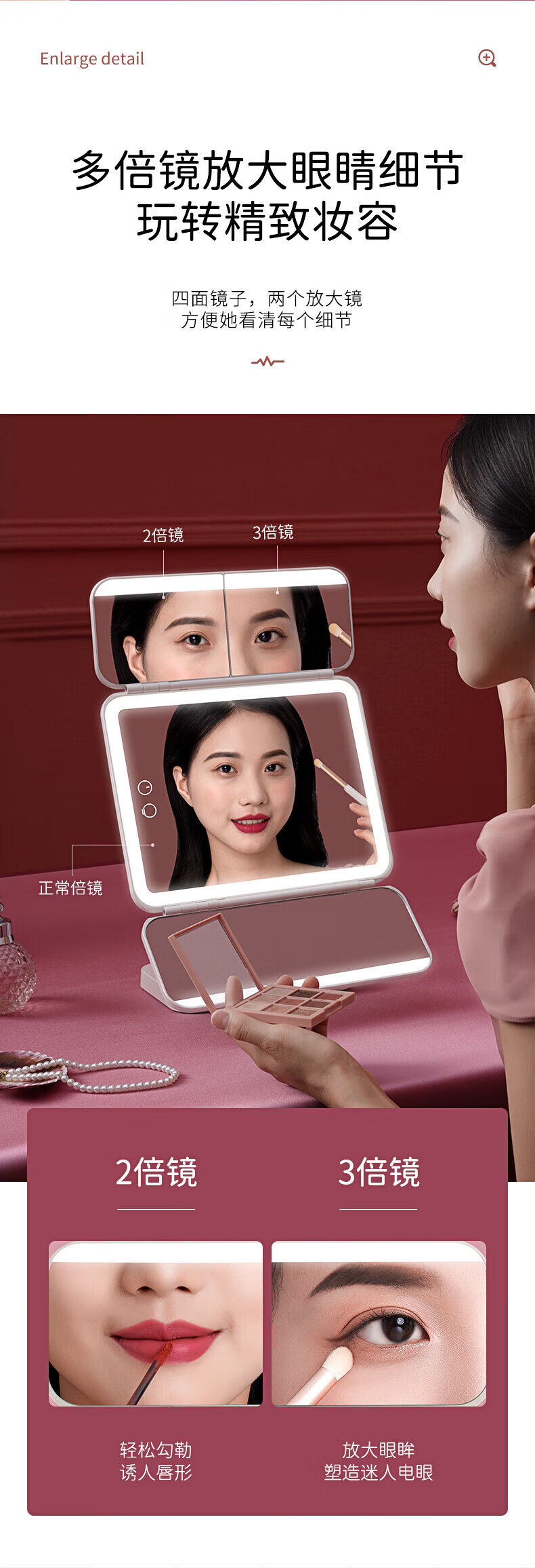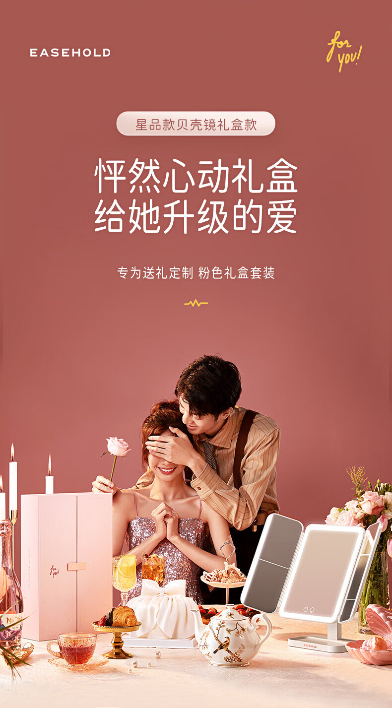 EASEHOLDeasehold makeup mirror smart light fill gift box birthday gift practical sense for girls LED beauty mirror minimalist white small 30% off 2000mah
