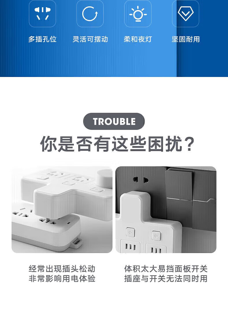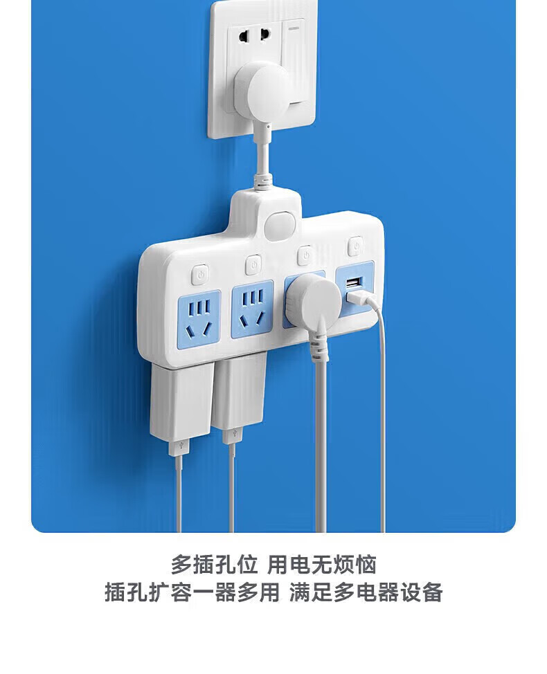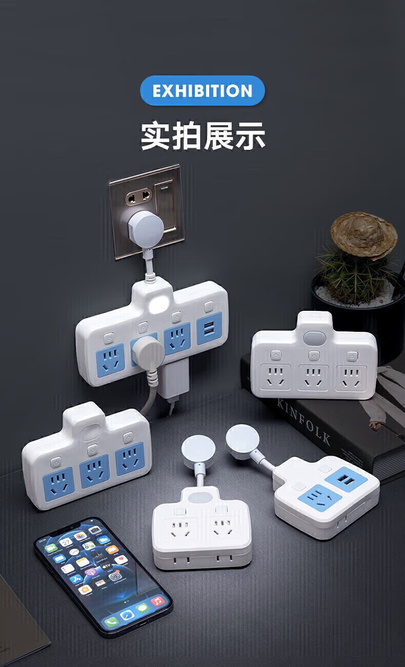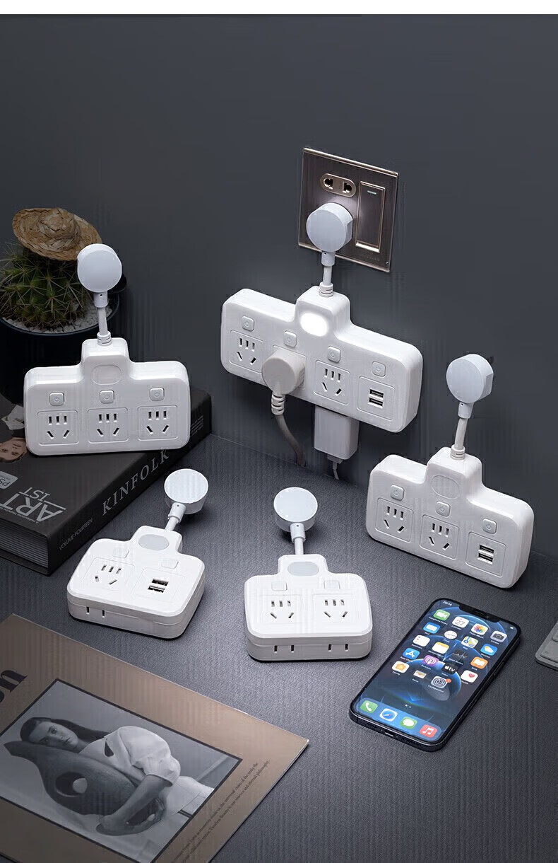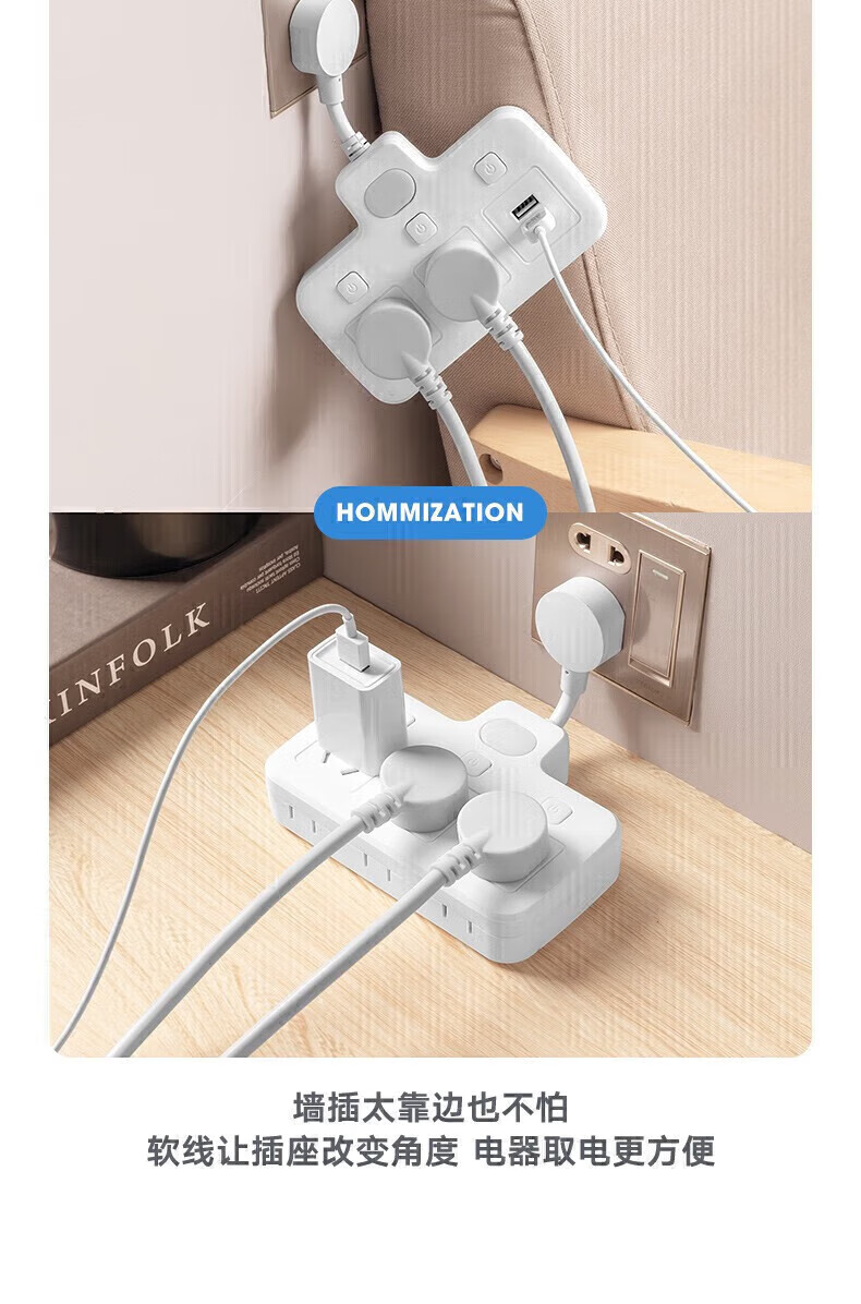 Xiaomi Youpin socket power conversion plug flexible short-wire one-turn multi-position switch night light plug-in board Pin-shaped plug white one-turn two + two-tail plug (anti-shock)
