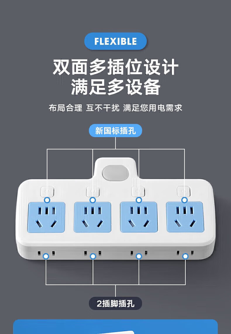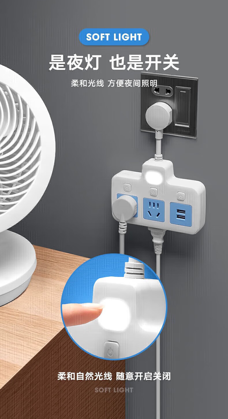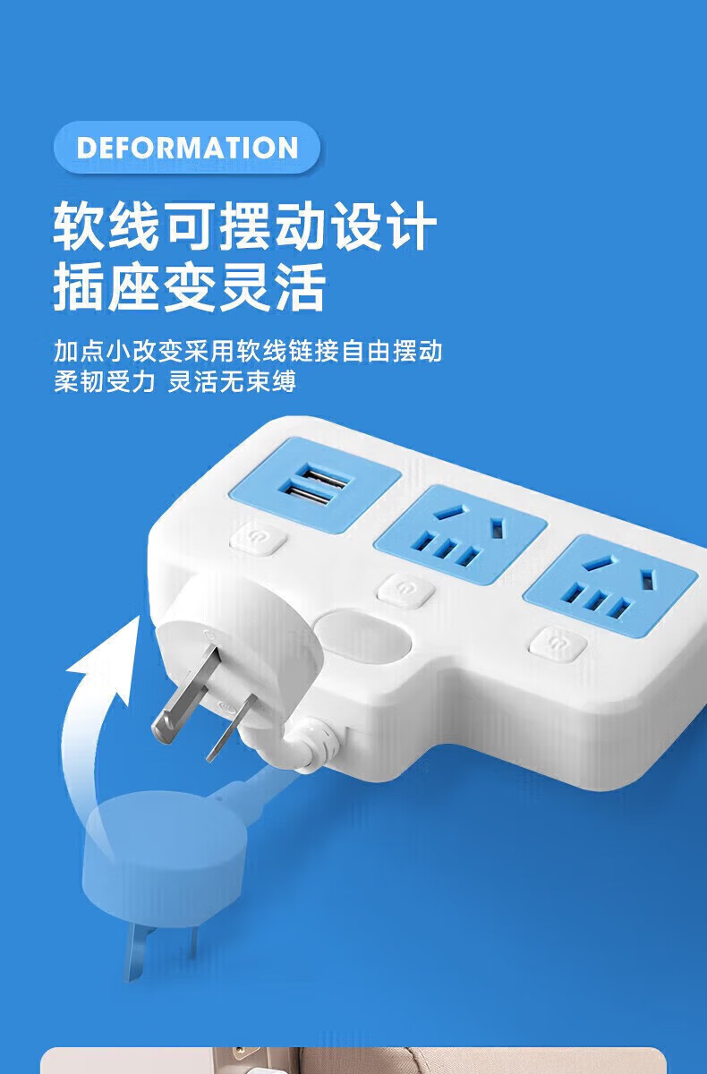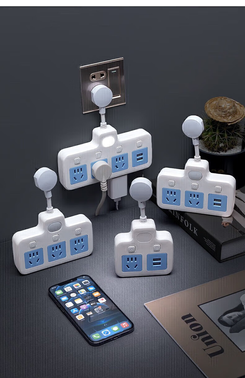 Xiaomi Youpin socket power conversion plug flexible short-wire one-turn multi-position switch night light plug-in board Pin-shaped plug white one-turn two + two-tail plug (anti-shock)