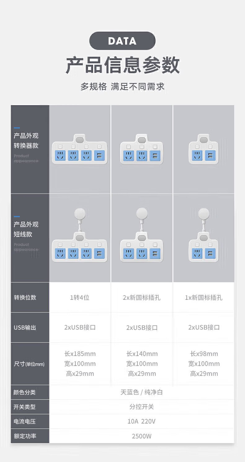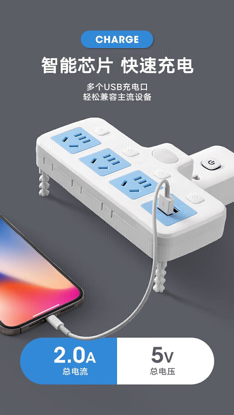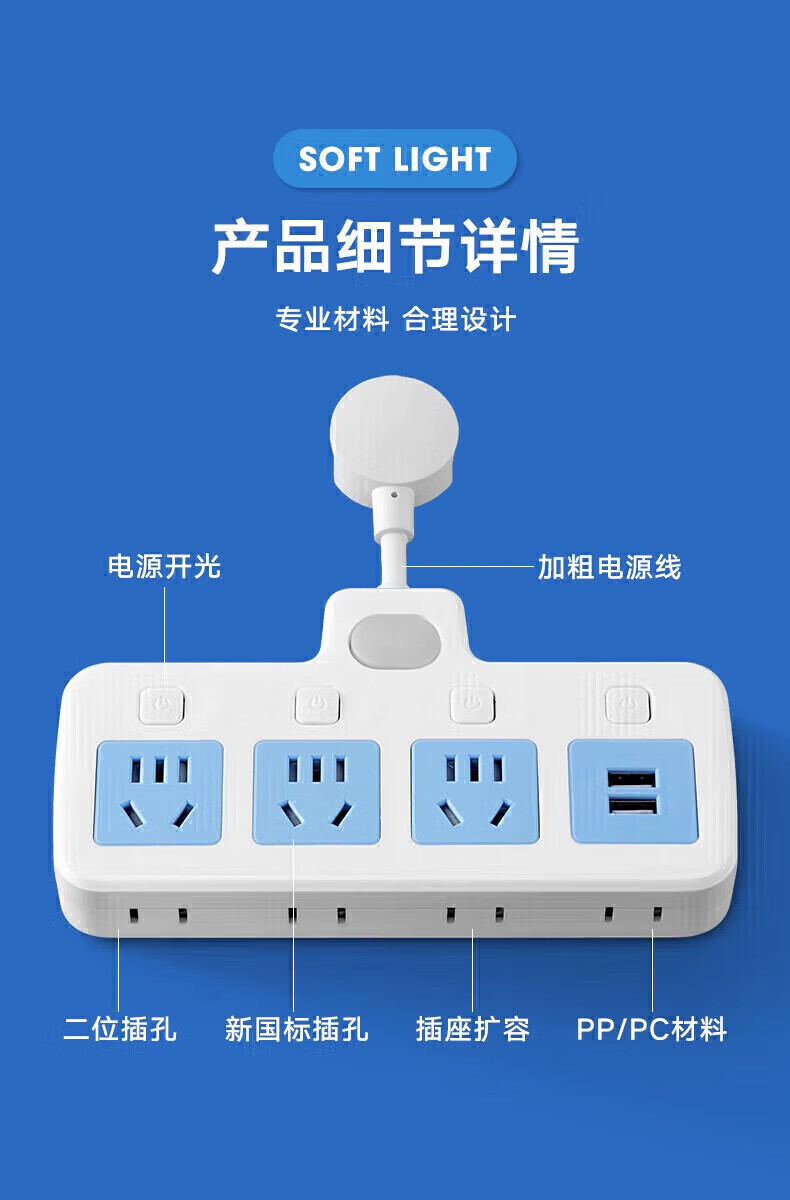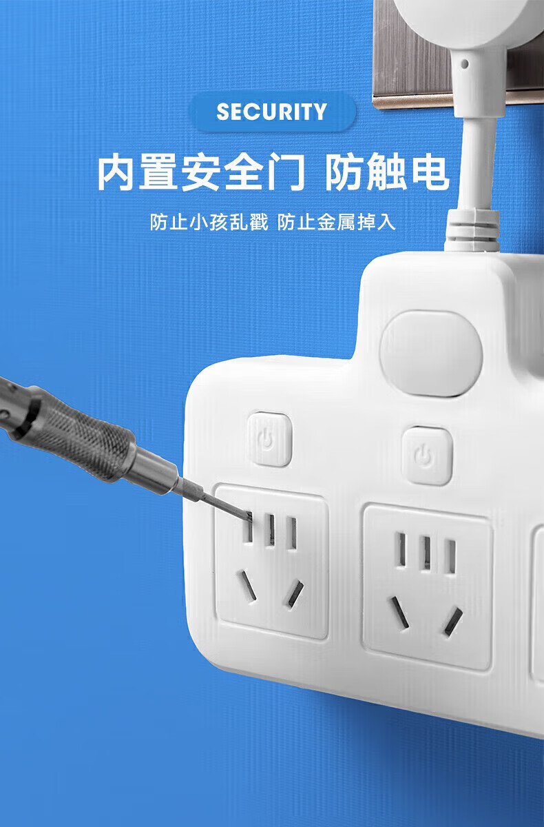 Xiaomi Youpin socket power conversion plug flexible short-wire one-turn multi-position switch night light plug-in board Pin-shaped plug white one-turn two + two-tail plug (anti-shock)