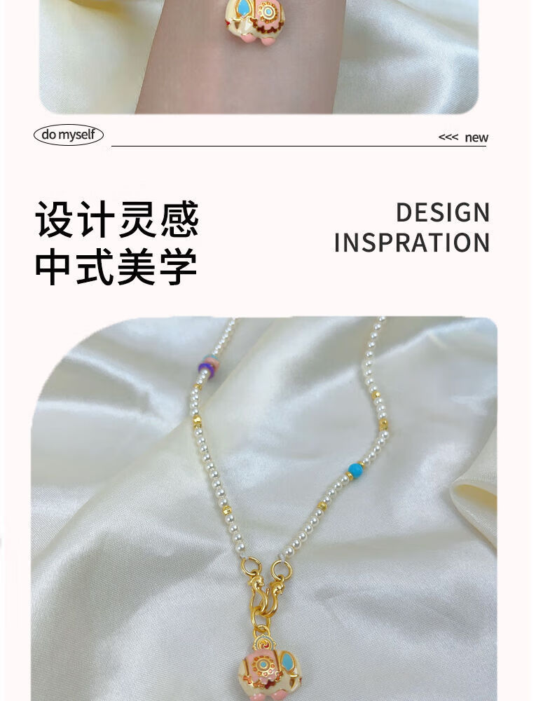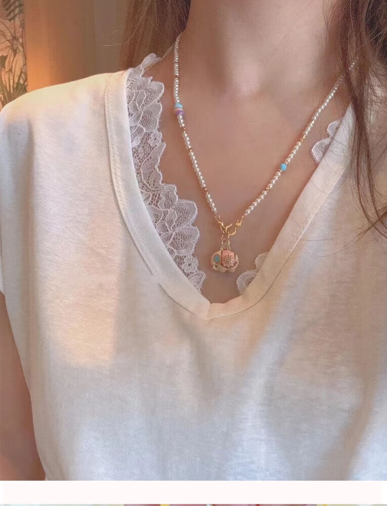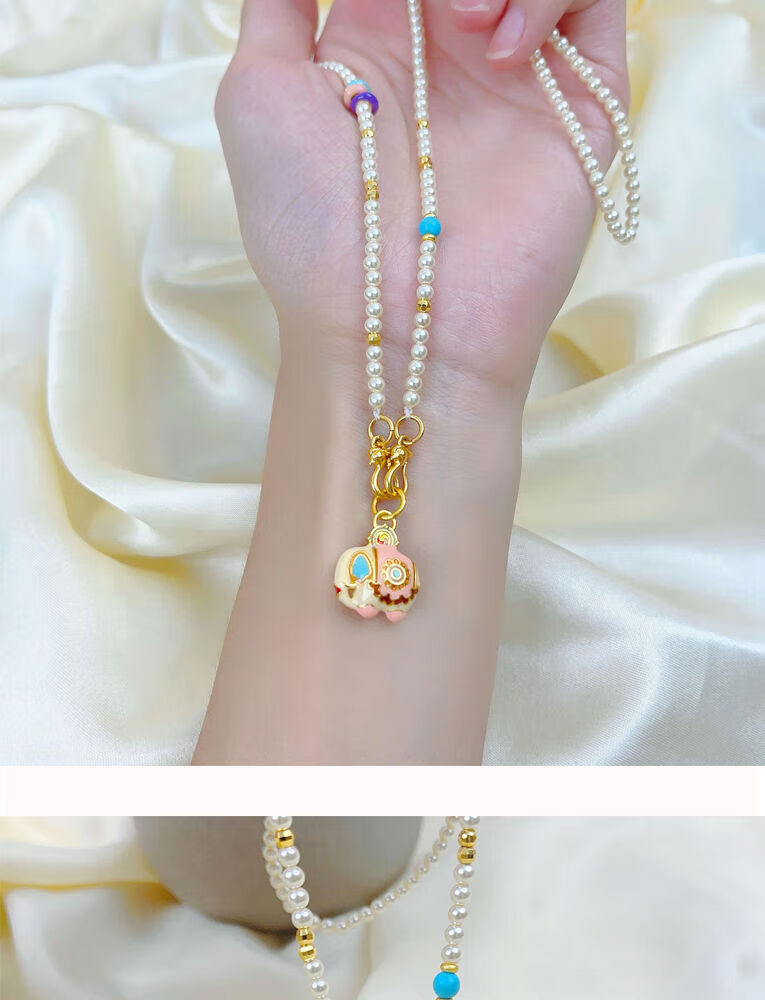 Yuying Pearl Necklace Women's Light Luxury Small Lots of Pamine Autumn and Winter Sweater Chain Beaded Accessories Gold Pendant Lanyard Buckle Pearl Auspicious Enamel