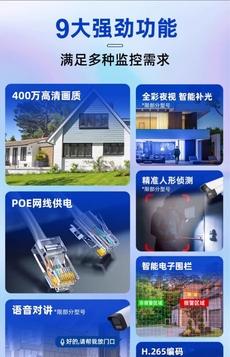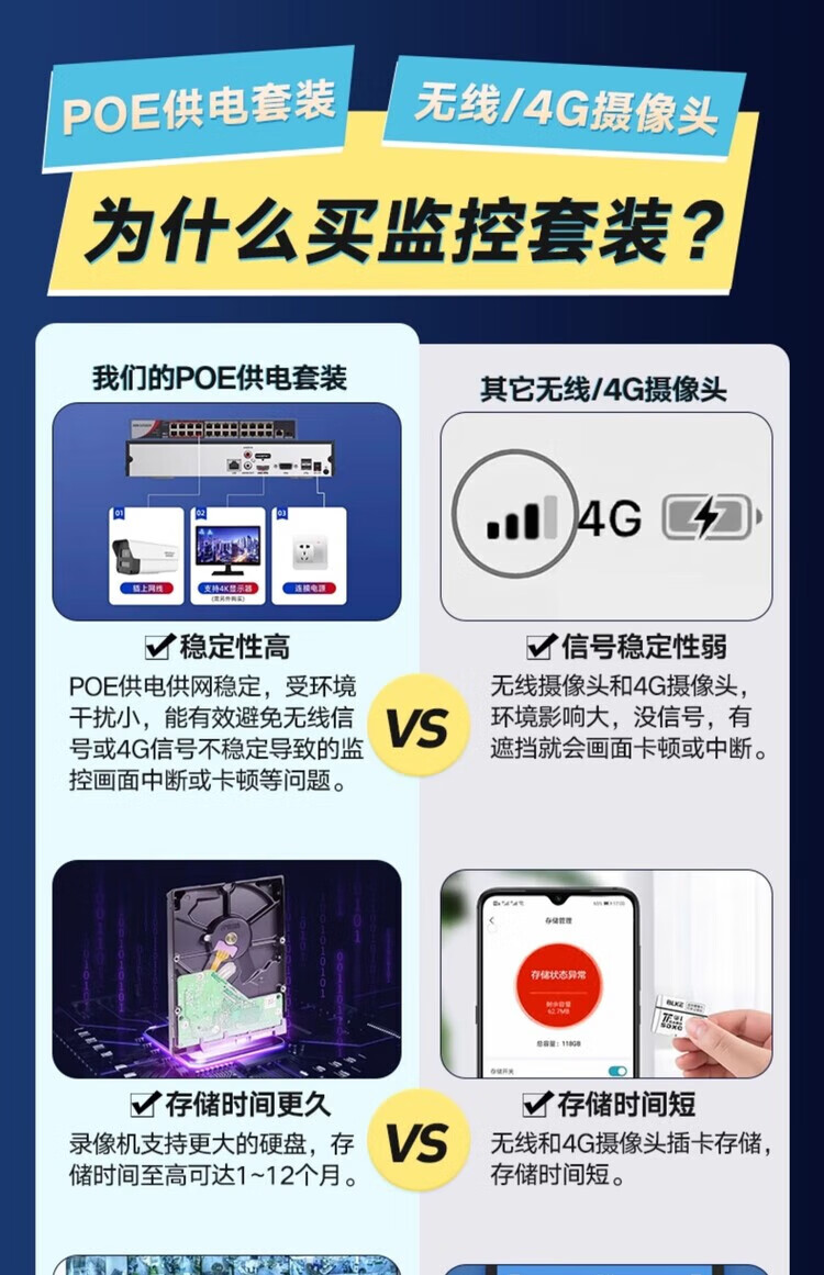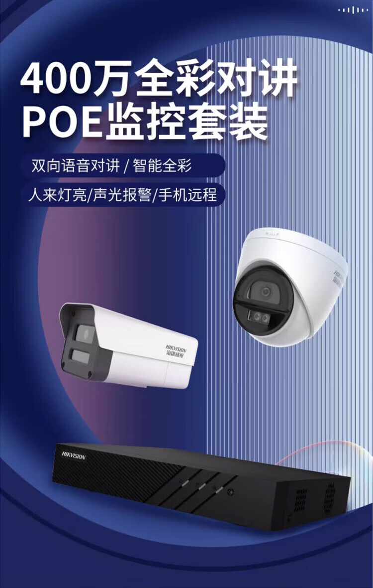HIKVISION surveillance camera POE surveillance set equipment complete set of supermarket household outdoor high-definition night vision 33-128-channel surveillance solution free customization Consultation to place an order No memory 3 million pixels