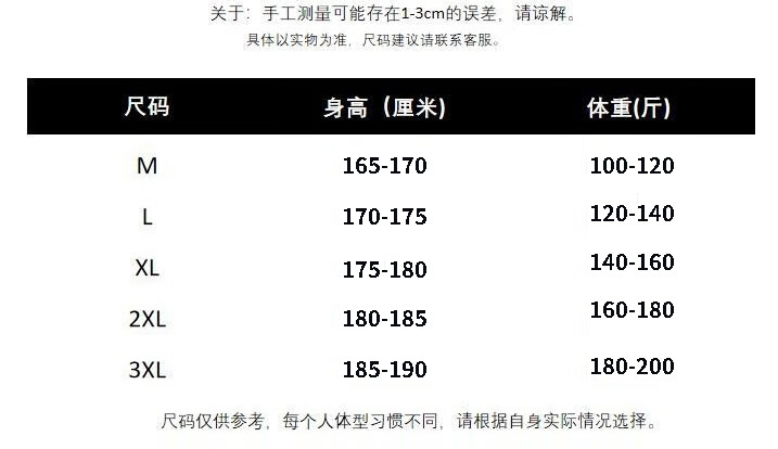 China (cm) 165 / 88-90 170 / 96-98 175 / 108-110 180 / 118-122 185 / 126-130