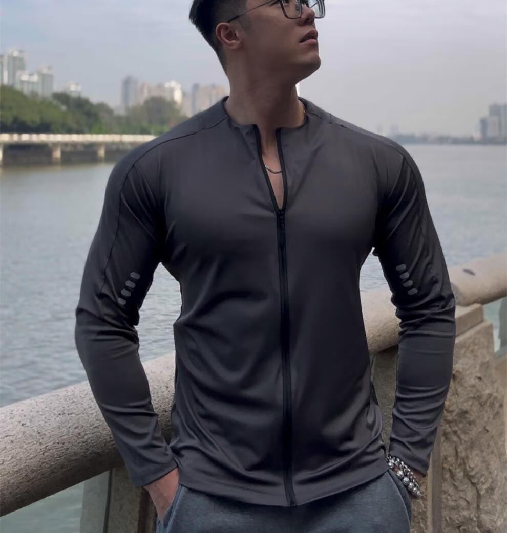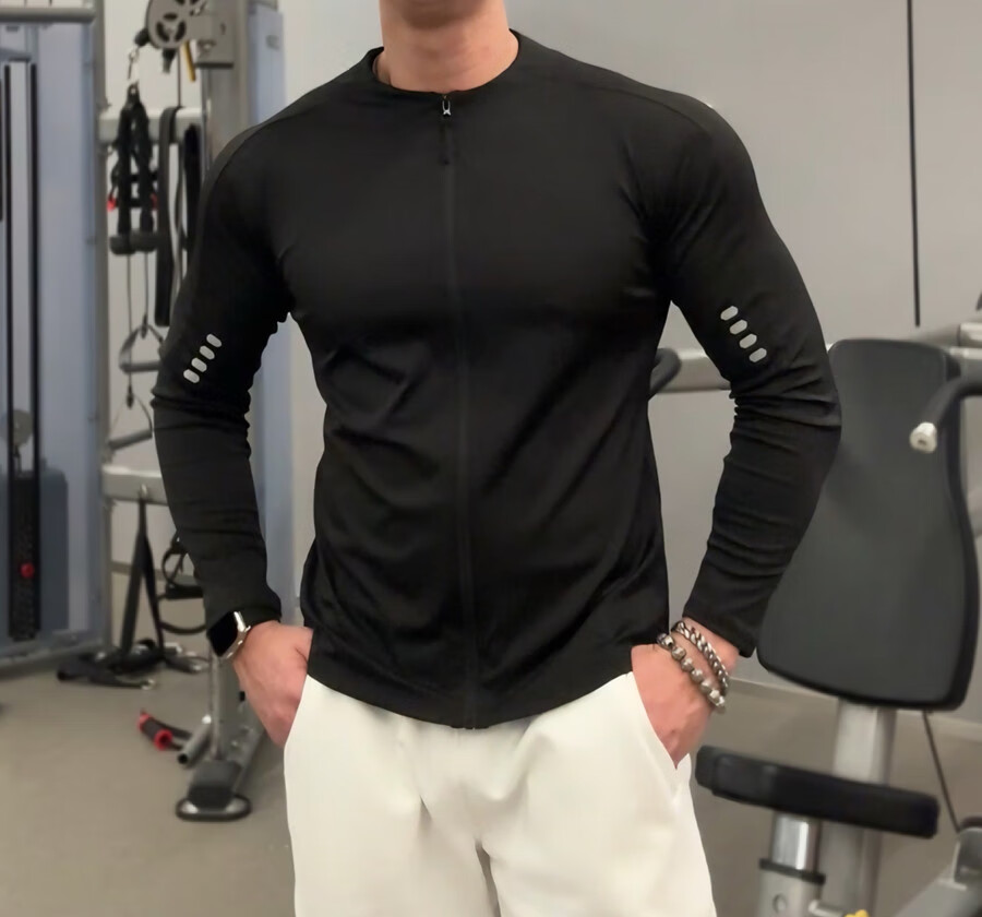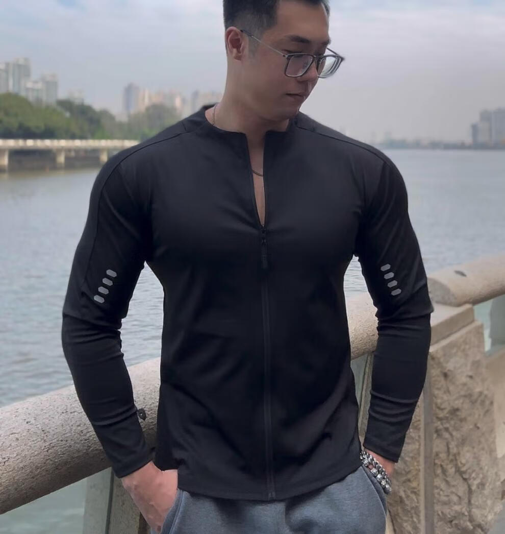 Bantang Jinse Cycling Jacket Sports Long Sleeve Men's Cycling Jacket Fitness Spring and Autumn Top Quick-Drying Dry Tight Stretch Running Training Black M _ Recommended 100-120 Jin Jin equals 0.5 kg