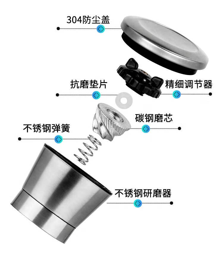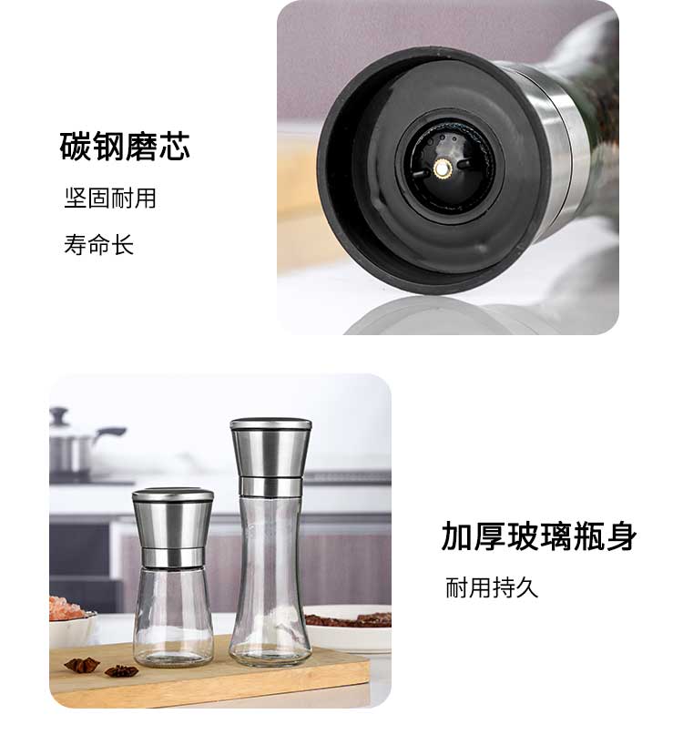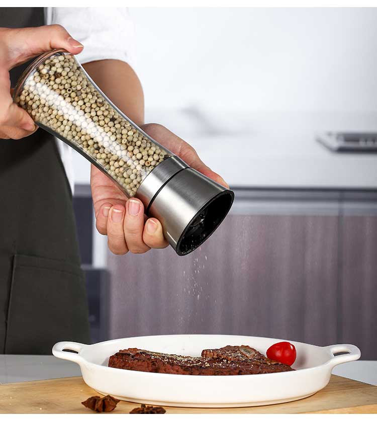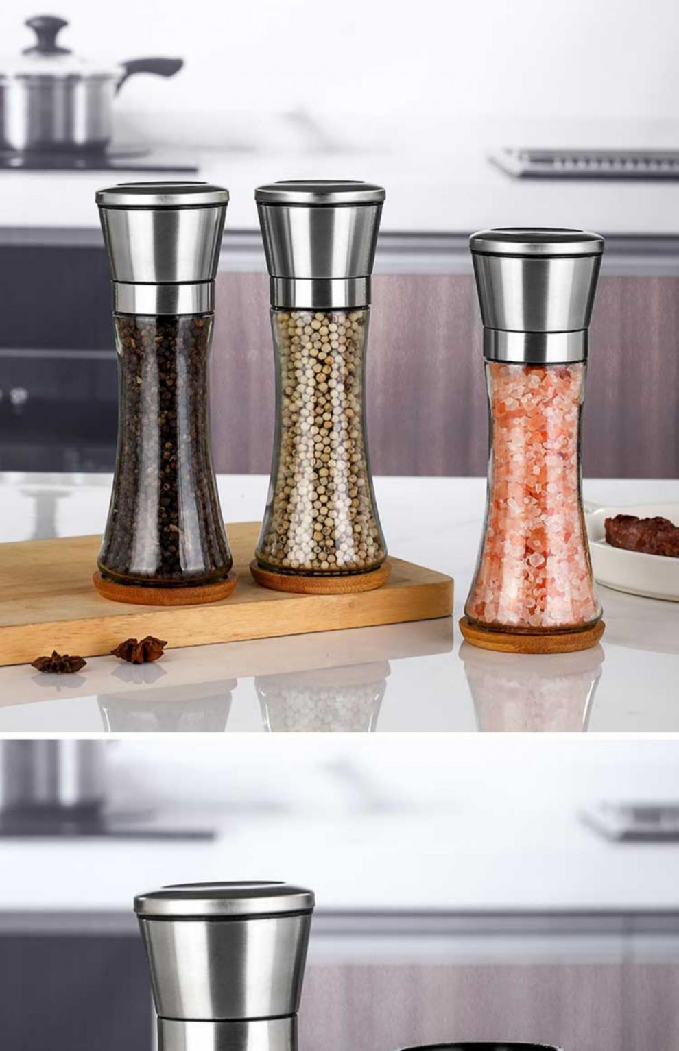 Midele Carbon Steel Core Grinding Covered Manual Pepper Grinder 304 Stainless Steel Household Kitchen Tool Grinding Short Style - Carbon Steel Core 304 Stainless Steel Head