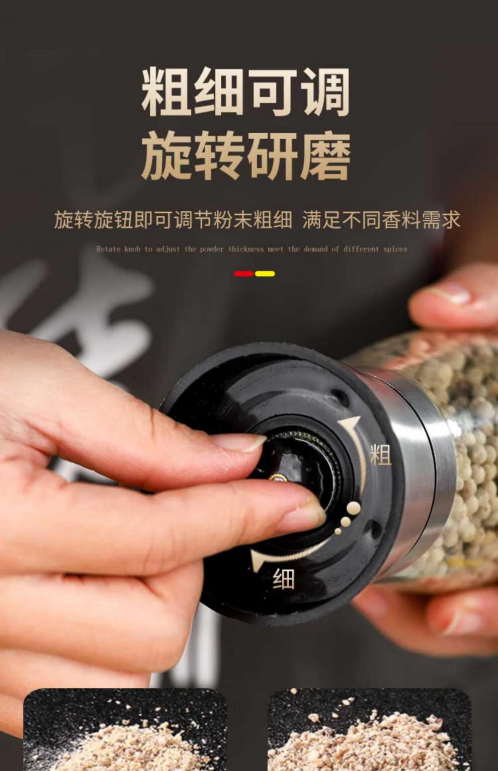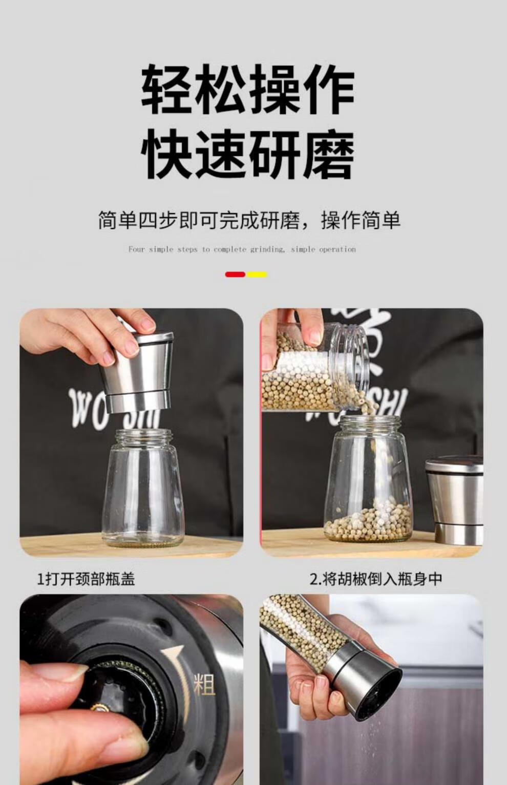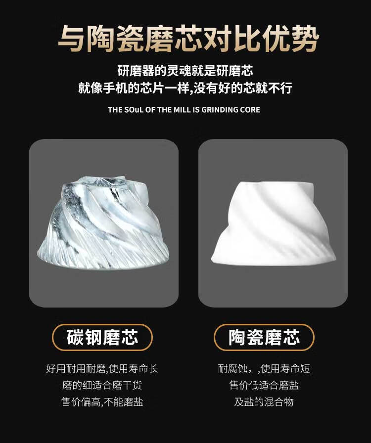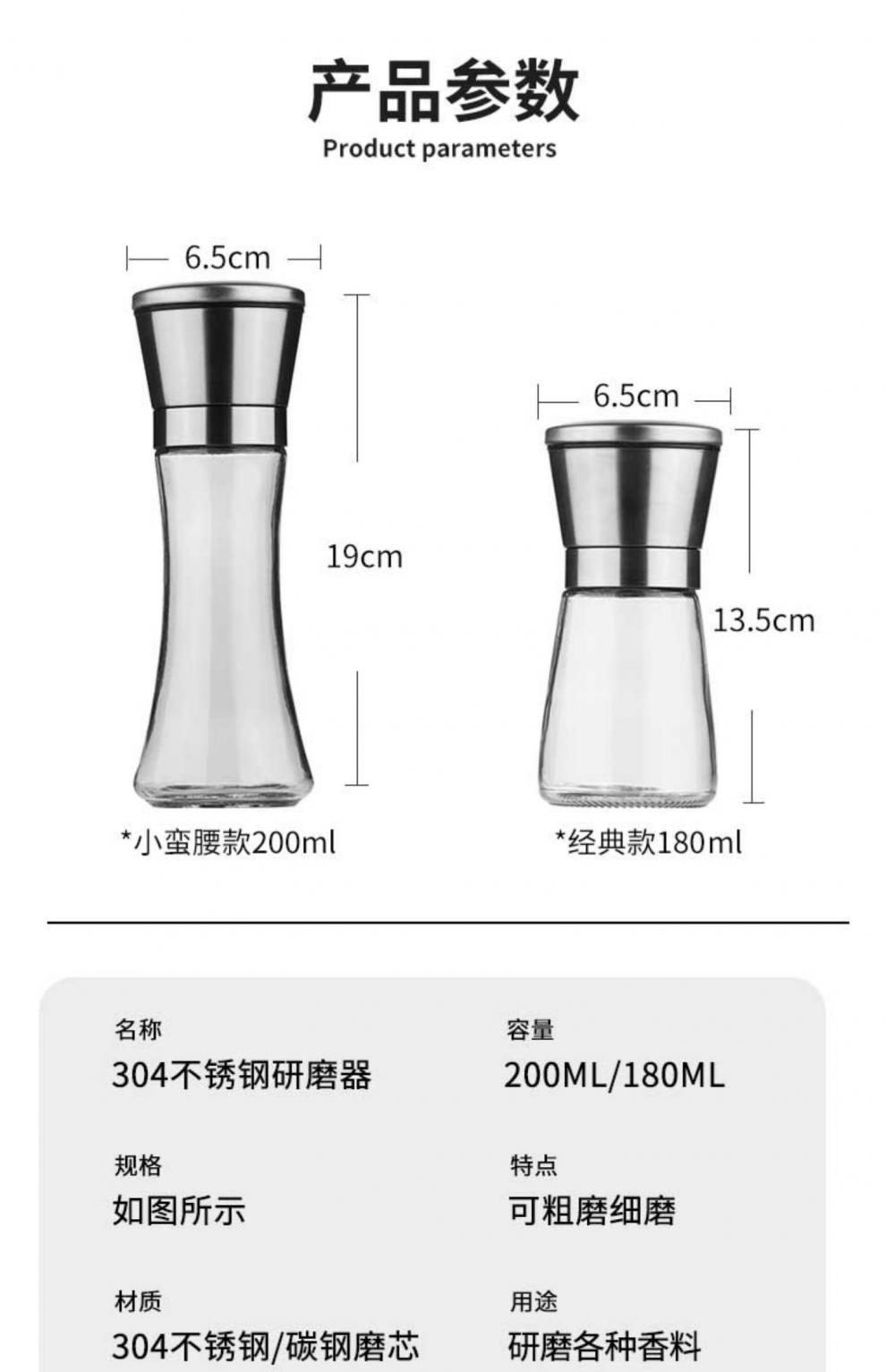 Midele Carbon Steel Core Grinding Covered Manual Pepper Grinder 304 Stainless Steel Household Kitchen Tool Grinding Short Style - Carbon Steel Core 304 Stainless Steel Head