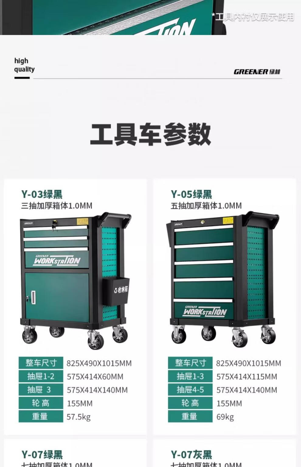 Green Forest Tool Cart Trolley Mobile Multi-Function Tool Cabinet Workshop With Tool Box Car Auto Repair Set Complete Flagship Three Drawings_Green Black