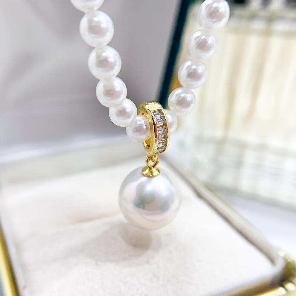 Hengjiuye DIY pearl accessories S925 silver pendant buckle empty support golden silver necklace pendant with 10-13mm round bar silver pendant empty support not including beads and chain