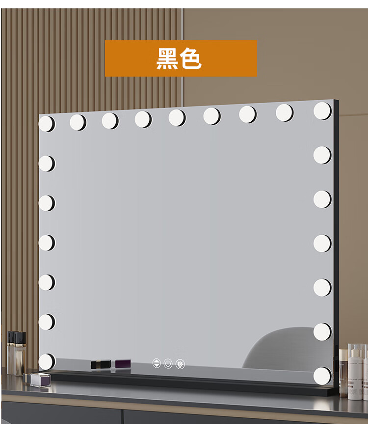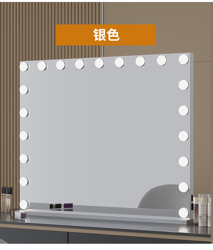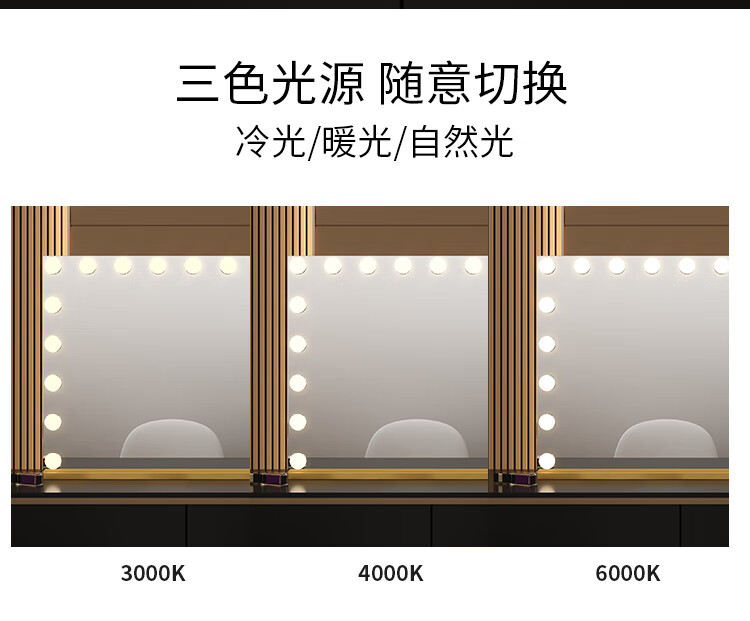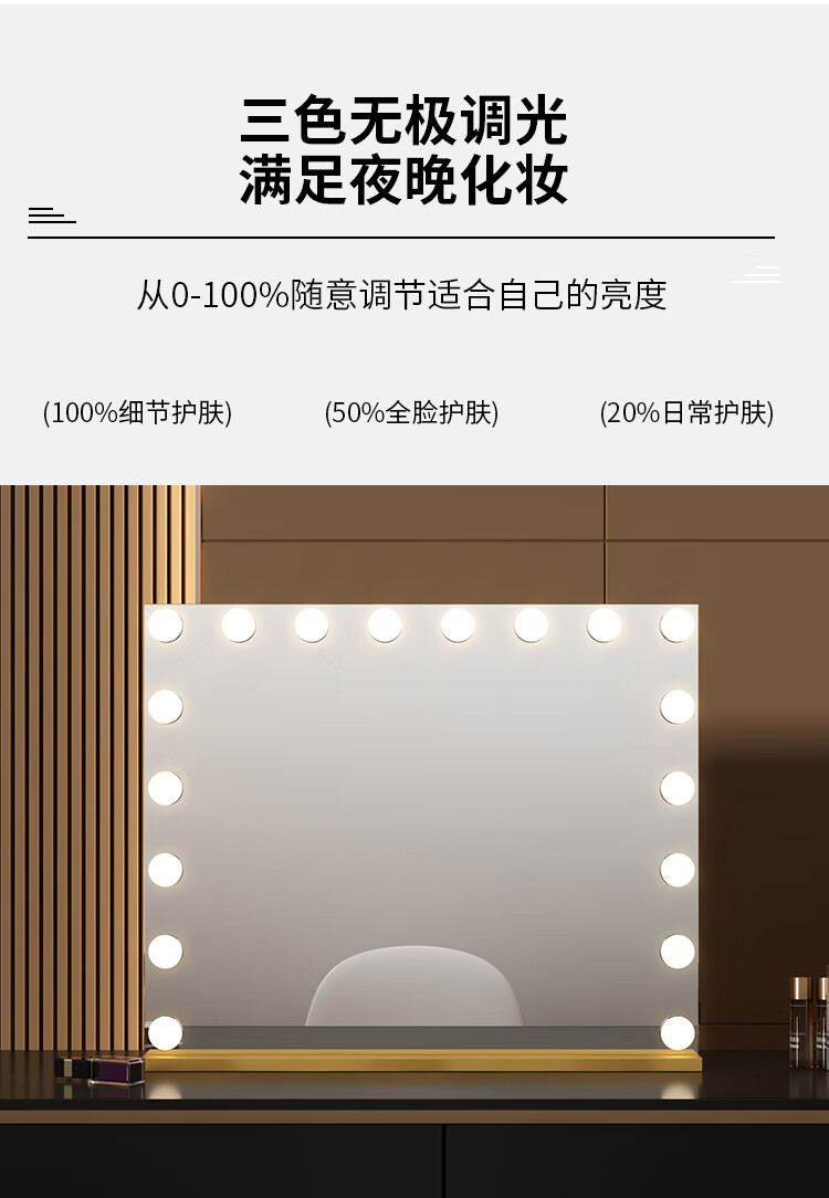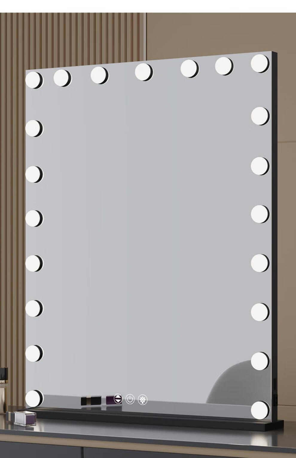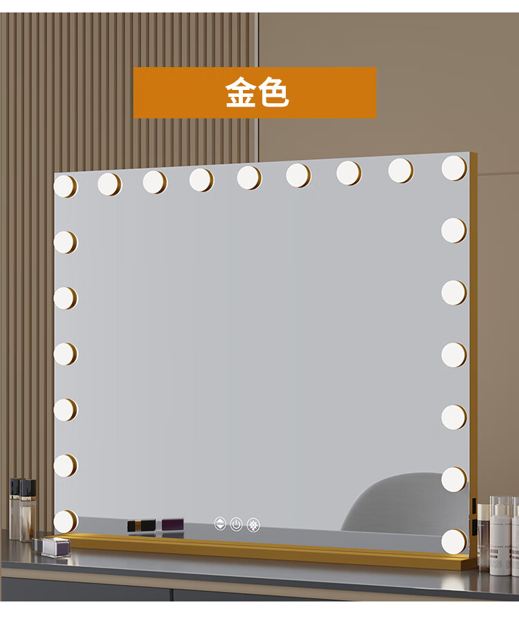 Large Square Makeup Mirror with Bulb Desktop LED Lamp Desktop Bedroom Makeup Mirror Internet Celebrity Smart Charging Vertical Style Gold 55*70+Socket+Bluetooth Speaker