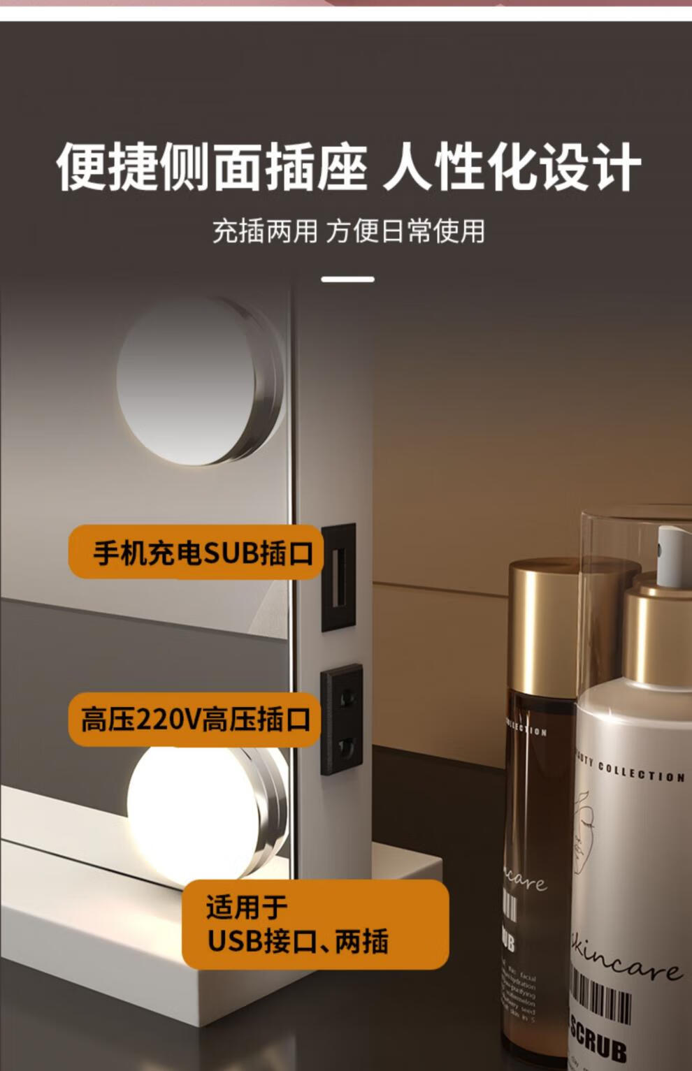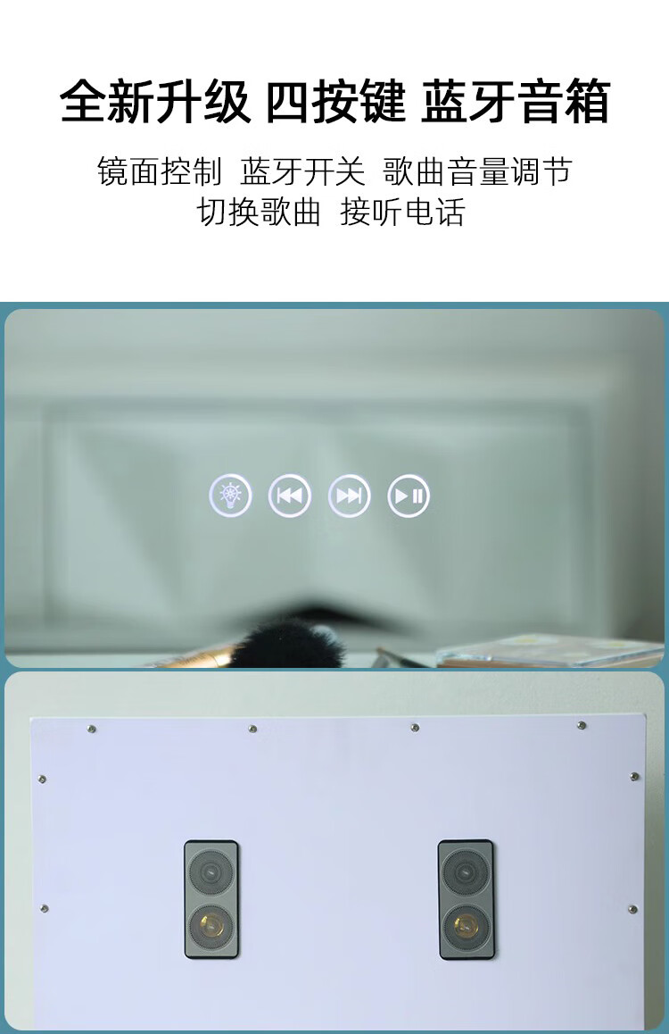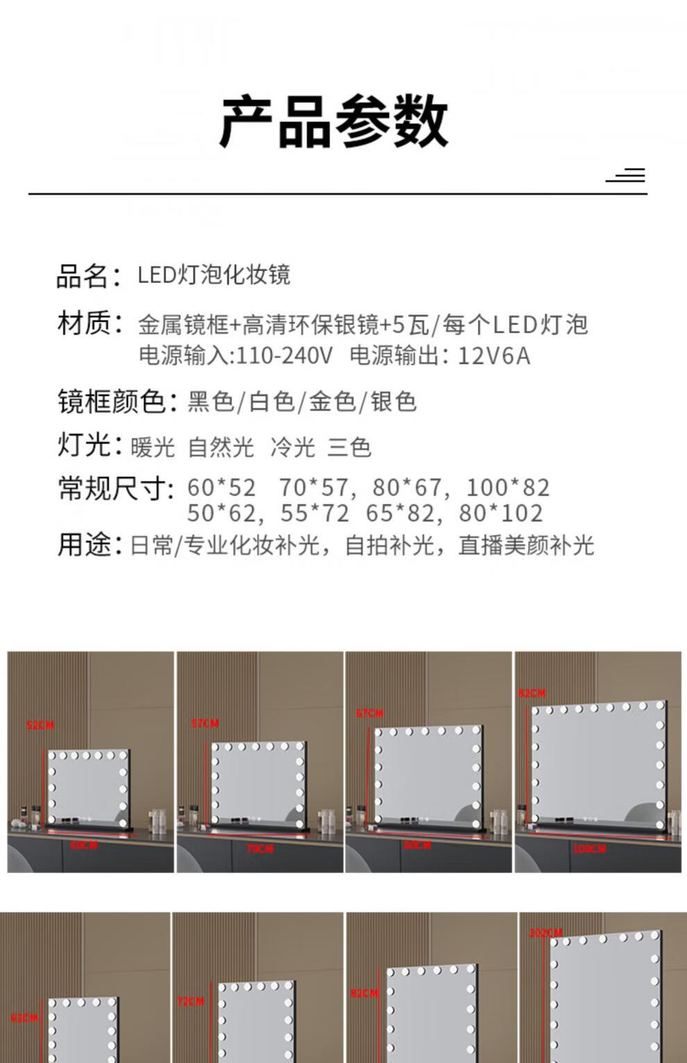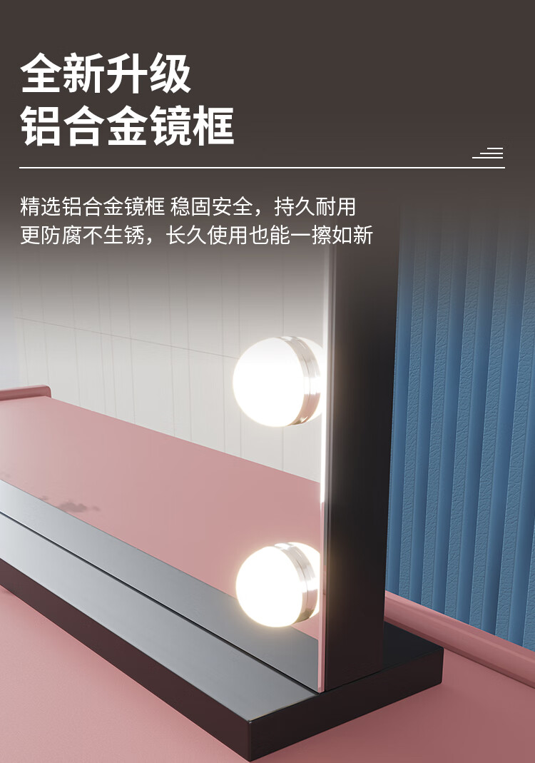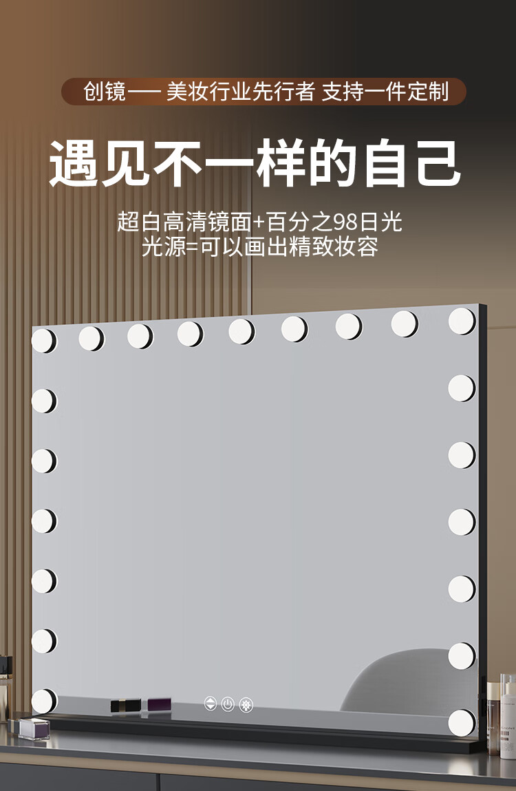 Large Square Makeup Mirror with Bulb Desktop LED Lamp Desktop Bedroom Makeup Mirror Internet Celebrity Smart Charging Vertical Style Gold 55*70+Socket+Bluetooth Speaker