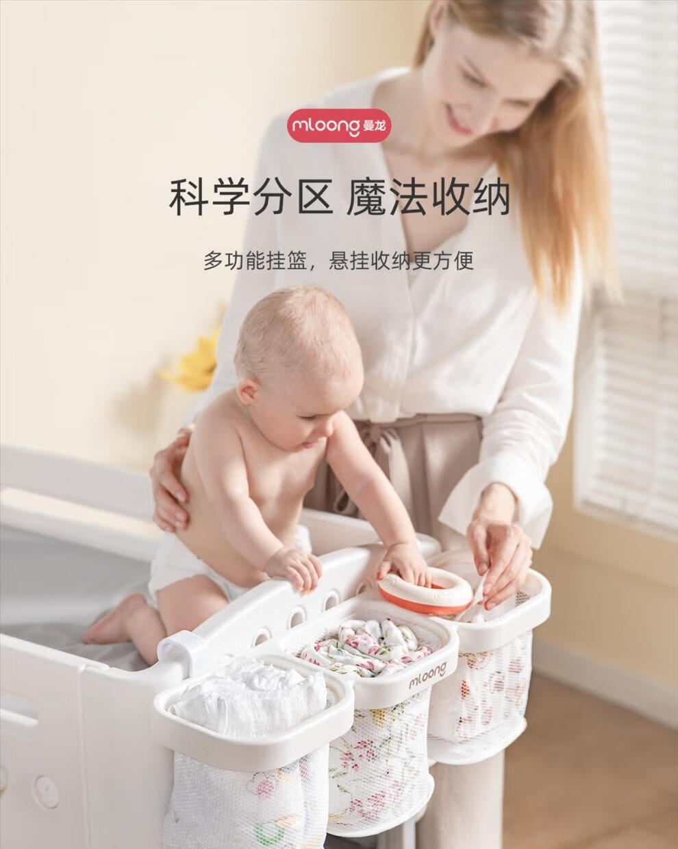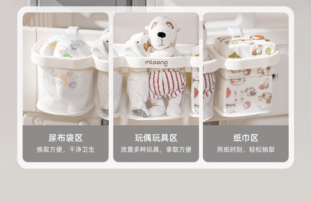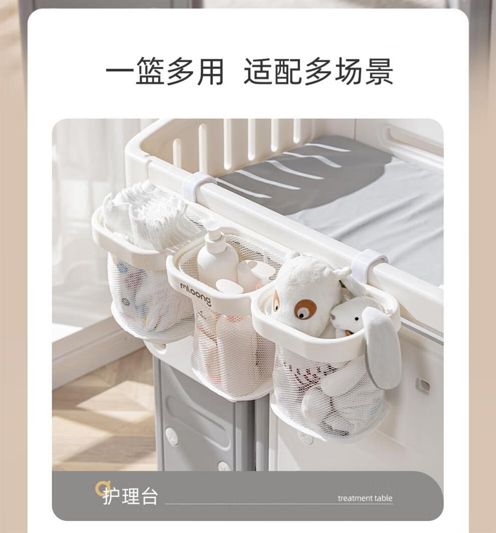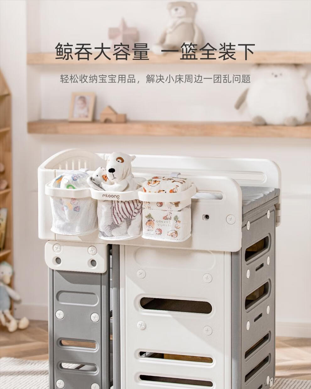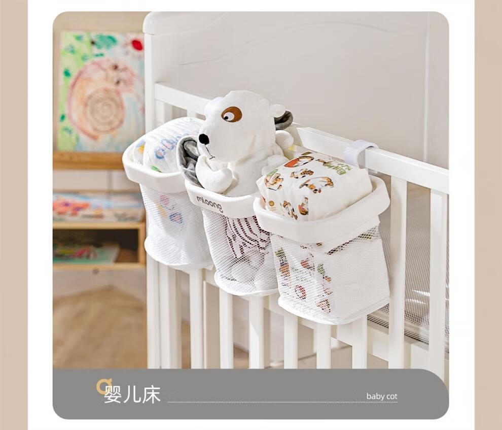 RSRDDY bedside hanging basket baby bedside diaper storage box bed rail storage bag crib hanging Manlong hanging basket - white
