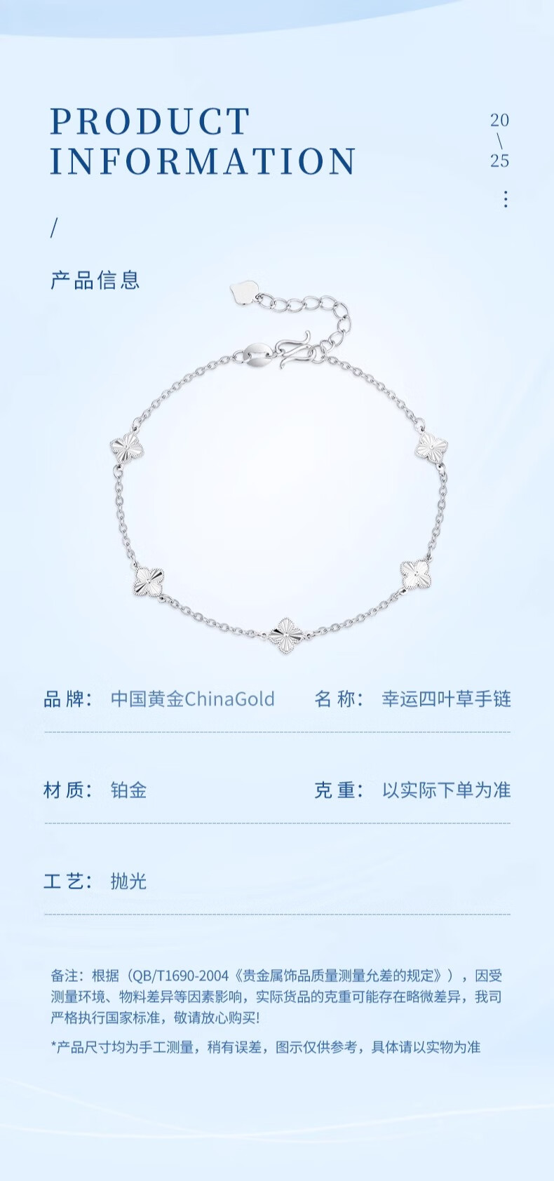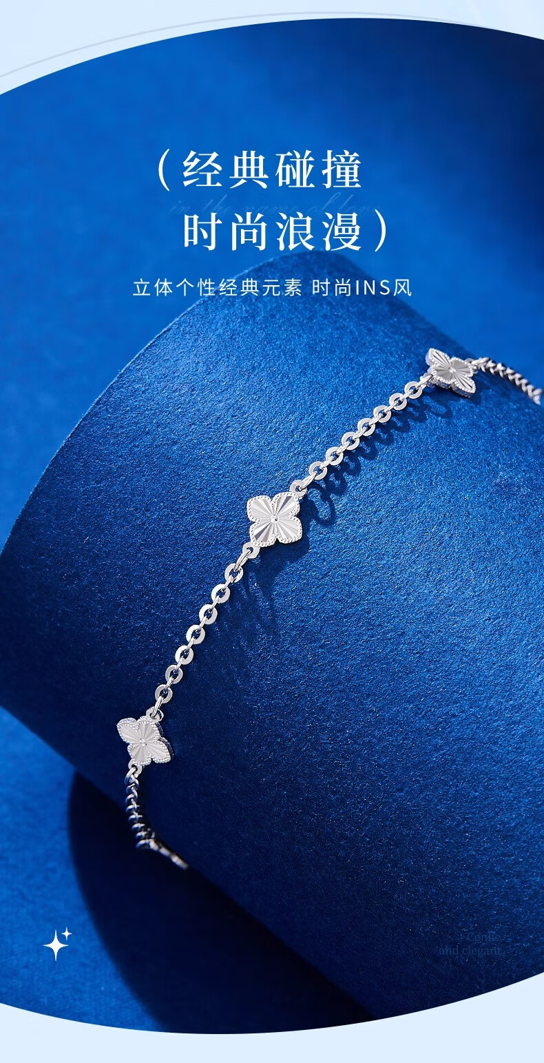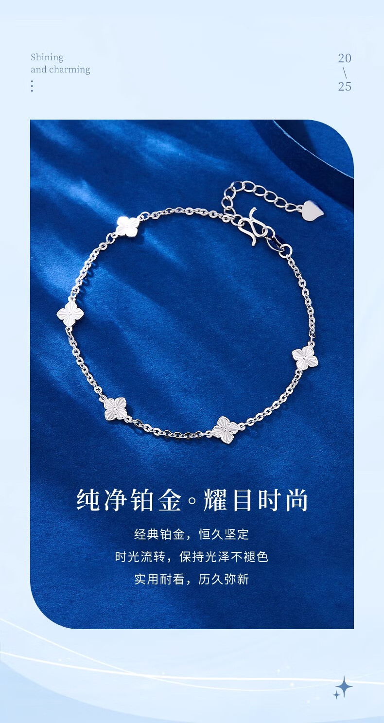 China Gold (CHINA GOLD) pt950 platinum bracelet for women, platinum lucky four-leaf clover bracelet, Valentine's Day birthday gift for girlfriend and wife, platinum lucky four-leaf clover bracelet, about 3.3g, brand gift box