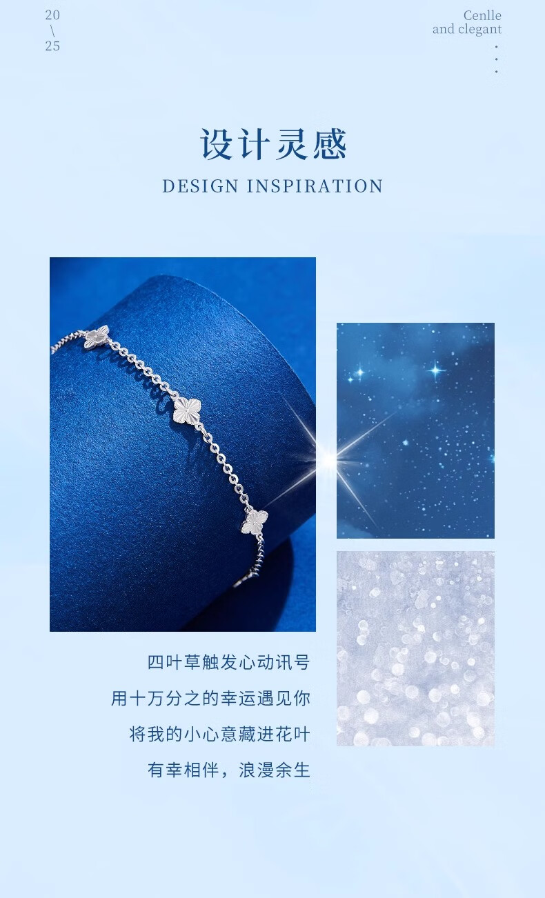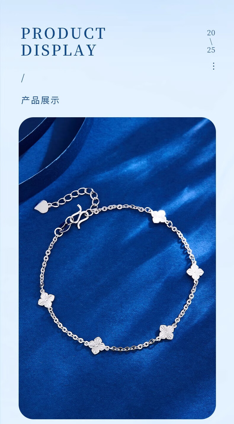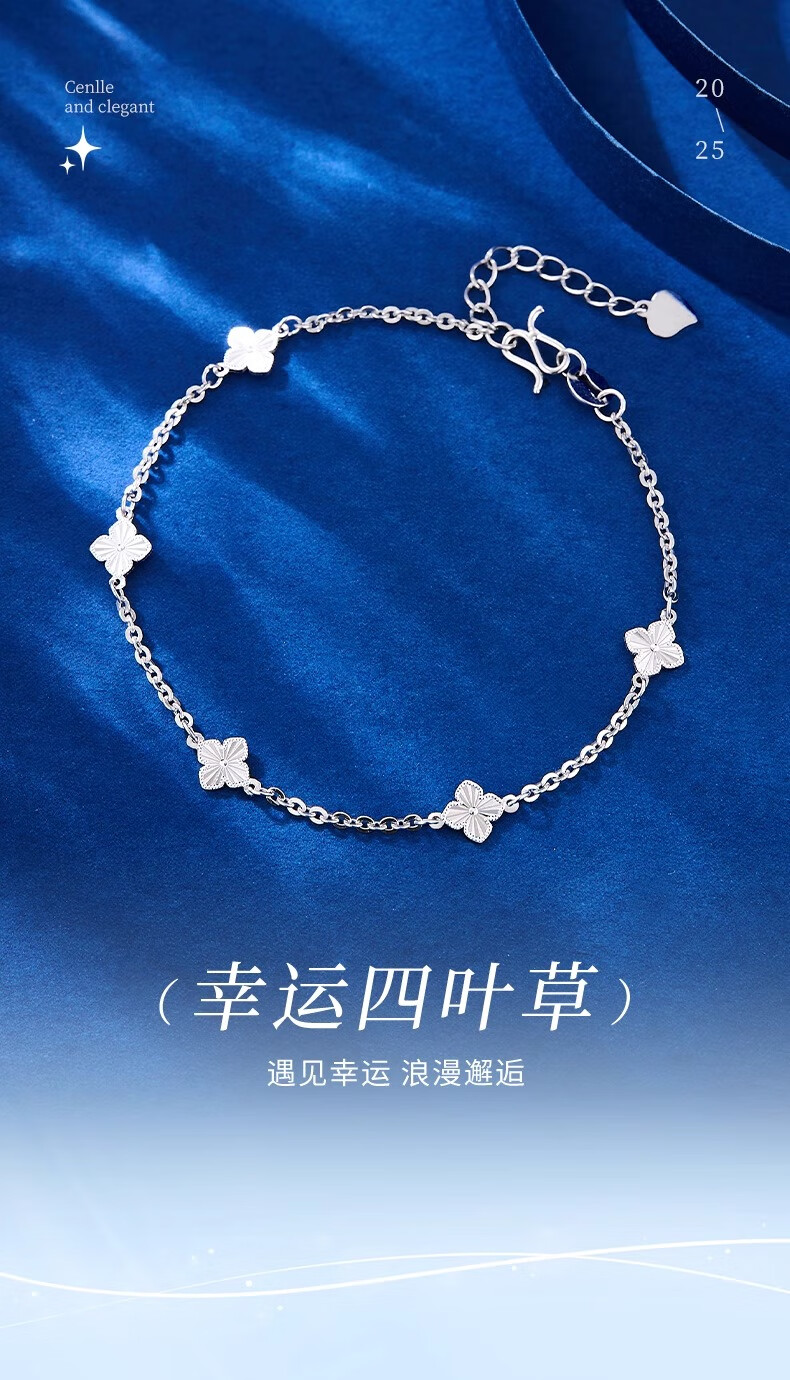 China Gold (CHINA GOLD) pt950 platinum bracelet for women, platinum lucky four-leaf clover bracelet, Valentine's Day birthday gift for girlfriend and wife, platinum lucky four-leaf clover bracelet, about 3.3g, brand gift box