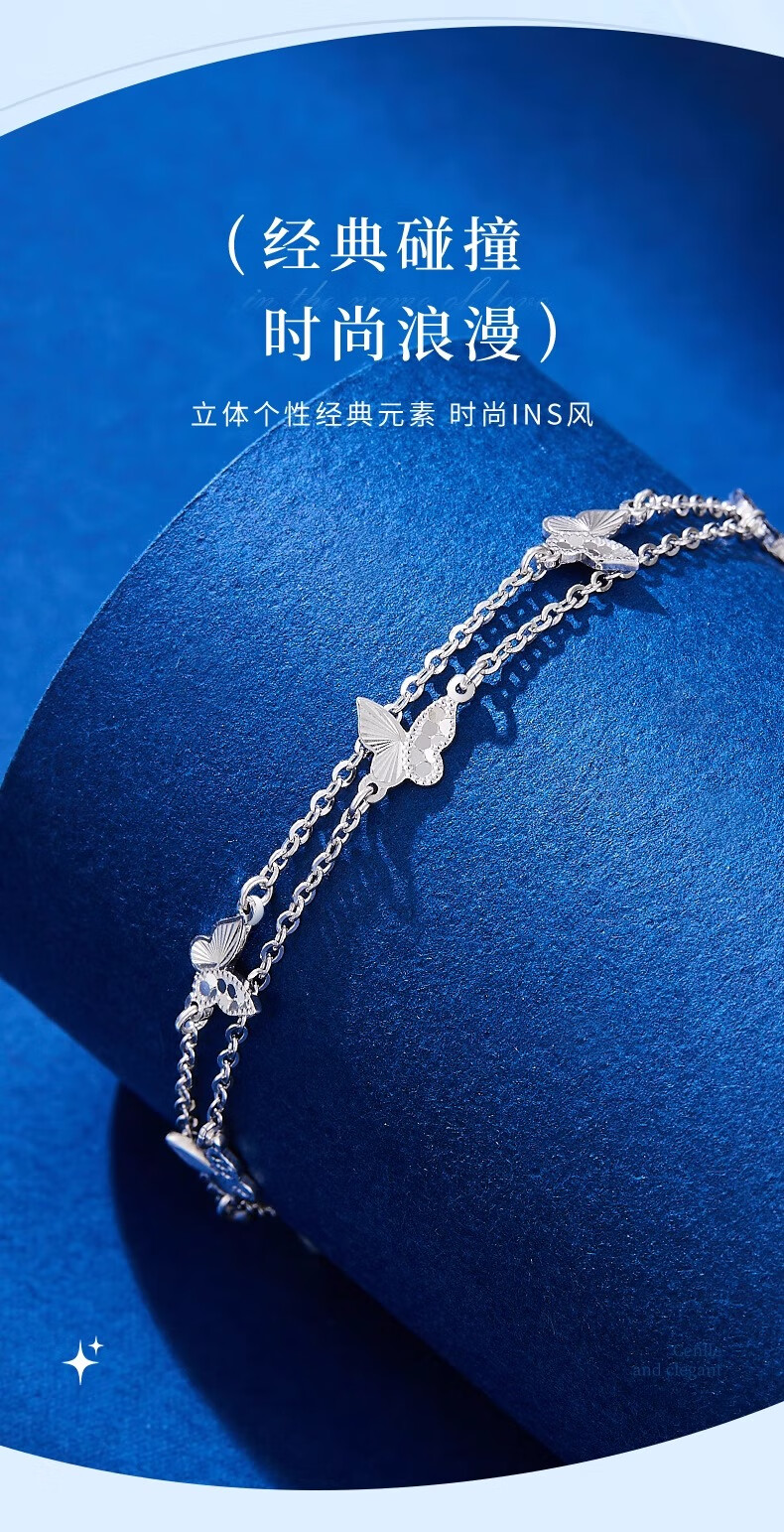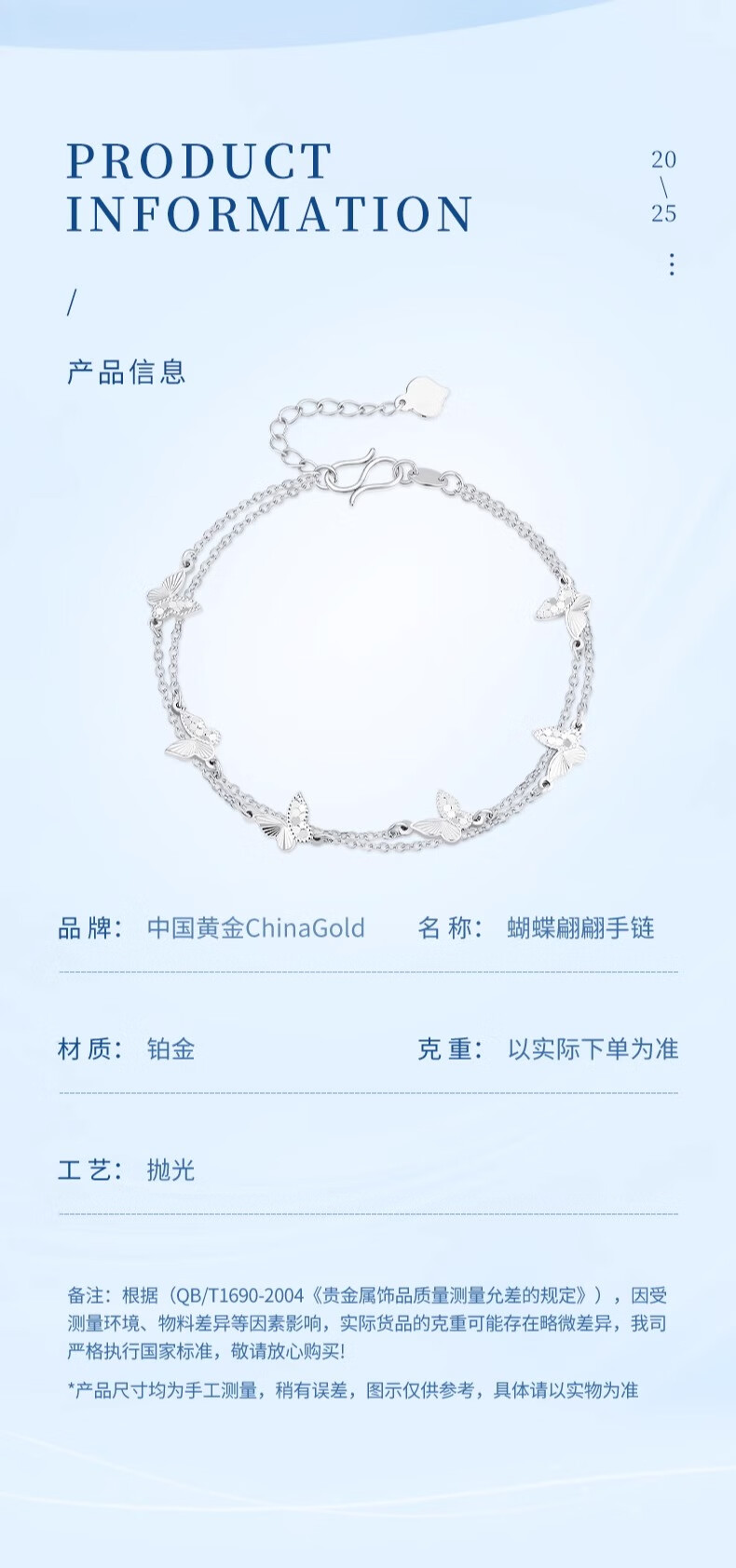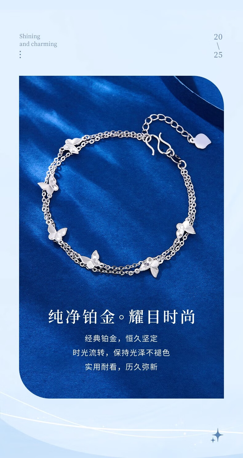 China Gold (CHINA GOLD) pt950 platinum bracelet for women, platinum butterfly bracelet, light luxury Valentine's Day birthday gift for girlfriend and wife, platinum butterfly bracelet, about 5.3g, brand gift box