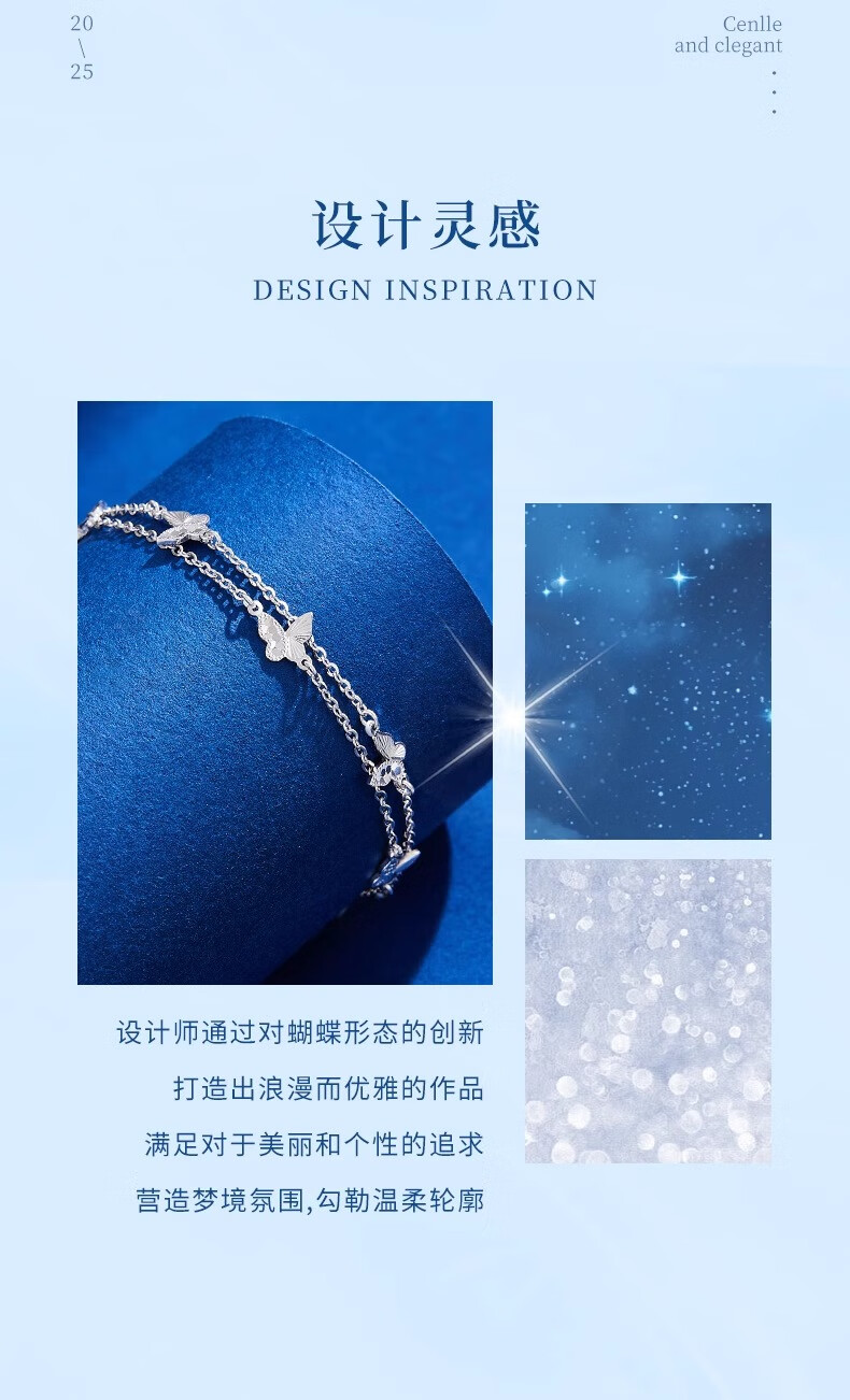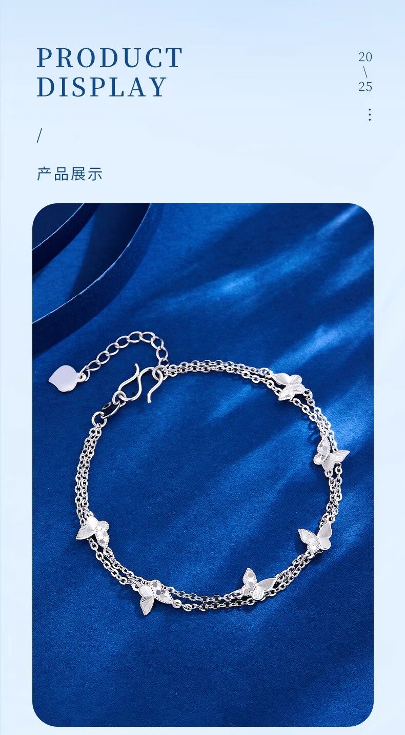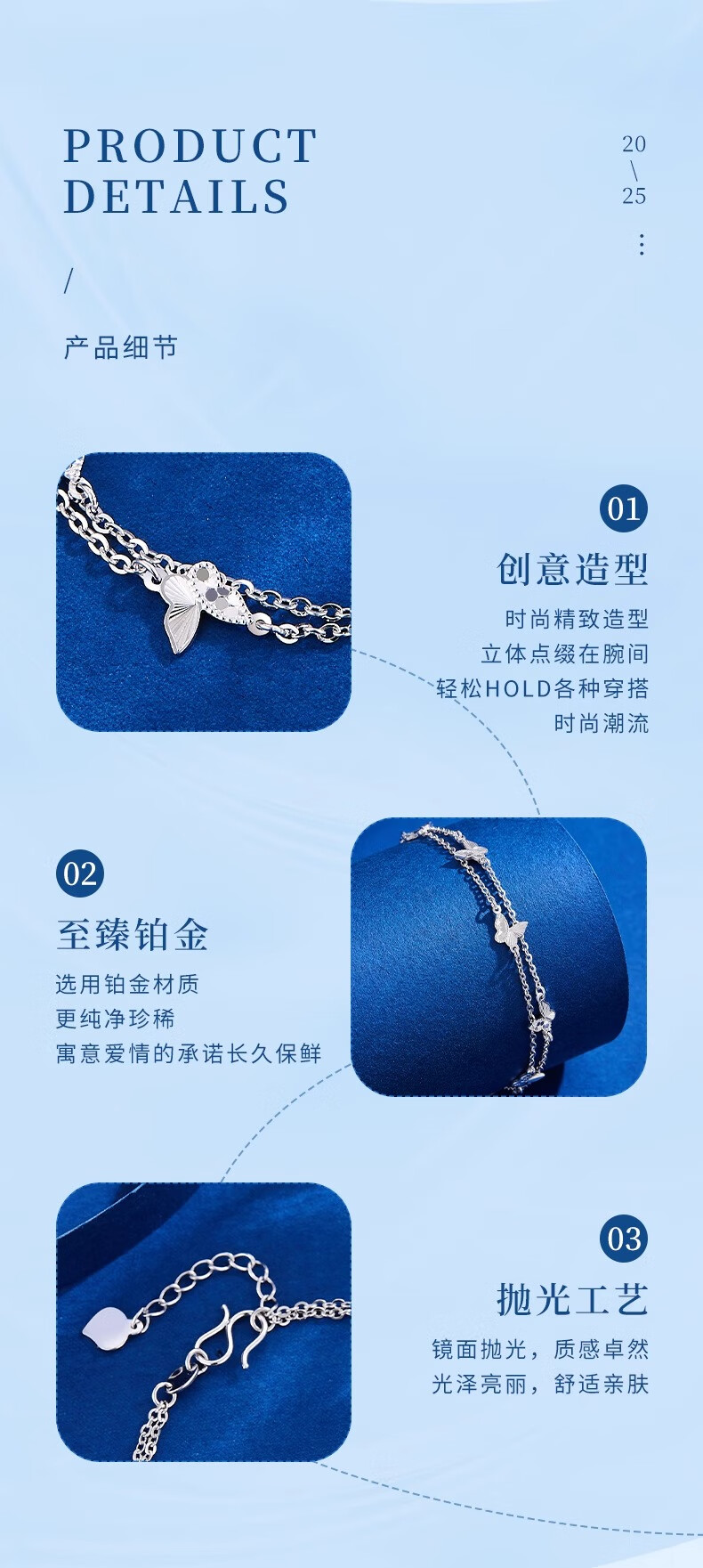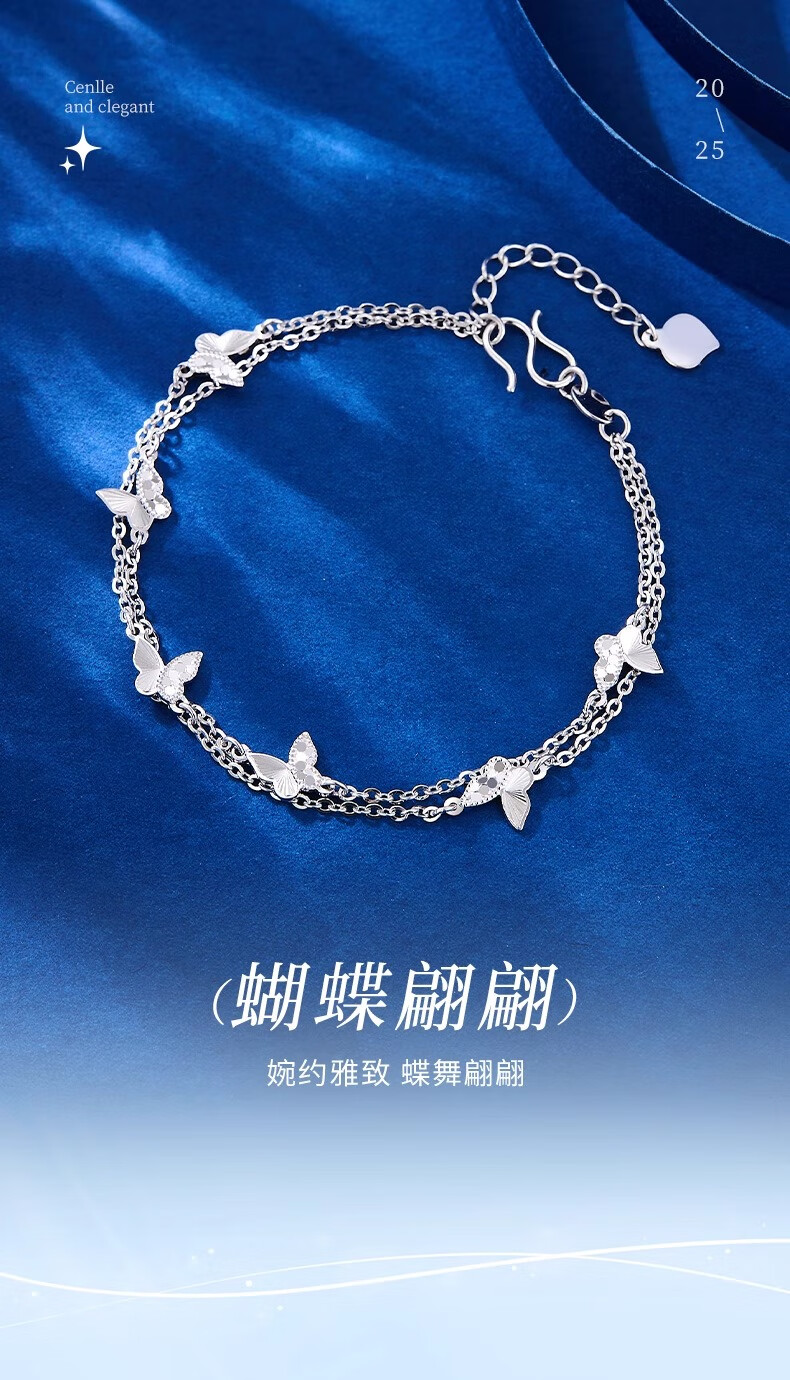 China Gold (CHINA GOLD) pt950 platinum bracelet for women, platinum butterfly bracelet, light luxury Valentine's Day birthday gift for girlfriend and wife, platinum butterfly bracelet, about 5.3g, brand gift box