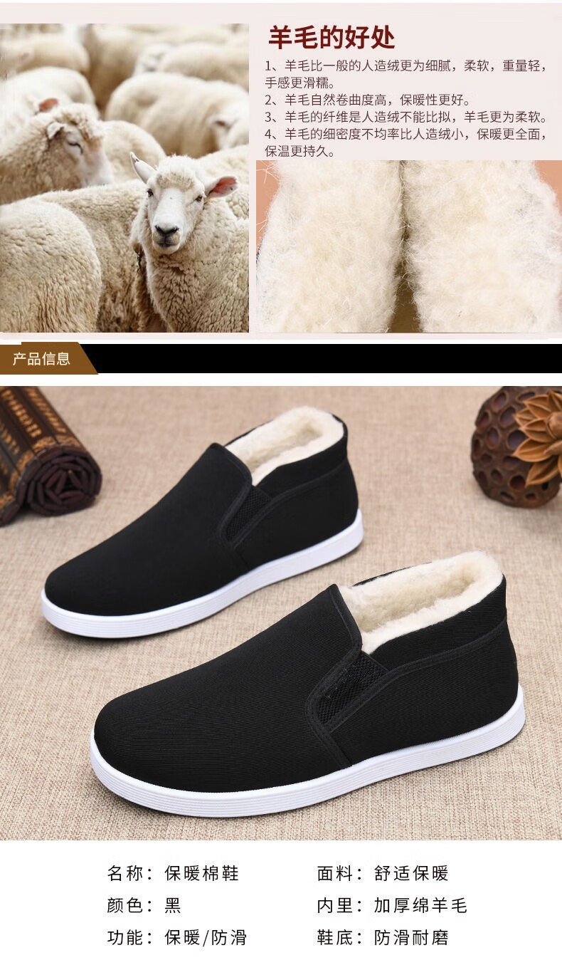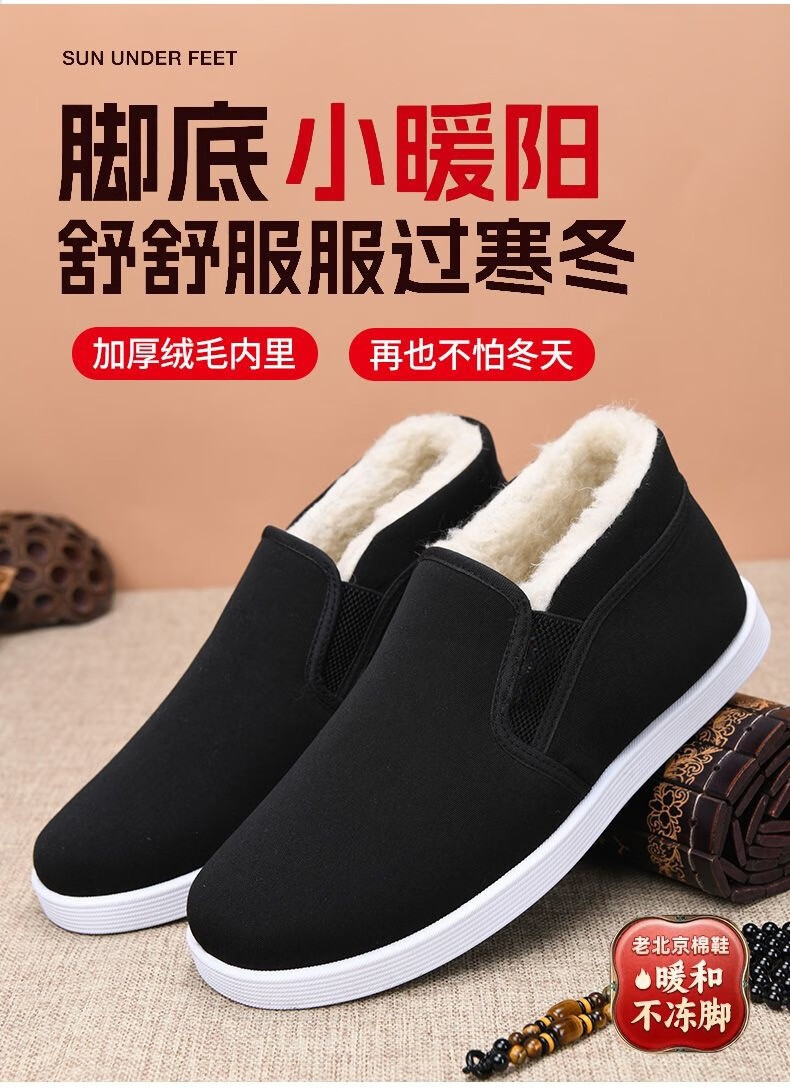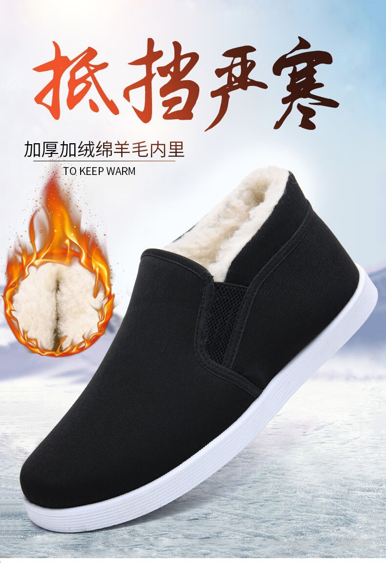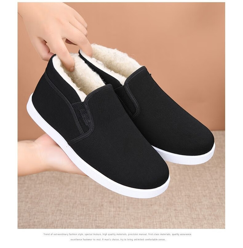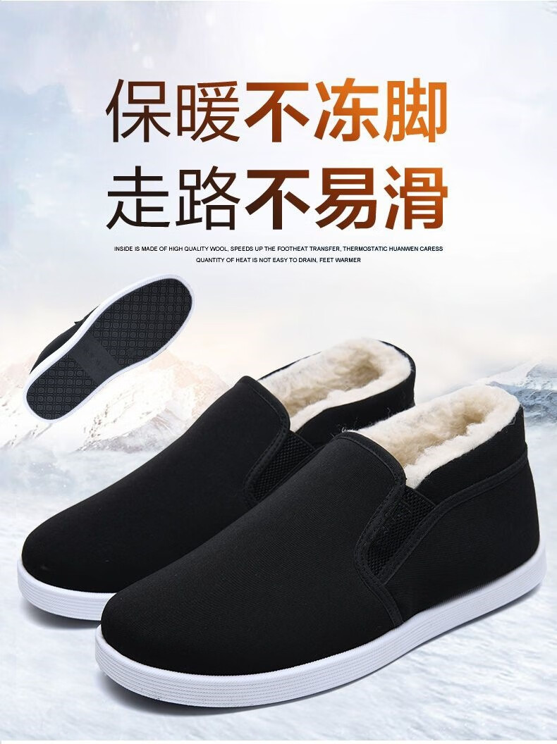 Old Beijing cotton shoes, winter cloth shoes for men, thickened velvet, high-top, warm, anti-slip, work dad shoes for middle-aged and elderly people, black wool high-top cotton shoes, Northeast minus 40 degree cotton shoes 43