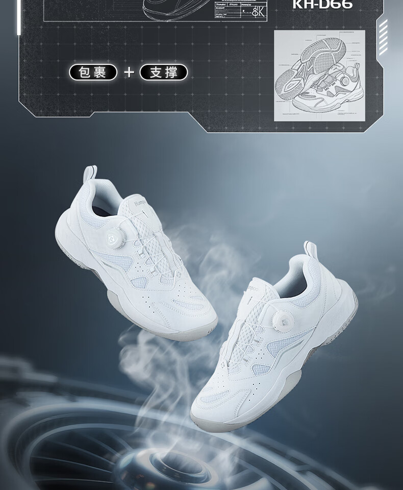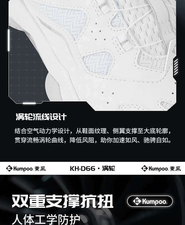 KUMPOO 2025 new badminton shoes for men and women D66 breathable, cushioning, anti-twist, anti-slip, light EVE sneakers, KUMPOO white/silver 39