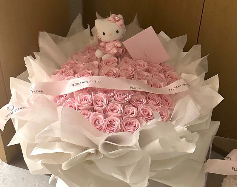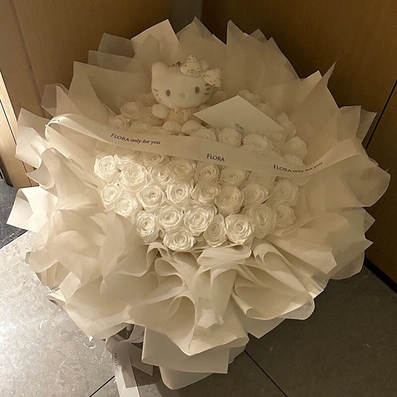 Everlasting flower rose bouquet doll hug bucket for girlfriend and best friend simulated soap flower birthday gift Sweet core cloud 33 hug bucket + balloons