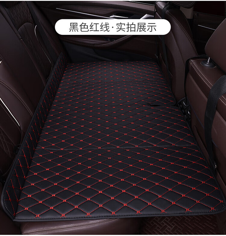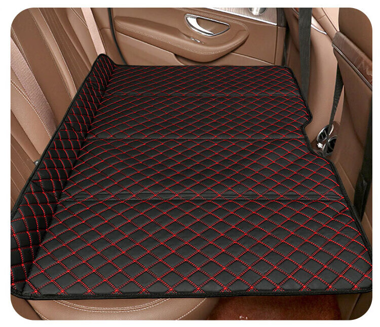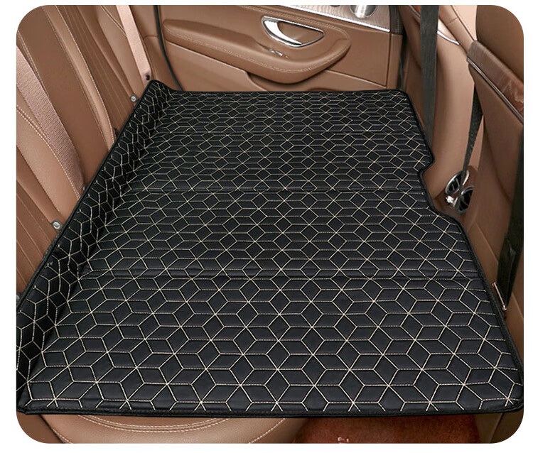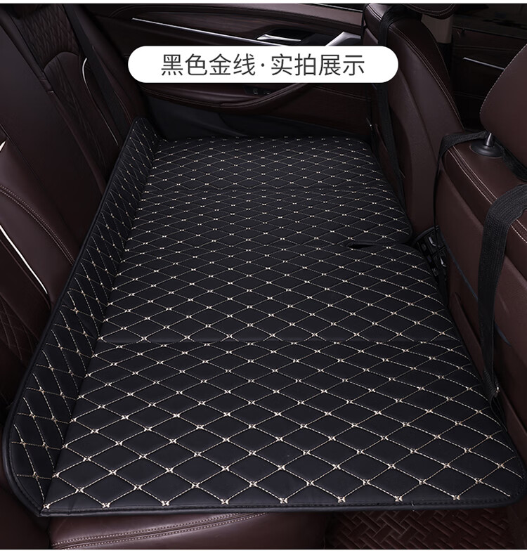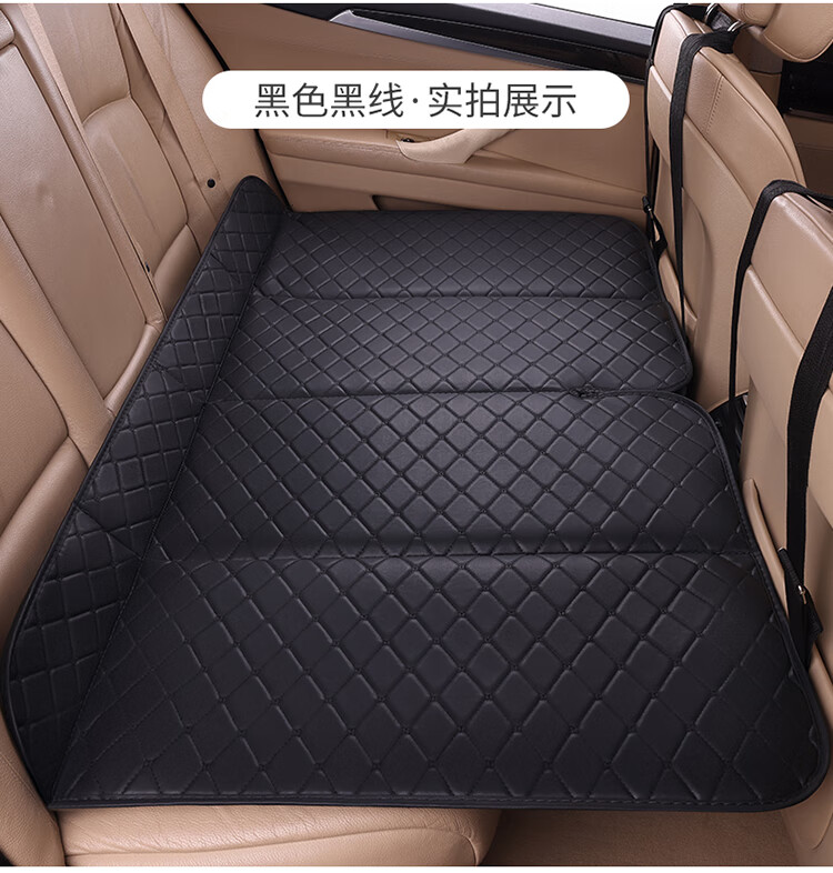 Car rear sleeping mat, foldable rear seat children's car travel mattress, SUV car universal sleeping tool, thickened + extra large, black black line, inflatable, foldable 90*140cm