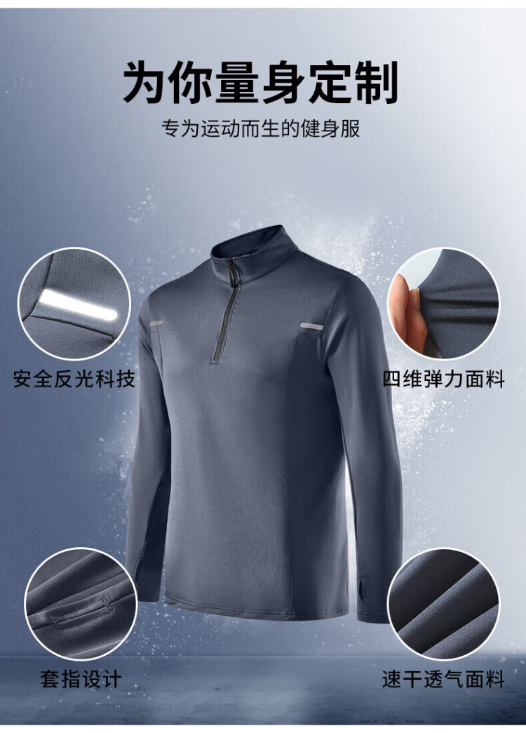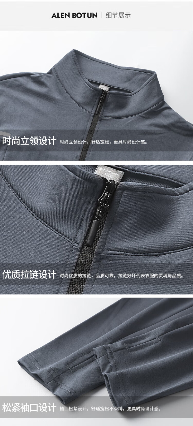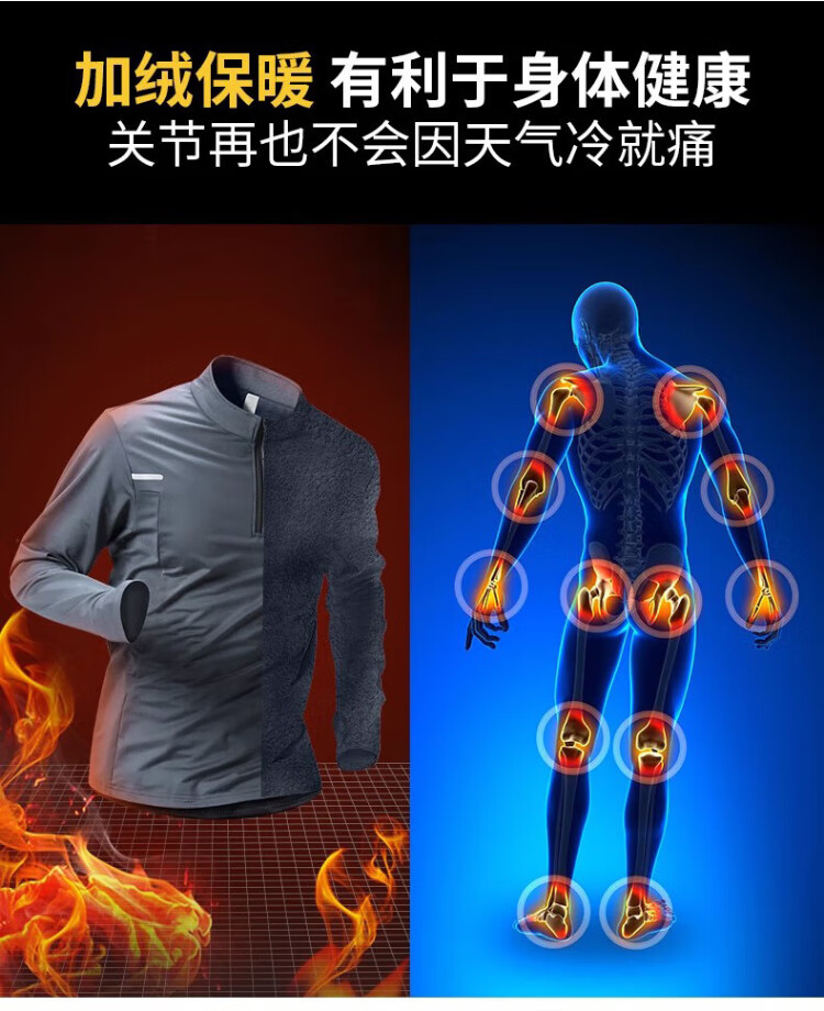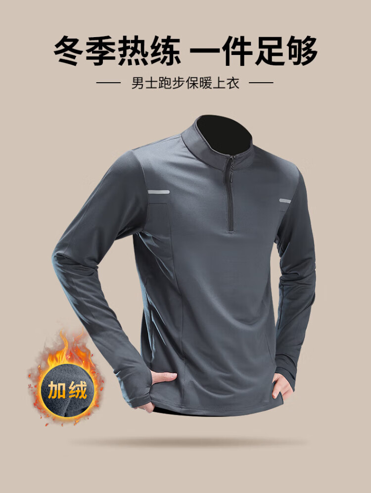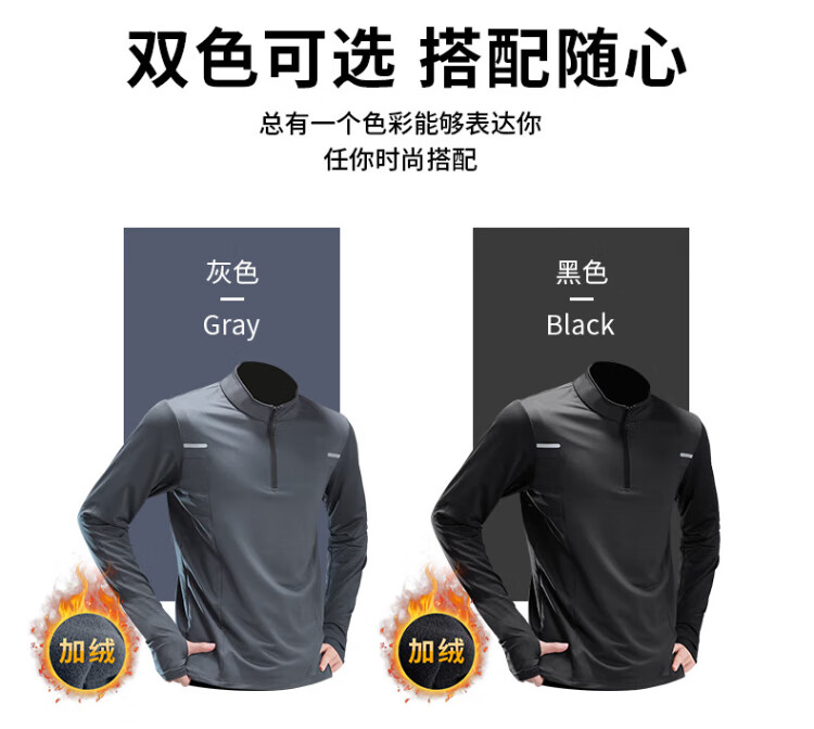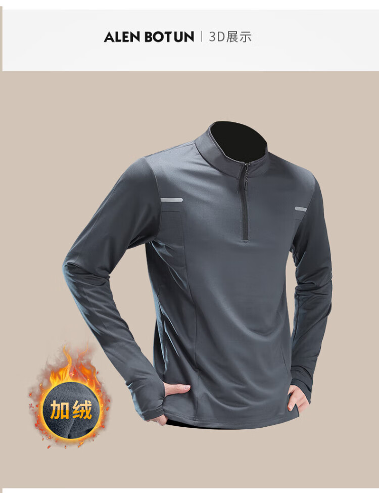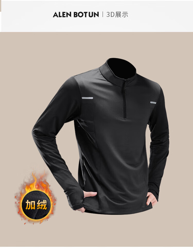 Alen Botun velvet sports long-sleeved men's quick-drying warm t-shirt half-zip training suit winter running training fitness top black velvet warm XL 140-160Jin Jin equals 0.5 kg