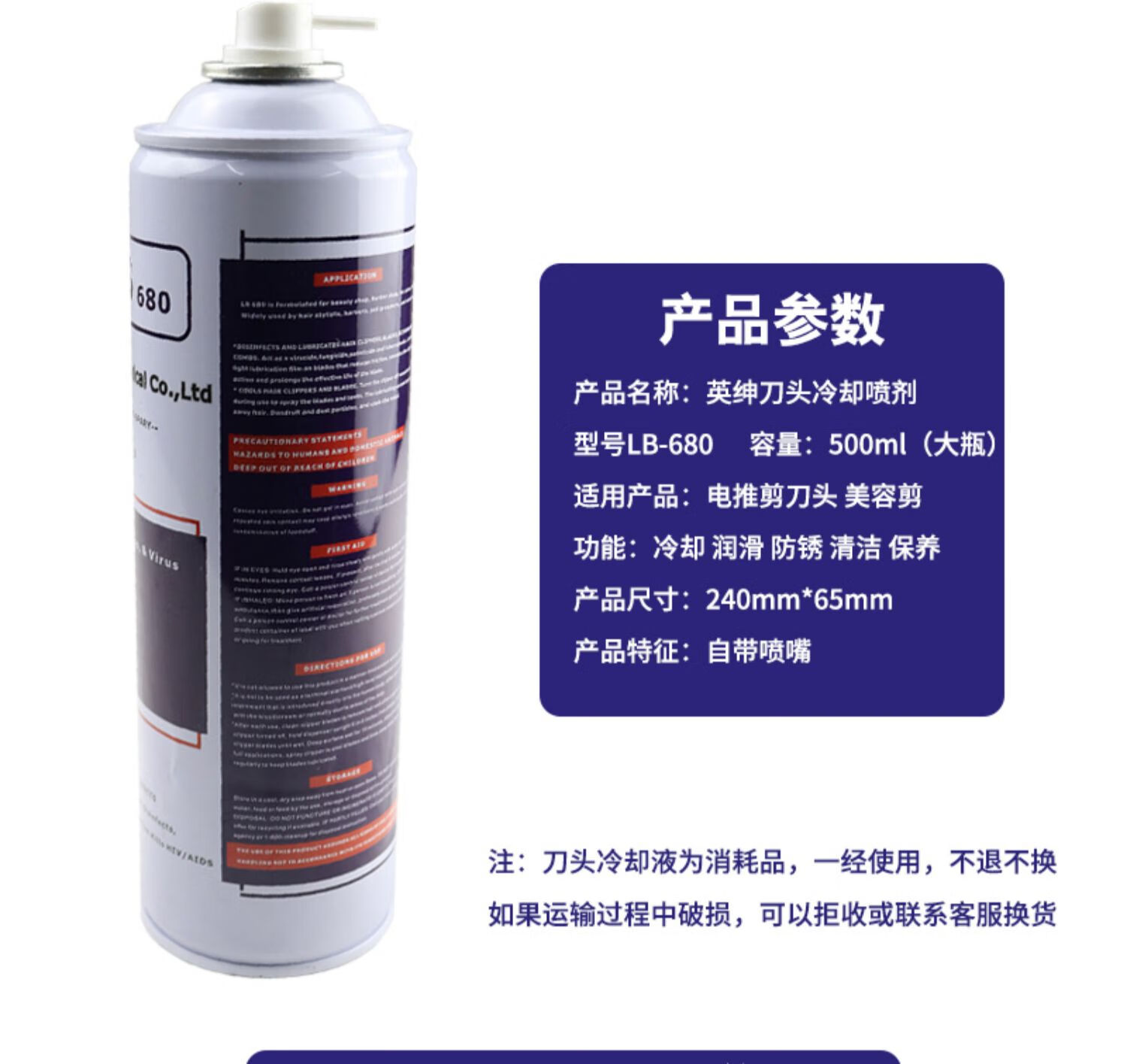 Yingshen cutter head coolant seven-in-one cooling spray cleaning and maintenance anti-rust lubrication pet clipper head care solution