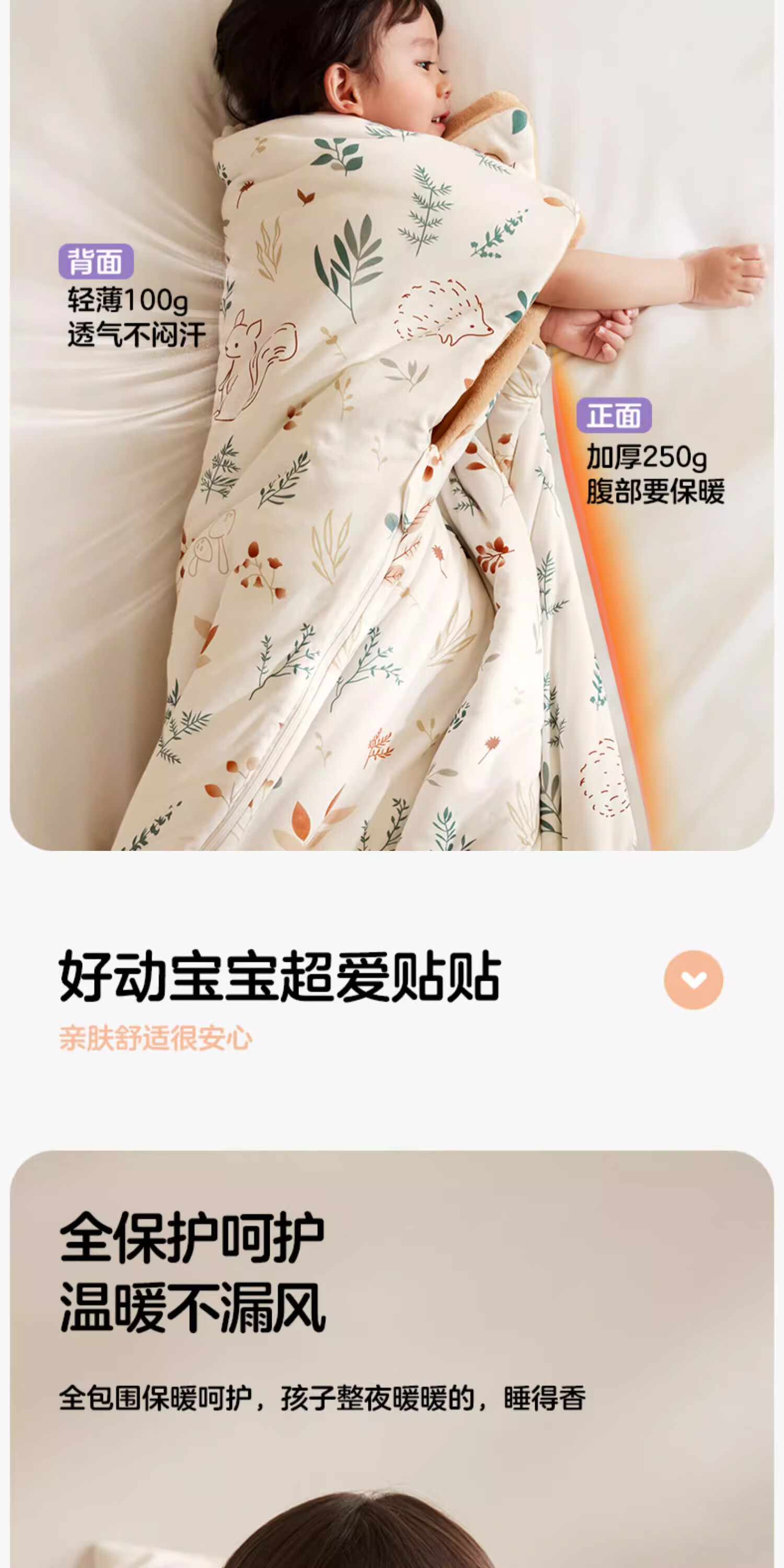 KUB children's anti-kick quilt, constant temperature sleeping quilt, autumn and winter style baby quilt, large children's sleeping bag, wool hug quilt, garden party, suitable room temperature 12-22, 70*130cm (recommended for 0-6 years old), about 1.4kg