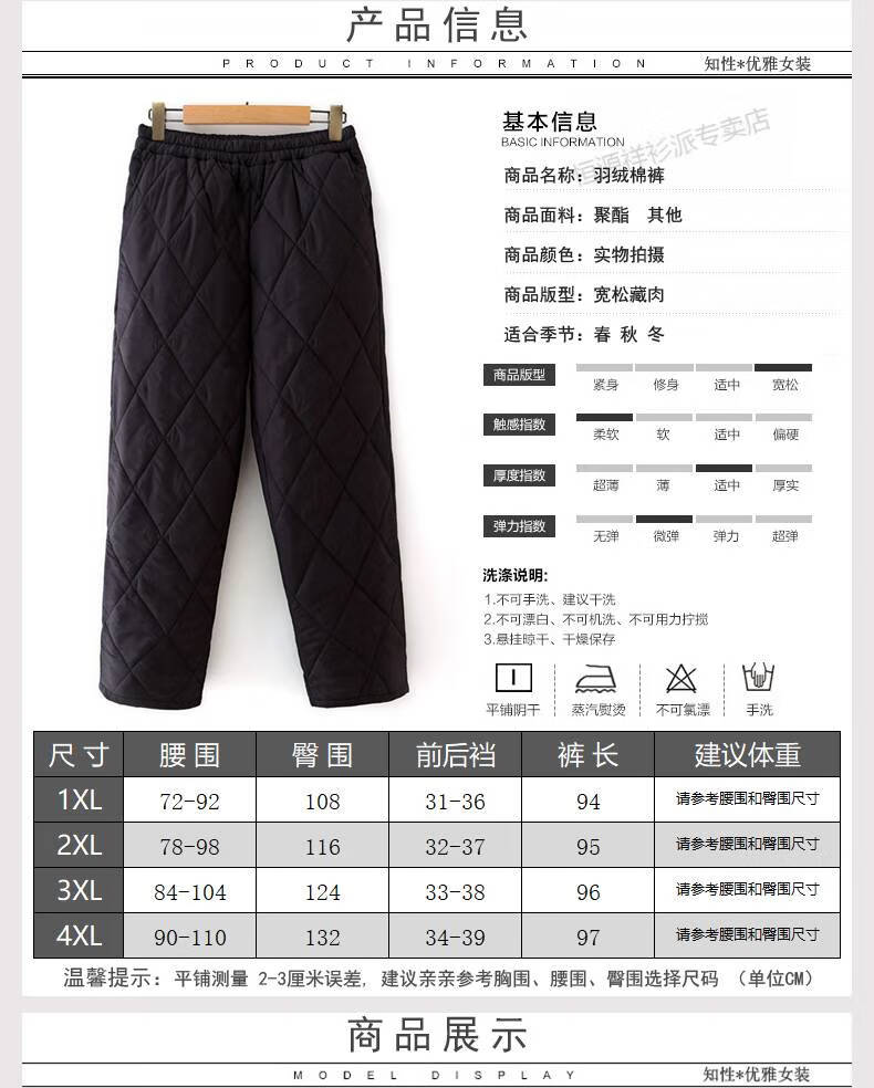Hengyuanxiang middle-aged and elderly mothers autumn and winter down pants for women 200Jin Jin is equal to 0.5kg large size loose fashion elastic waist thickened warm cotton pants black XL 110-140Jin Jin is equal to 0.5kg about