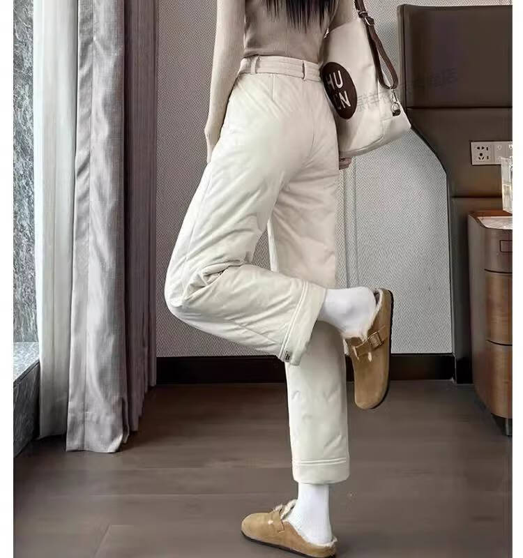 Hengyuanxiang waterproof and cold-proof ski down pants for women's outer wear 2026 new winter cotton pants thickened small Northeast windproof pants Ancora red high quality M (recommended 85-Jin Jin equals 0.5 kg)