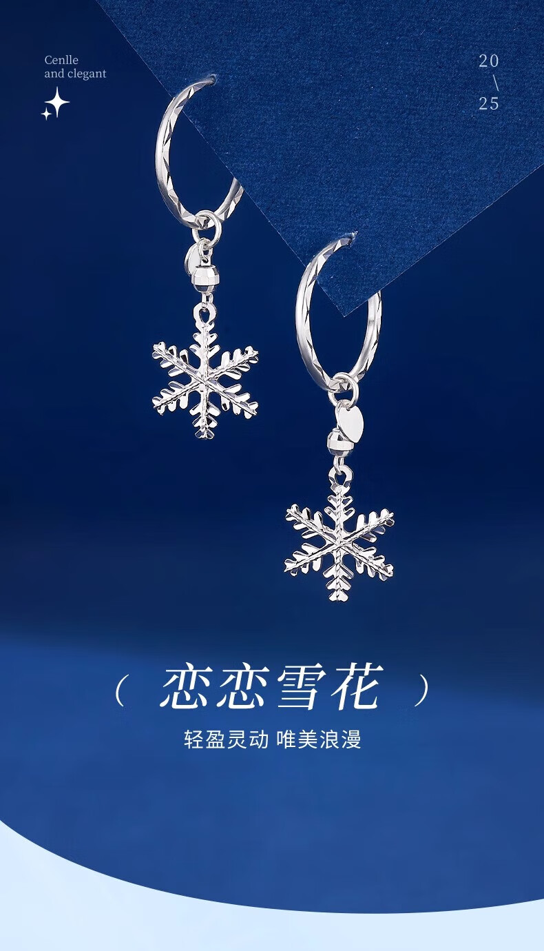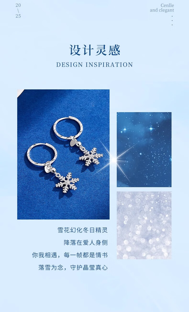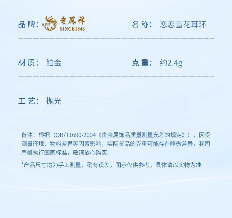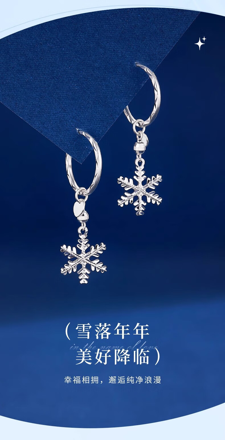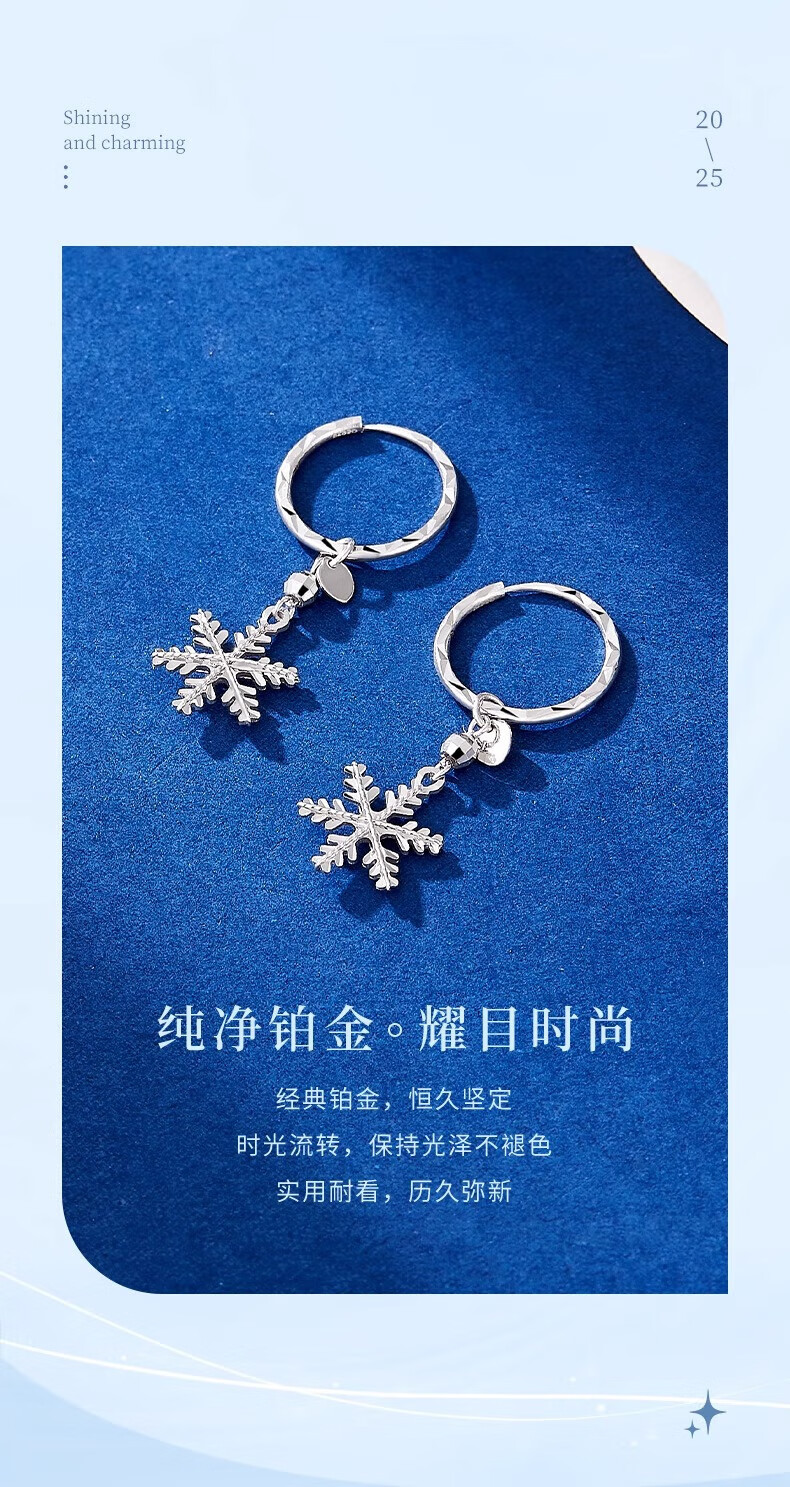 Lao Fengxiang PT950 platinum snowflake bouncy bead earrings for women platinum ears Mid-Autumn Festival birthday gift for girlfriend and wife PT950 platinum snowflake bouncy bead earrings about 2.7g