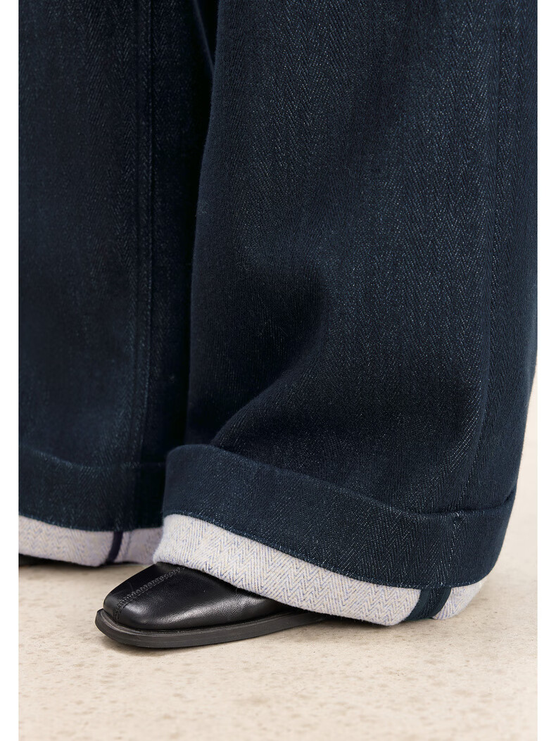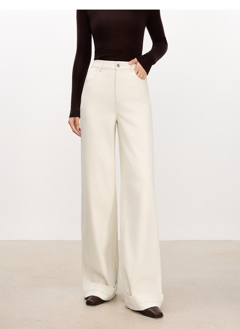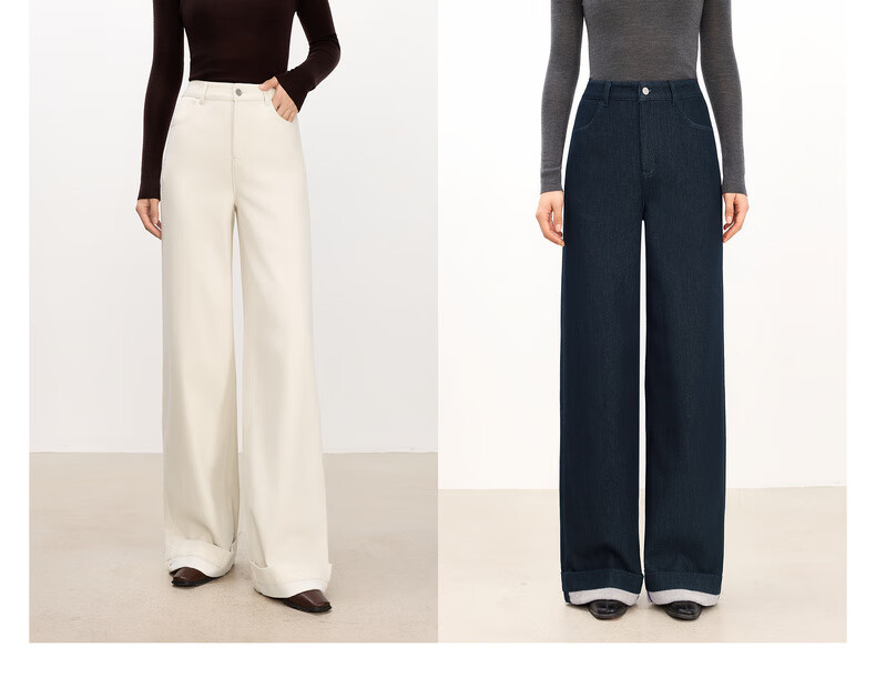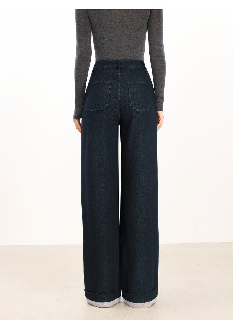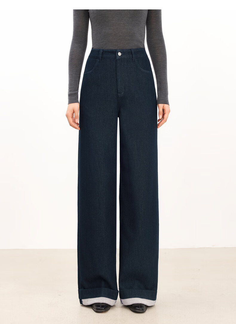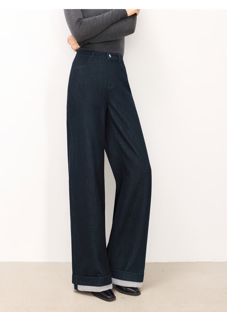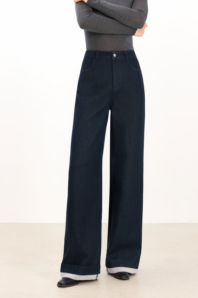 Eveli (eifini) Jiang Xin endorses Eveli herringbone velvet jeans straight wide-leg floor-length pants 2025 winter new style dark navy M 105-115 Jin Jin equals 0.5 kg waist circumference 70