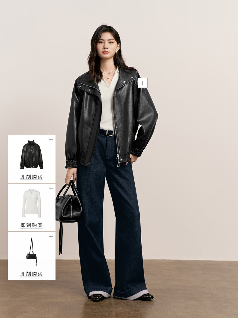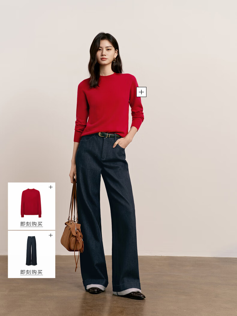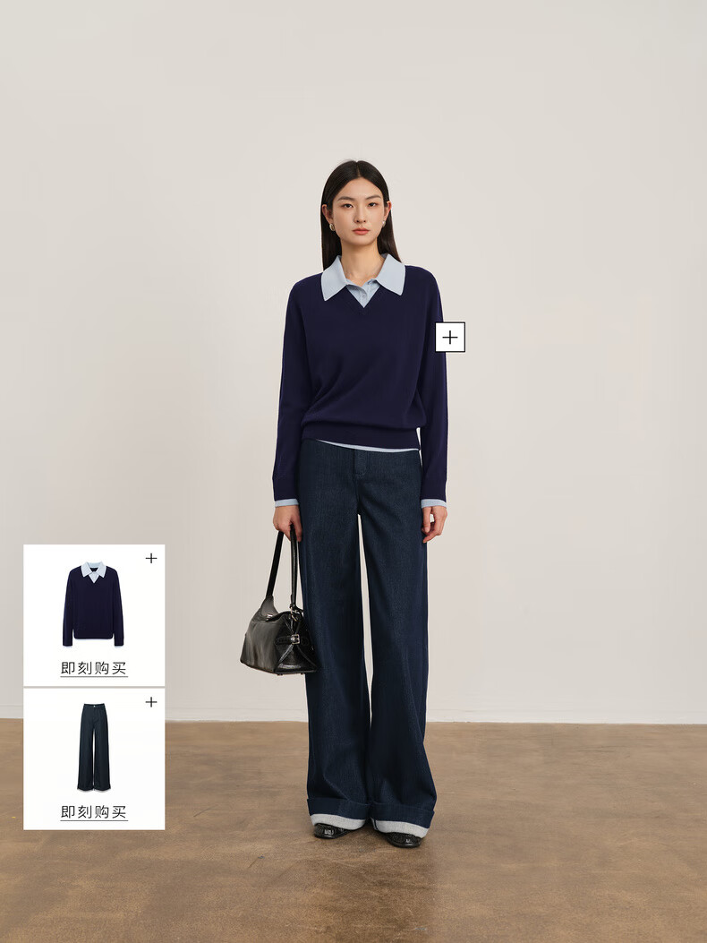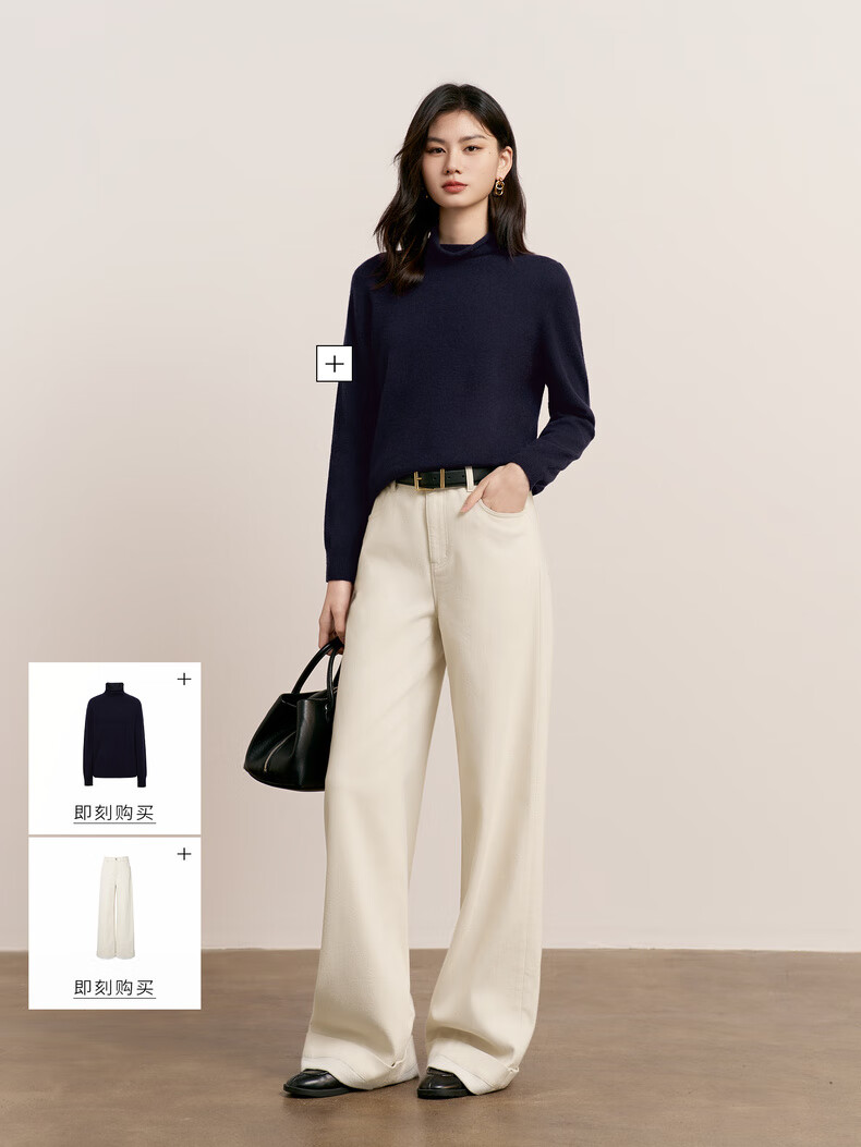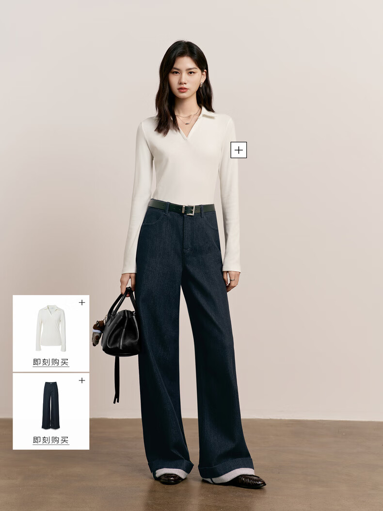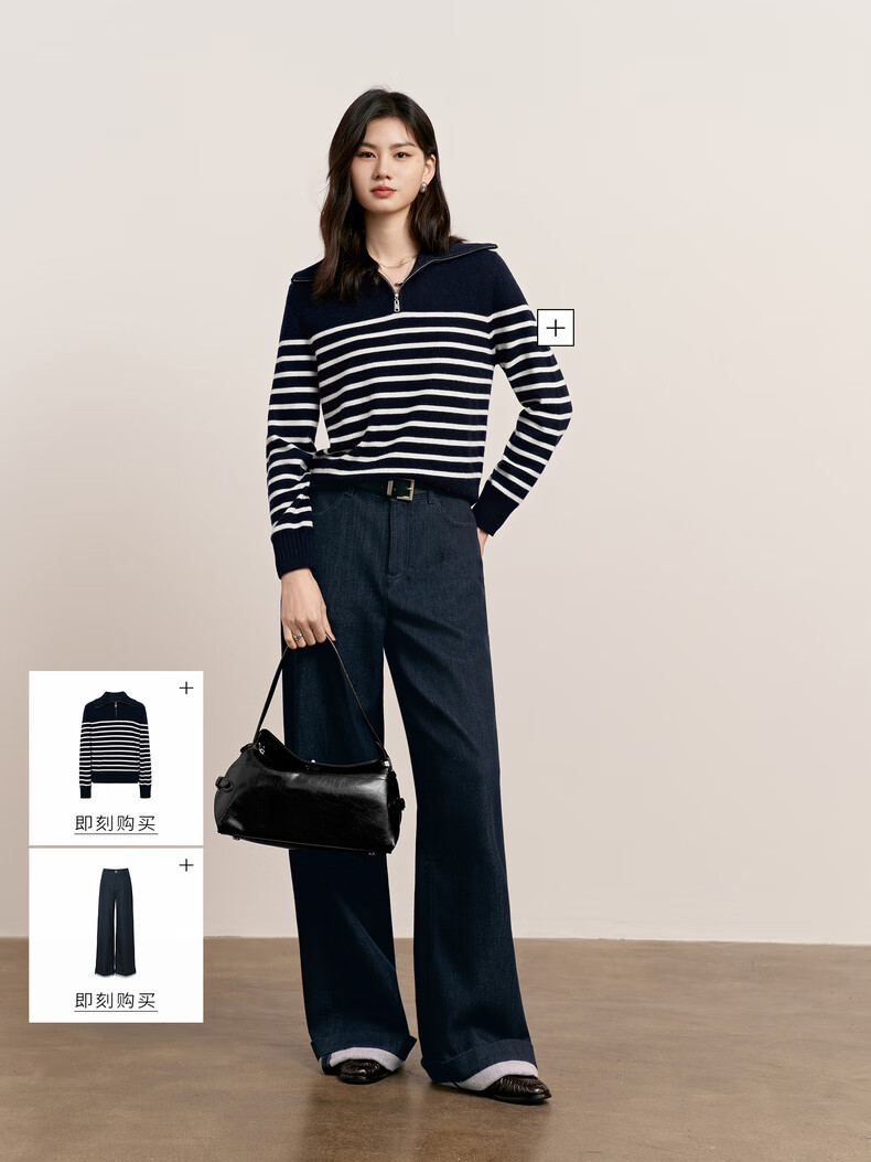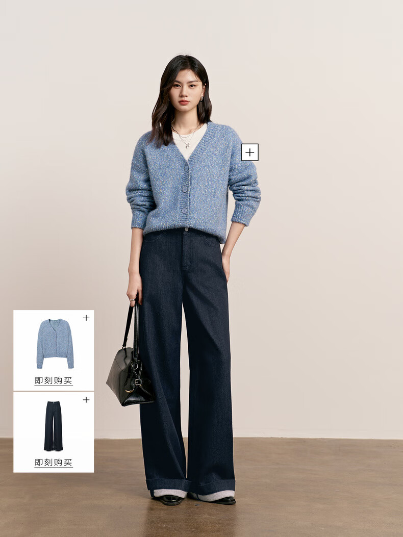 Eveli (eifini) Jiang Xin endorses Eveli herringbone velvet jeans straight wide-leg floor-length pants 2025 winter new style dark navy M 105-115 Jin Jin equals 0.5 kg waist circumference 70