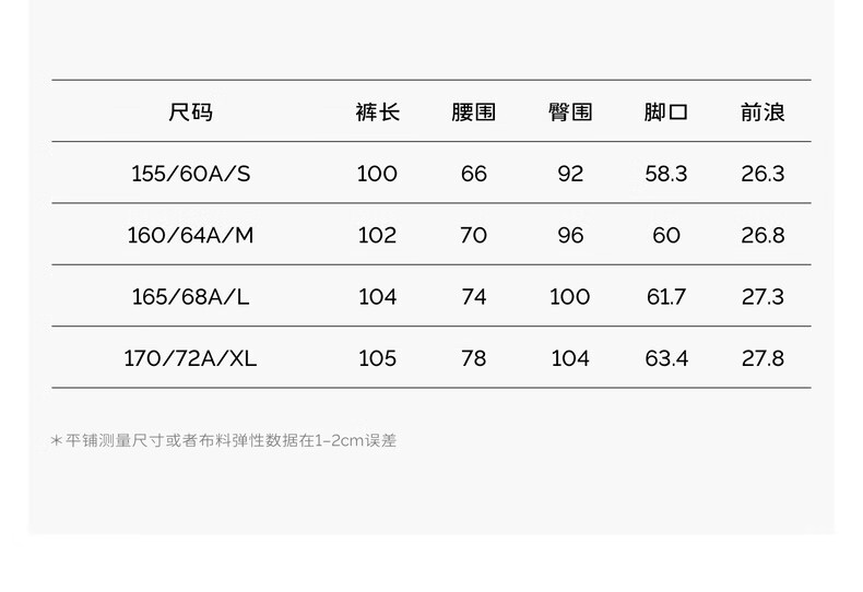 Outseam (cm) 99 cm 101.5 cm 104 cm 106.5 cm 109 cm