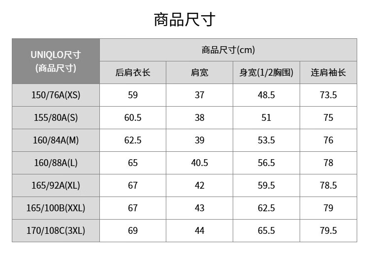 China (cm) 160-165/84-86 165-170 / 88-90 167-172 / 92-96 168-173 / 98-102 170-176 / 106-110