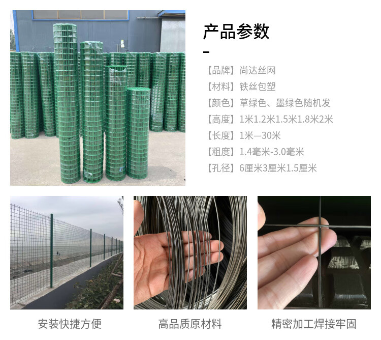 Plastic coated wire mesh, steel wire mesh fence net, guardrail net, anti-rat breeding net, fish pond orchard enclosure net, rust-proof, 1.5 meters high, 6 cm holes, 30 meters long, hardened version