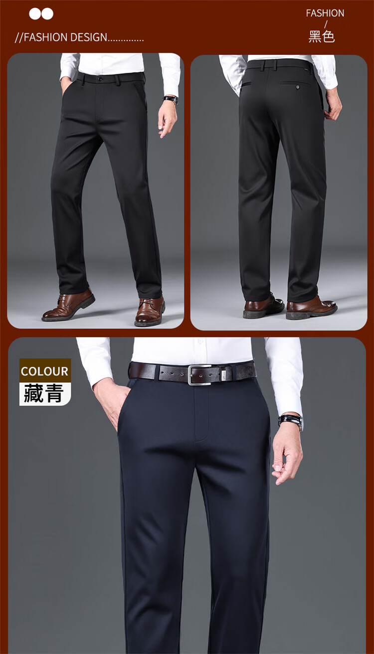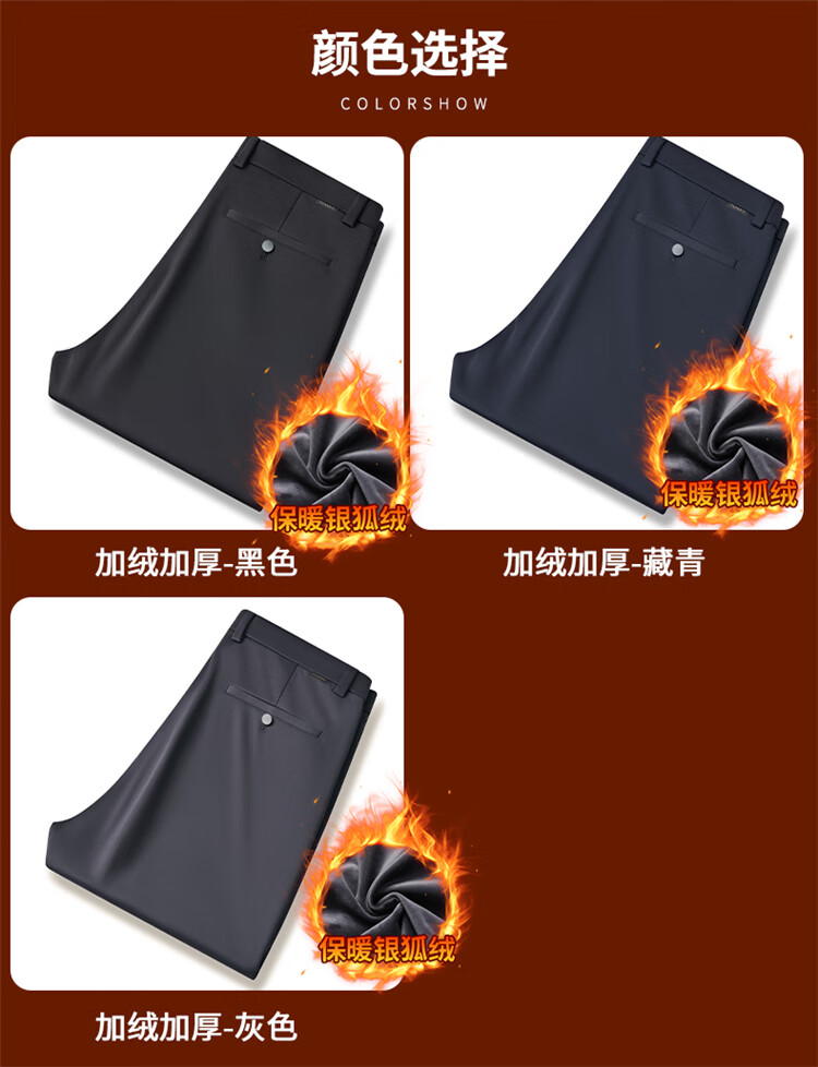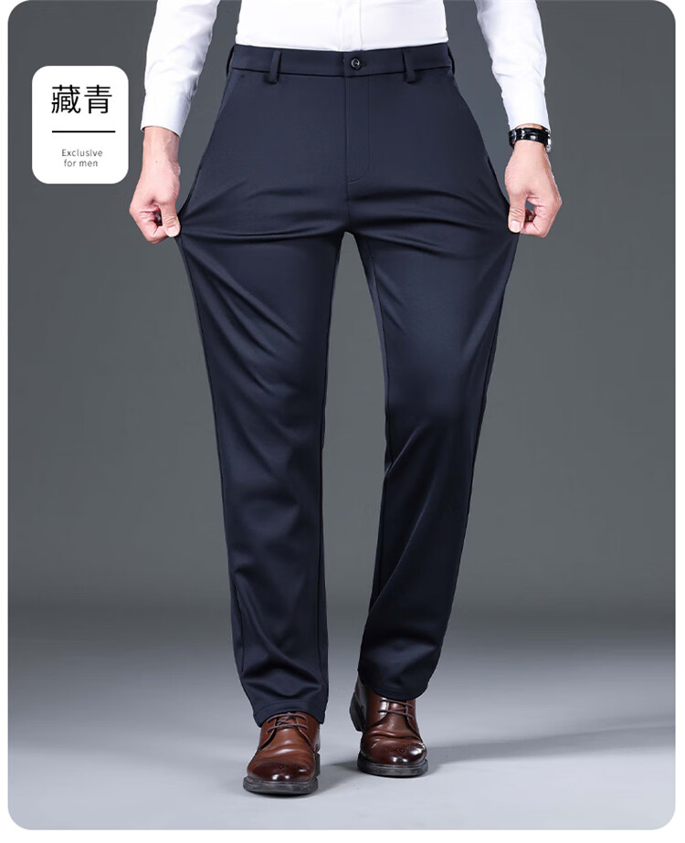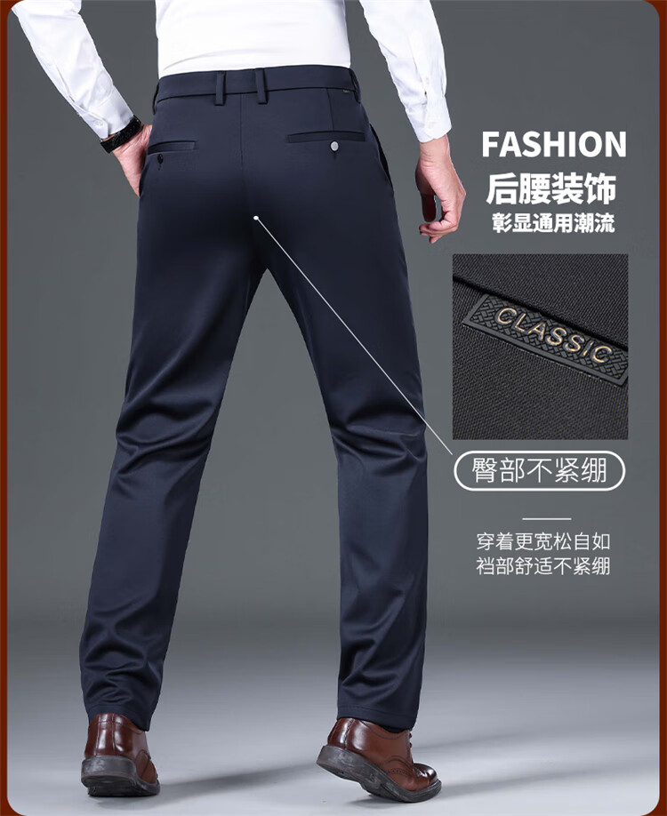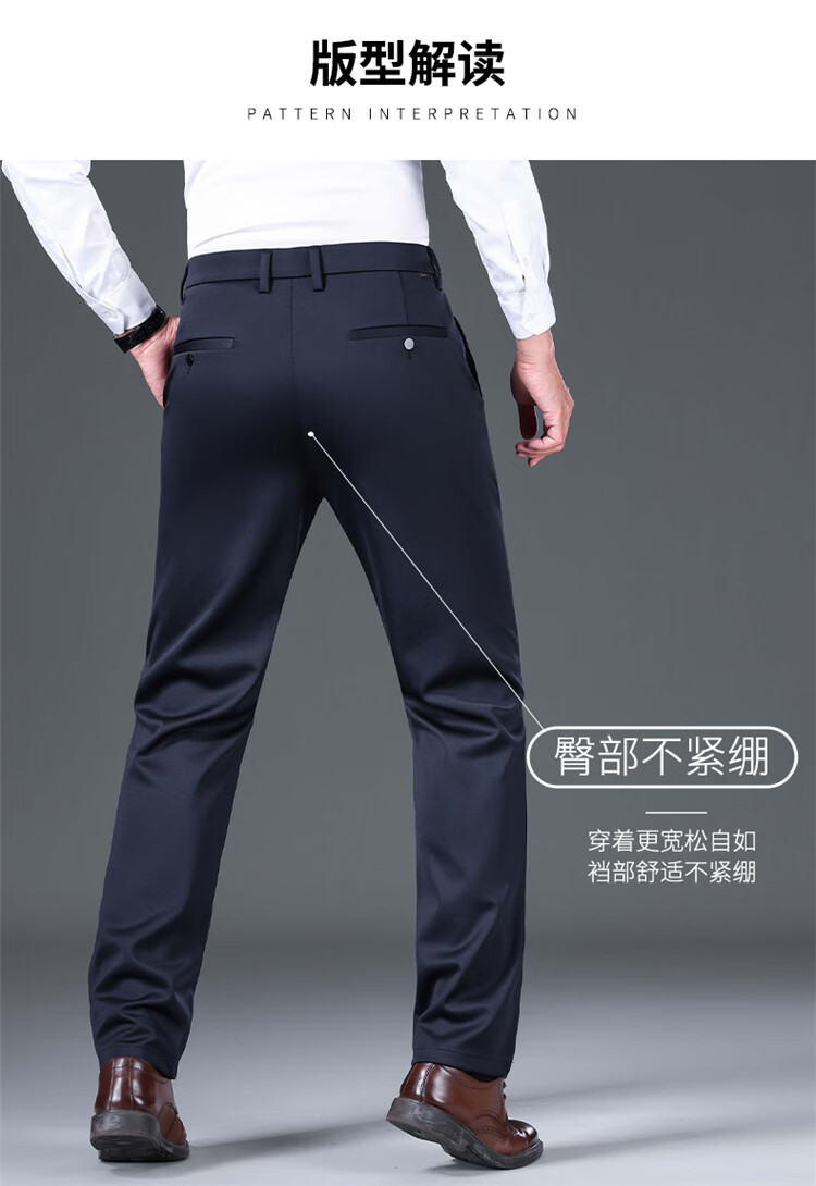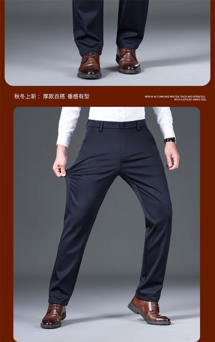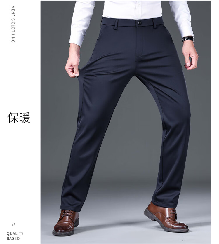 Goldlion men's thick warm business casual trousers autumn and winter velvet thickened non-iron middle-aged dad trousers Navy blue (plus velvet) thickened Navy blue (plus velvet) thickened 31