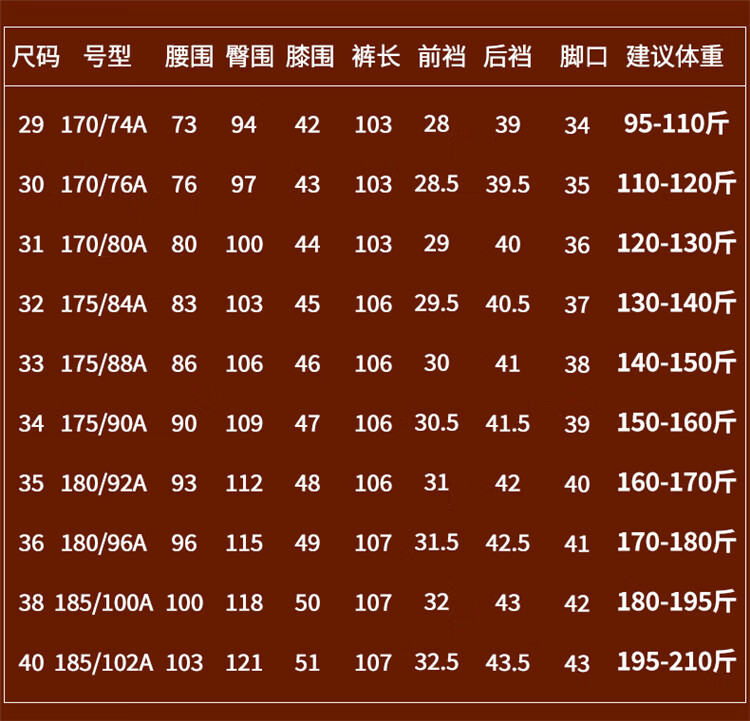 China (cm) 160-165/84-86 165-170 / 88-90 167-172 / 92-96 168-173 / 98-102 170-176 / 106-110