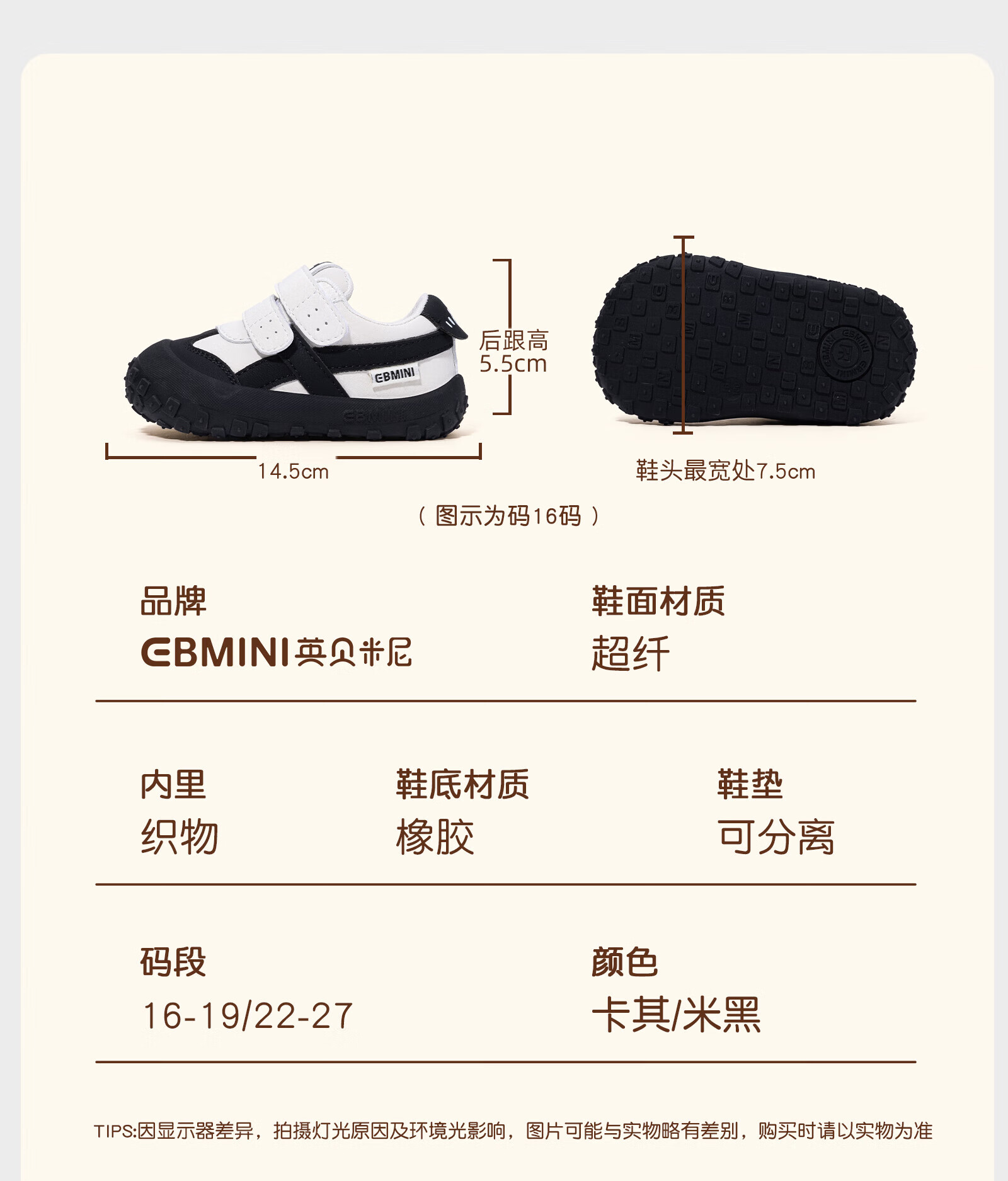 Inbemini Inbemini baby boy toddler shoes soft sole children's shoes autumn boys' casual sports shoes girls' sneakers butter brown (plus velvet) 24 inner length 15.5CM suitable for feet 14.7CM left
