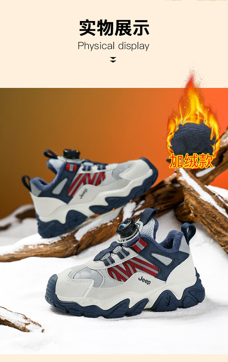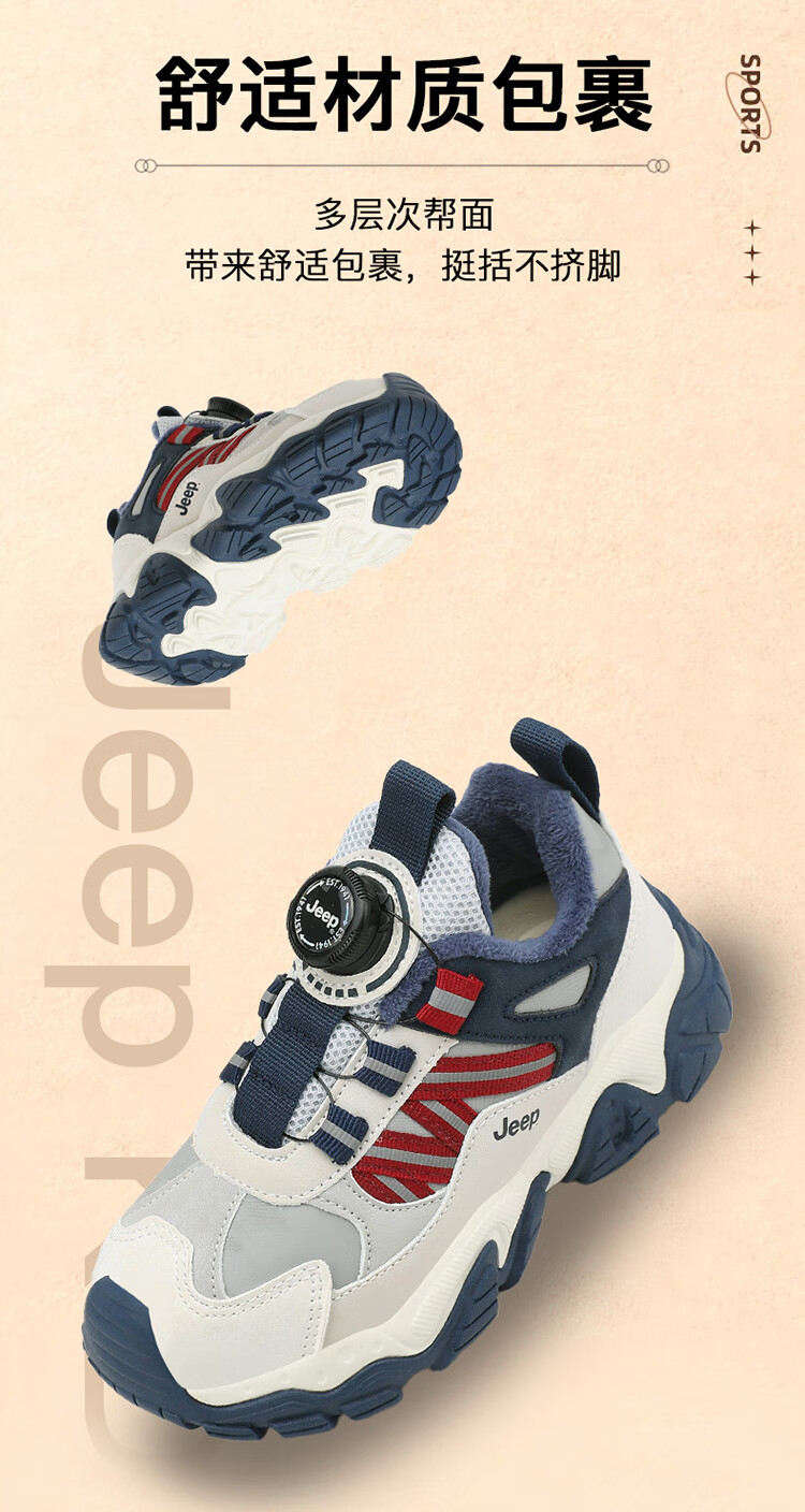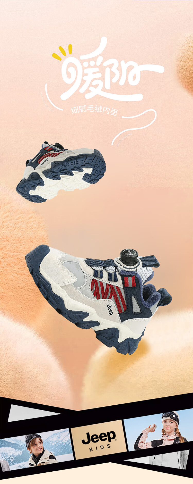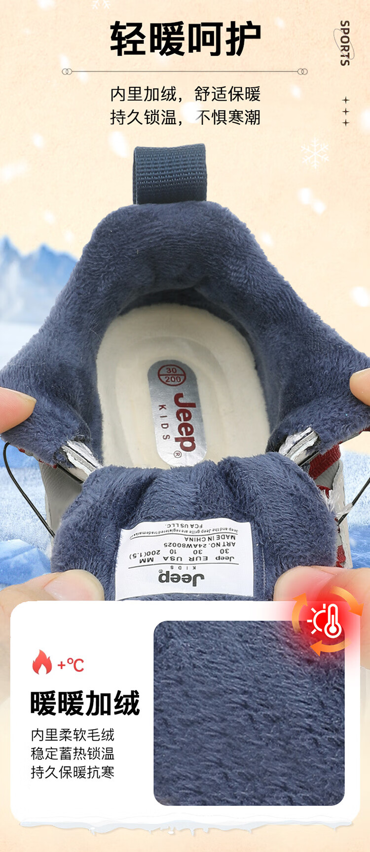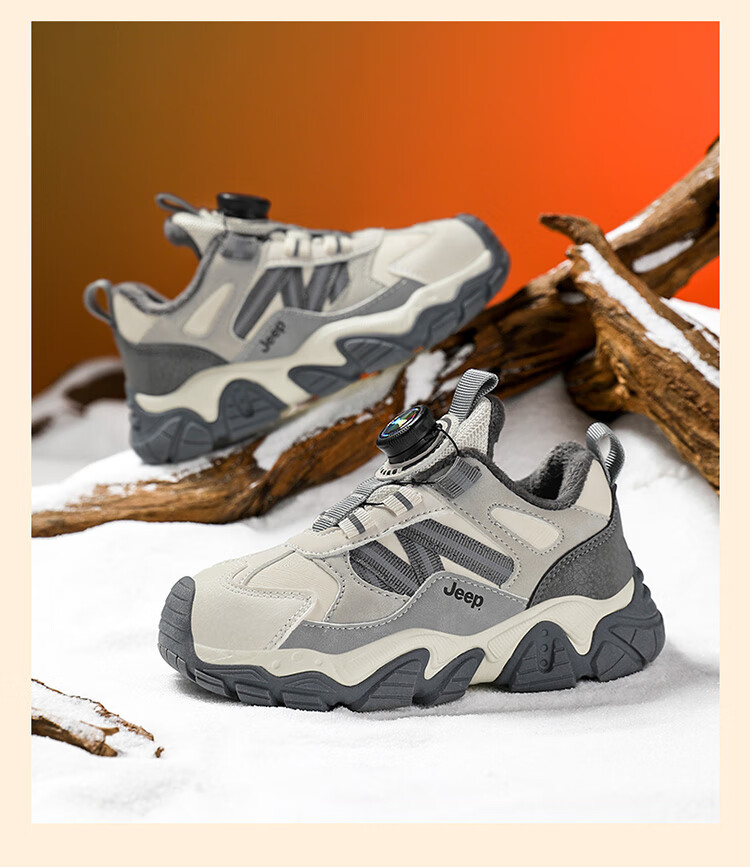 JEEP2025 Boys' Shoes Winter Girls' Casual Shoes Thick-soled Versatile Cotton Shoes Warm Children's Sports Shoes 80025 Beige 31