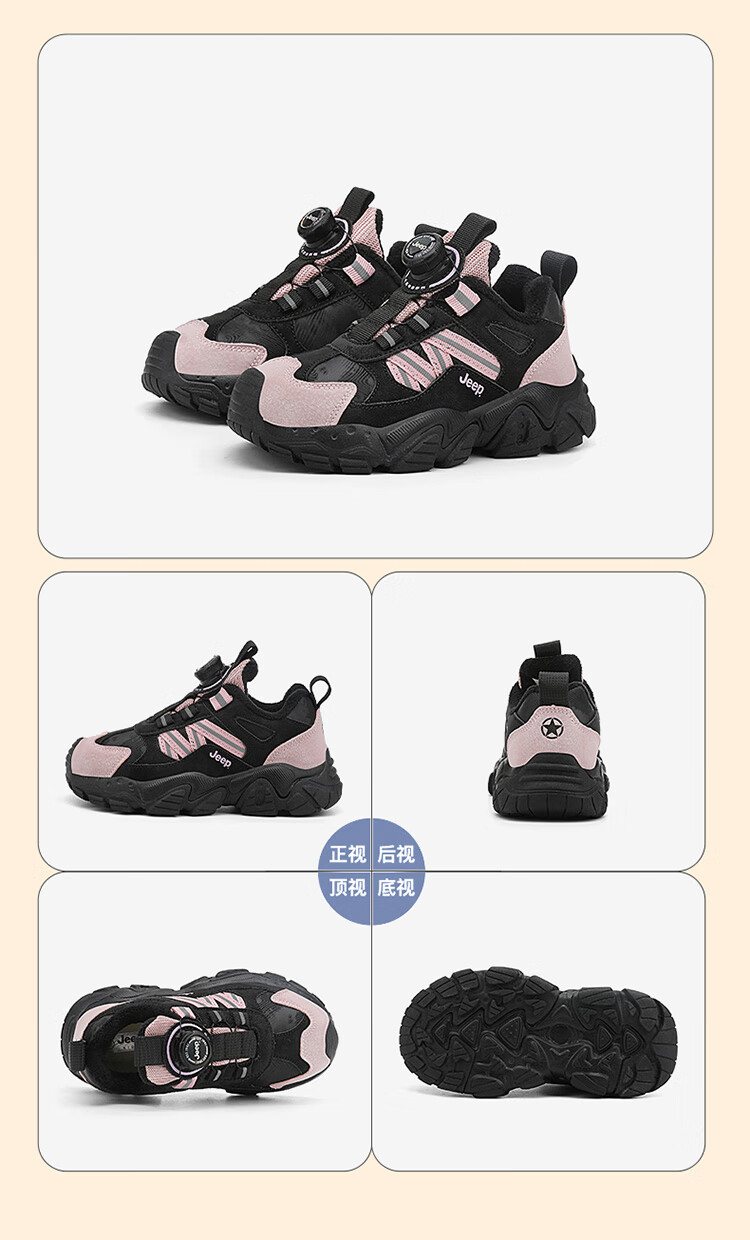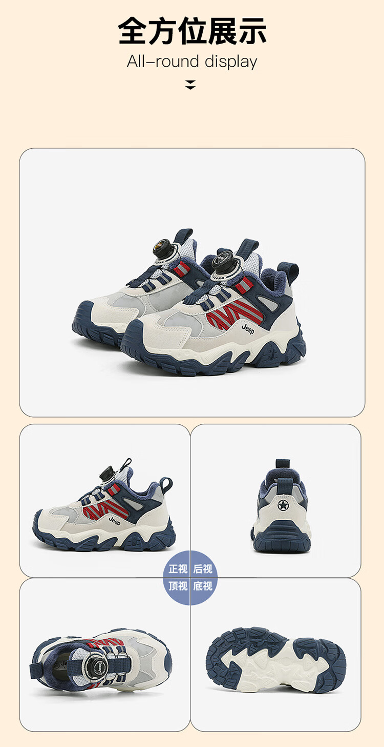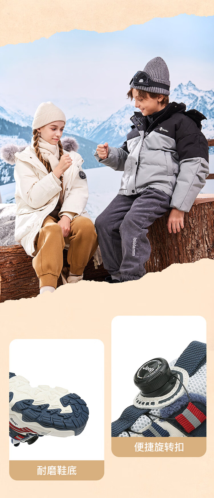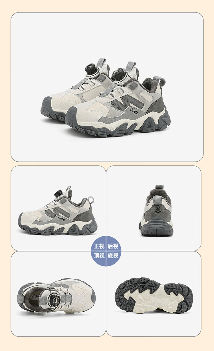 JEEP2025 Boys' Shoes Winter Girls' Casual Shoes Thick-soled Versatile Cotton Shoes Warm Children's Sports Shoes 80025 Beige 31