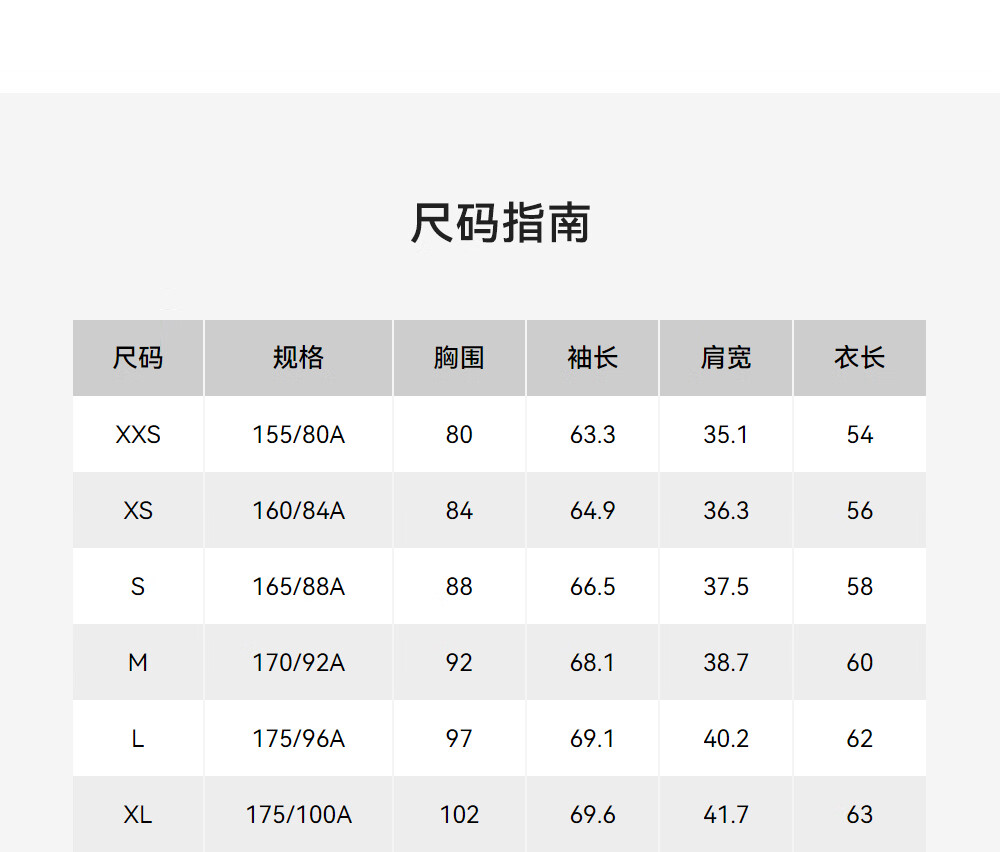 China (cm) 160-165/84-86 165-170 / 88-90 167-172 / 92-96 168-173 / 98-102 170-176 / 106-110