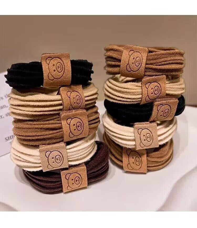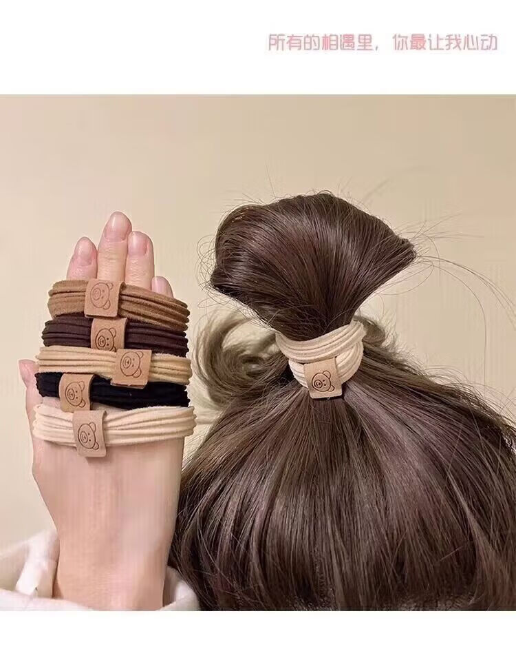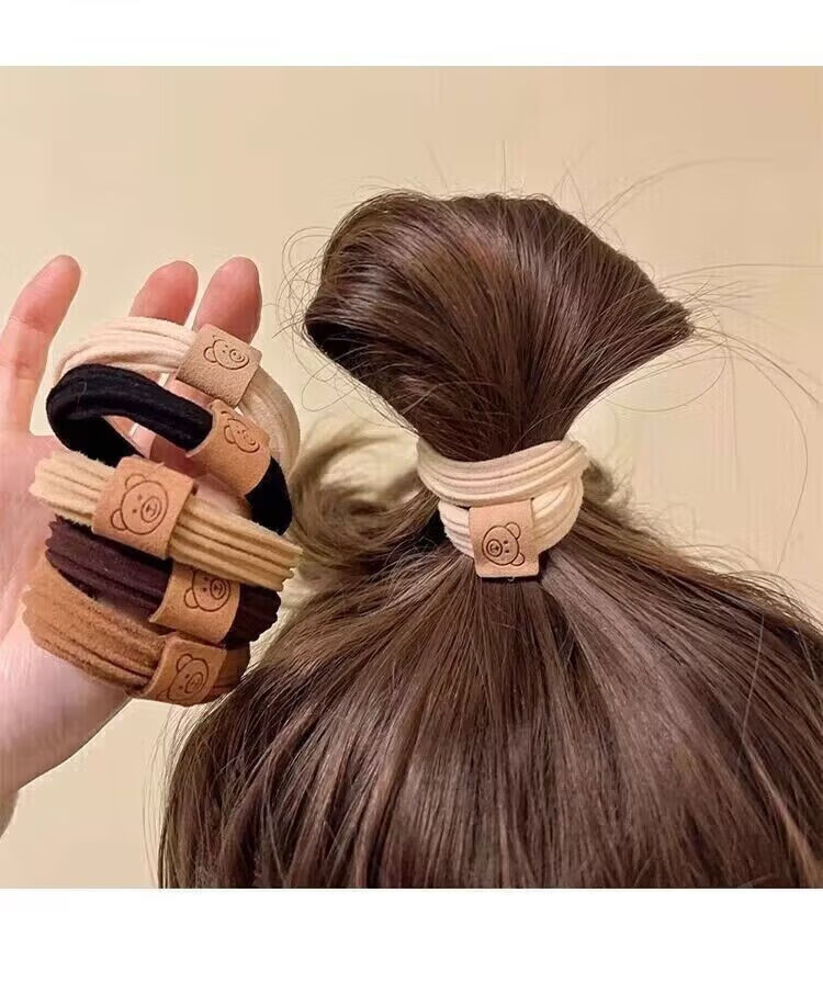 Mother, baby and children's shoe accessories Korean style fashionable bear head rope high elastic rubber band women's hair tie hair tie mixed color 2 pieces 1 pc