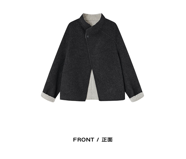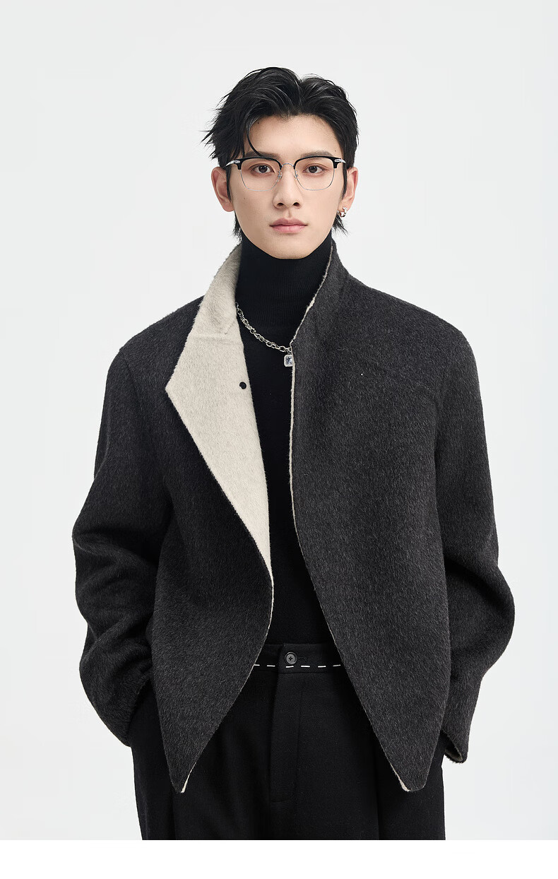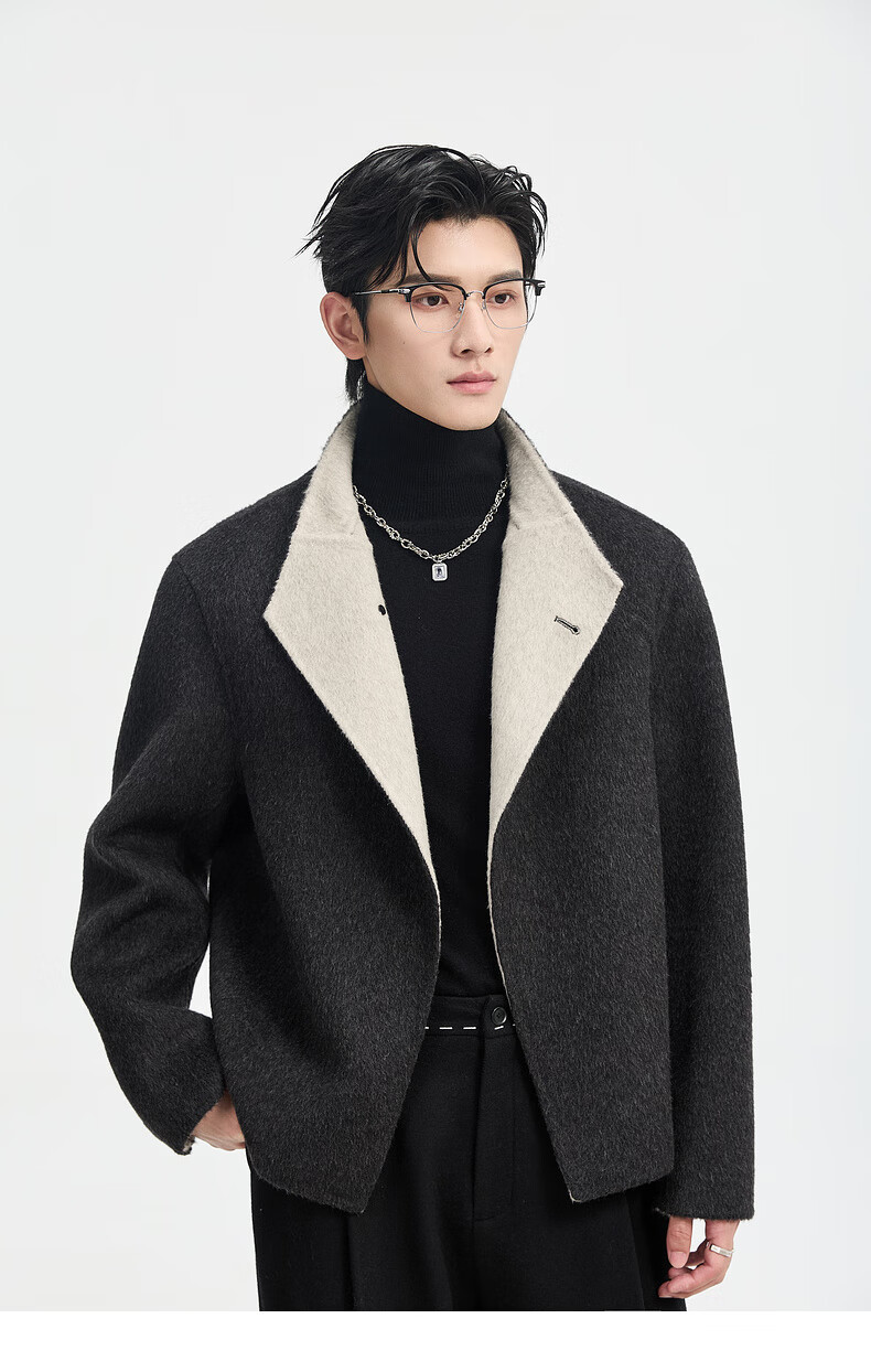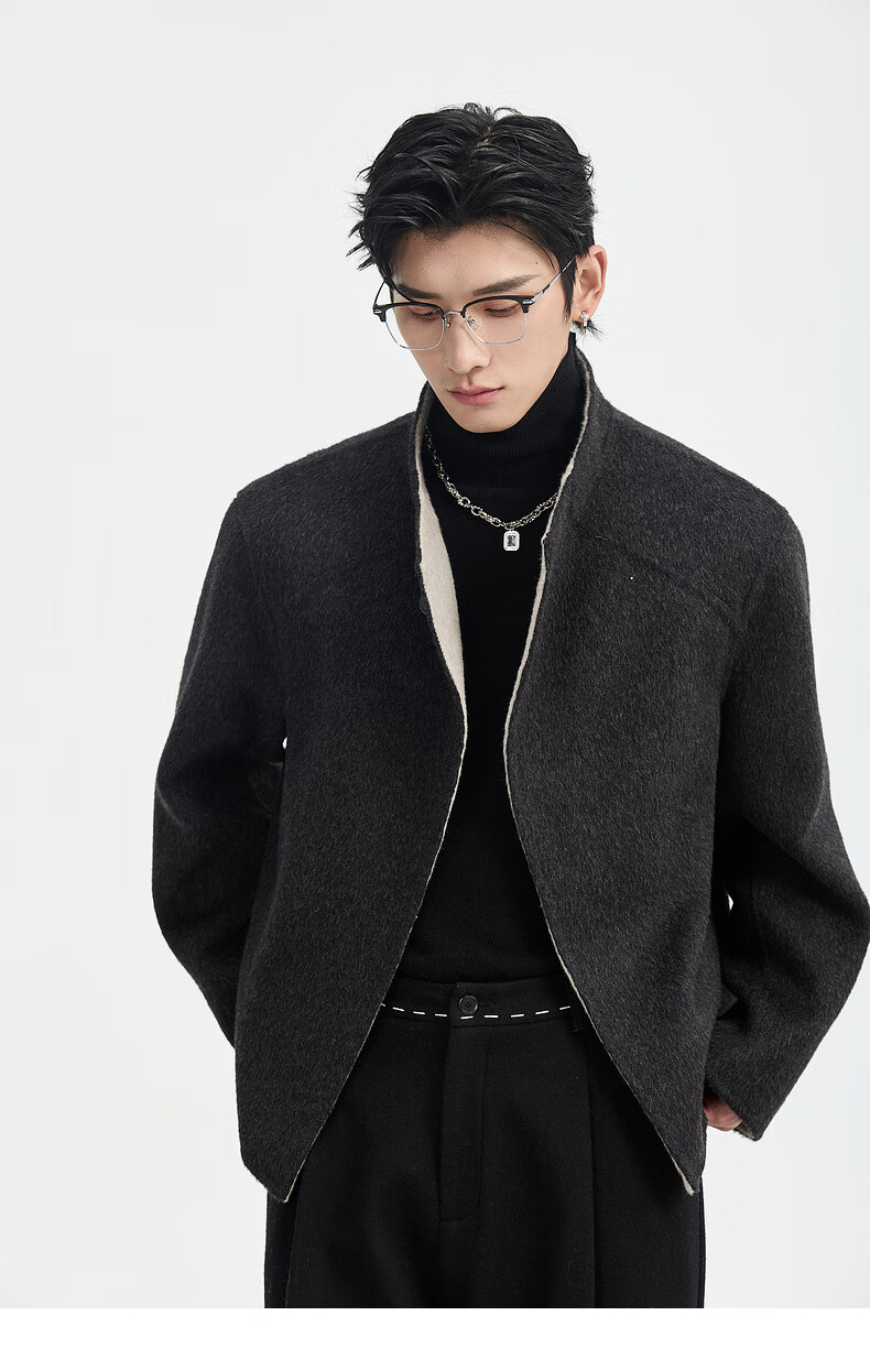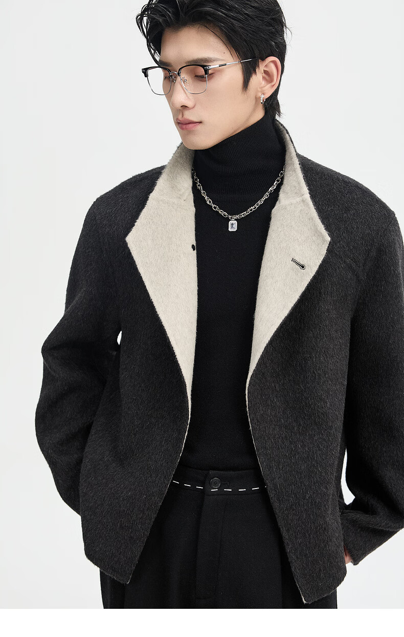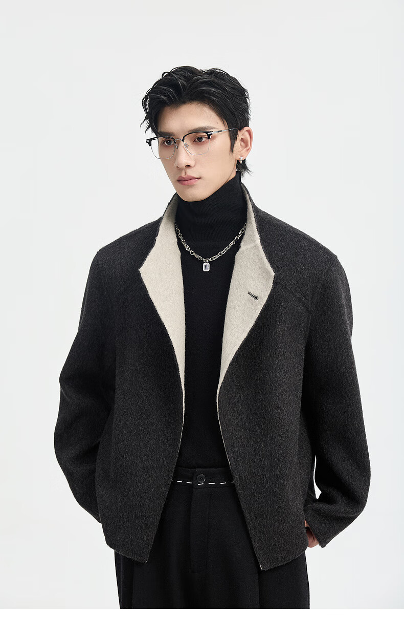 Earl Zall Wool Stand Collar Contrast Color Double-sided Wool Jacket Men's 2025 Autumn and Winter Short New Year's Coat Z541605 Moon Shadow Gray L (175)